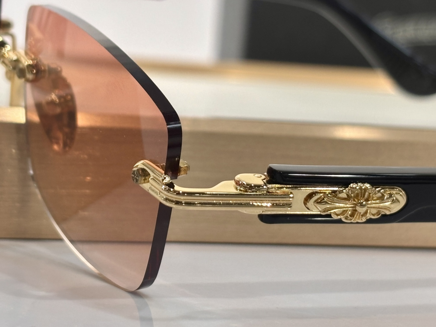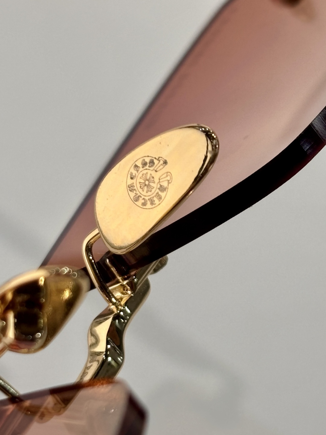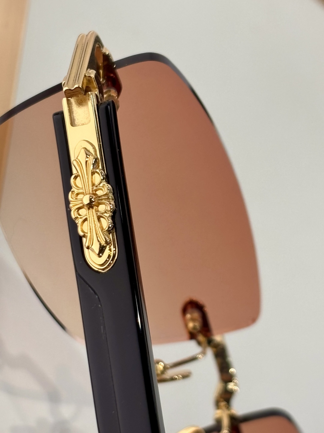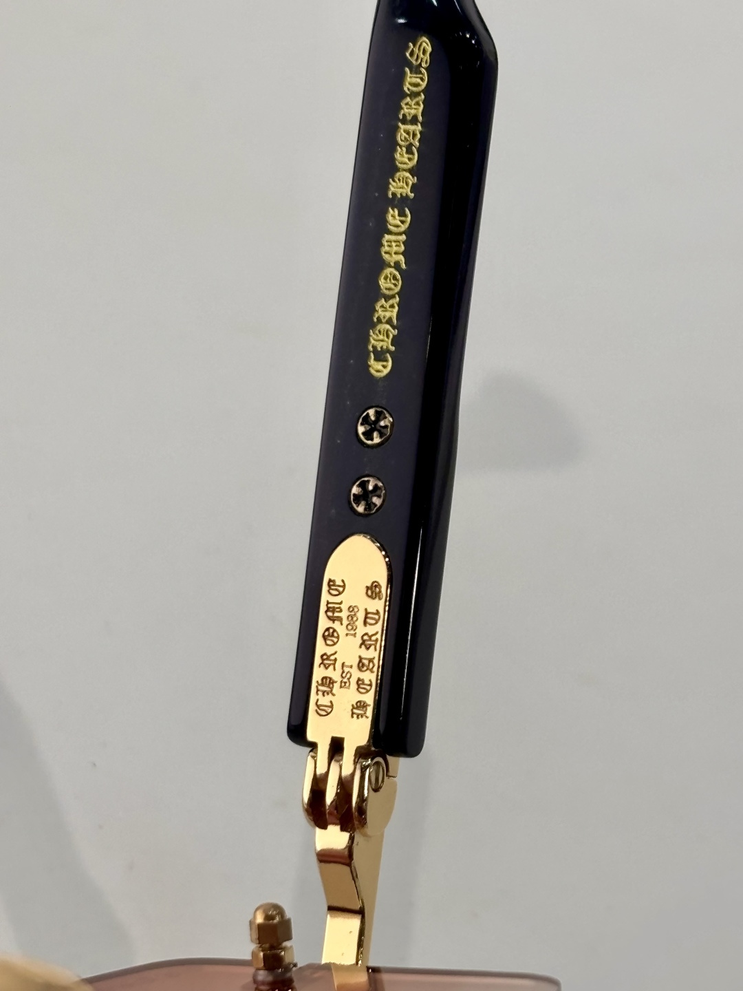 这款太阳眼镜是AAAAA 1:1 质量 (非常棒). 使用了和原版一模一样的材料. 商标部分也保持了和克罗心/Chrome Hearts一样. 图片拍摄是实物太阳眼镜拍摄, 您所收到的实物保证和我们图片一模一样.