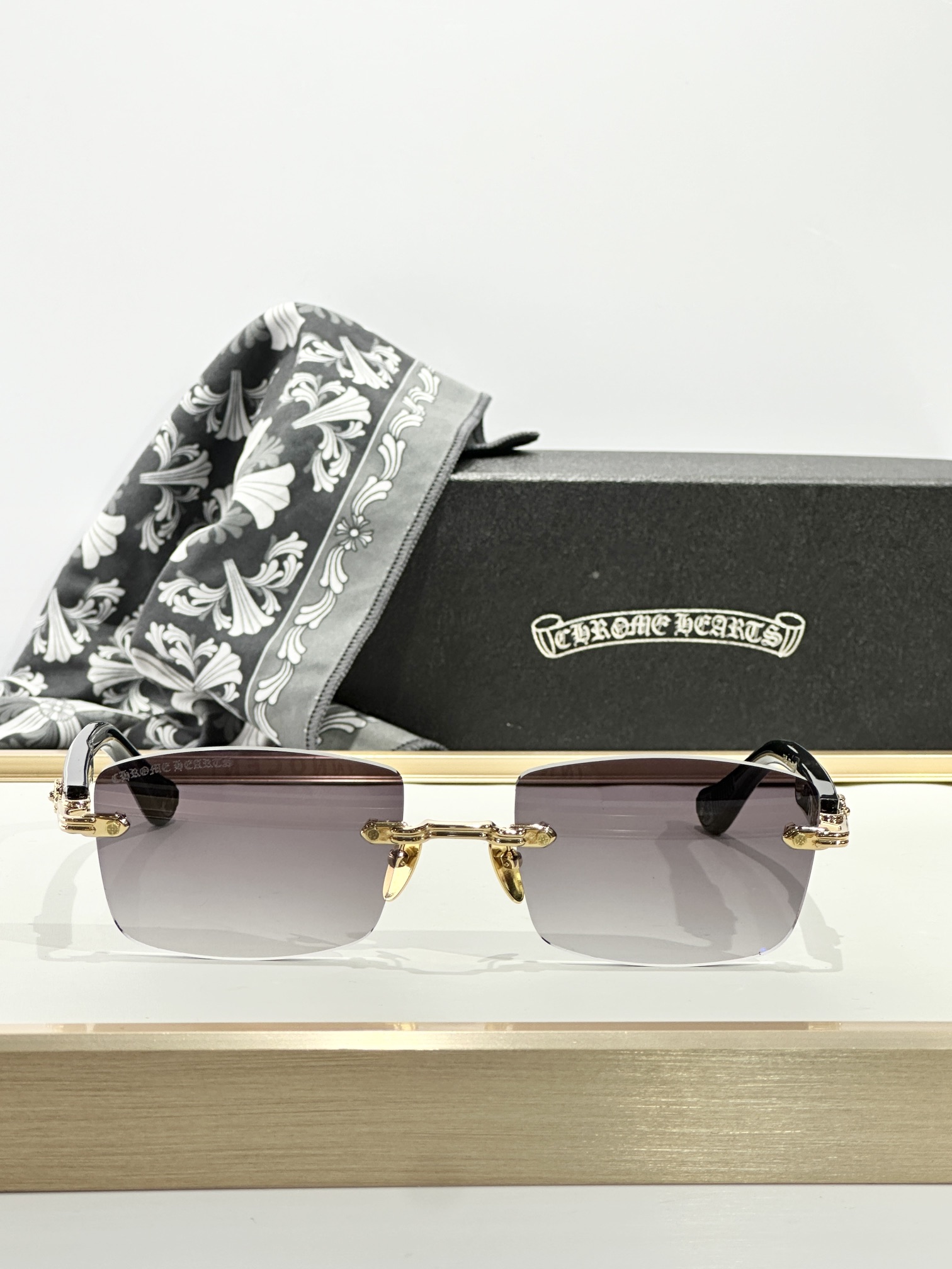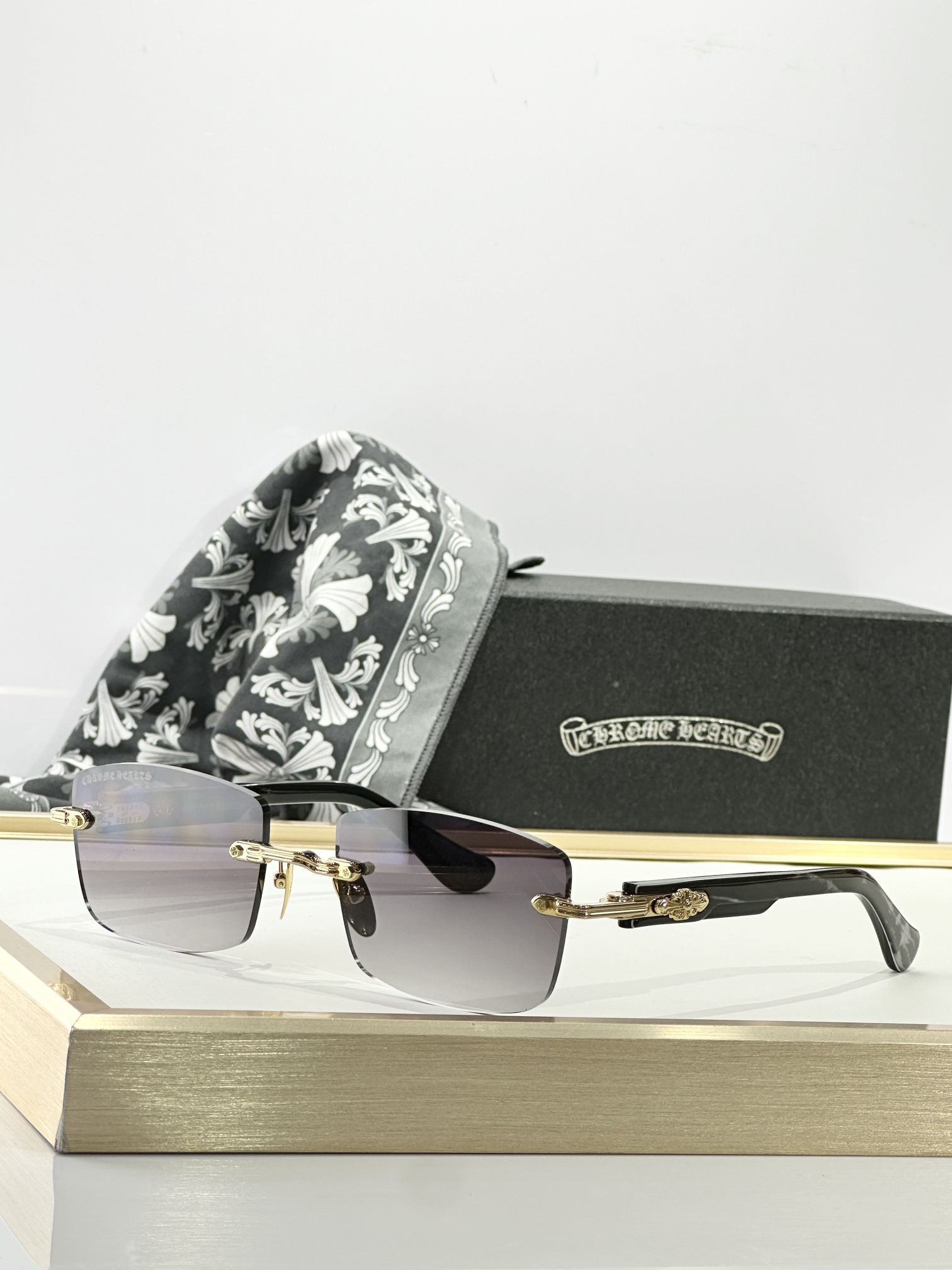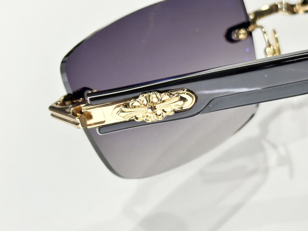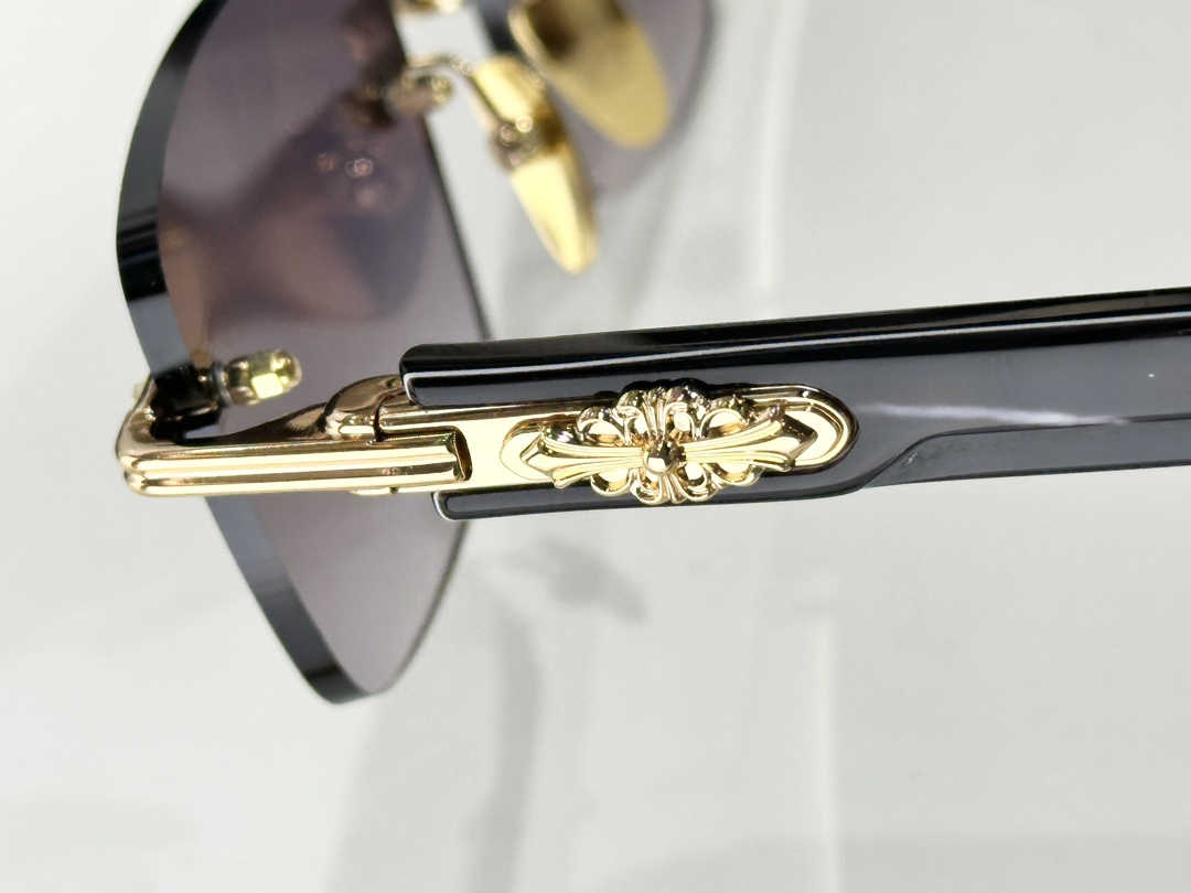 这款太阳眼镜是AAAAA 1:1 质量 (非常棒). 使用了和原版一模一样的材料. 商标部分也保持了和克罗心/Chrome Hearts一样. 图片拍摄是实物太阳眼镜拍摄, 您所收到的实物保证和我们图片一模一样.