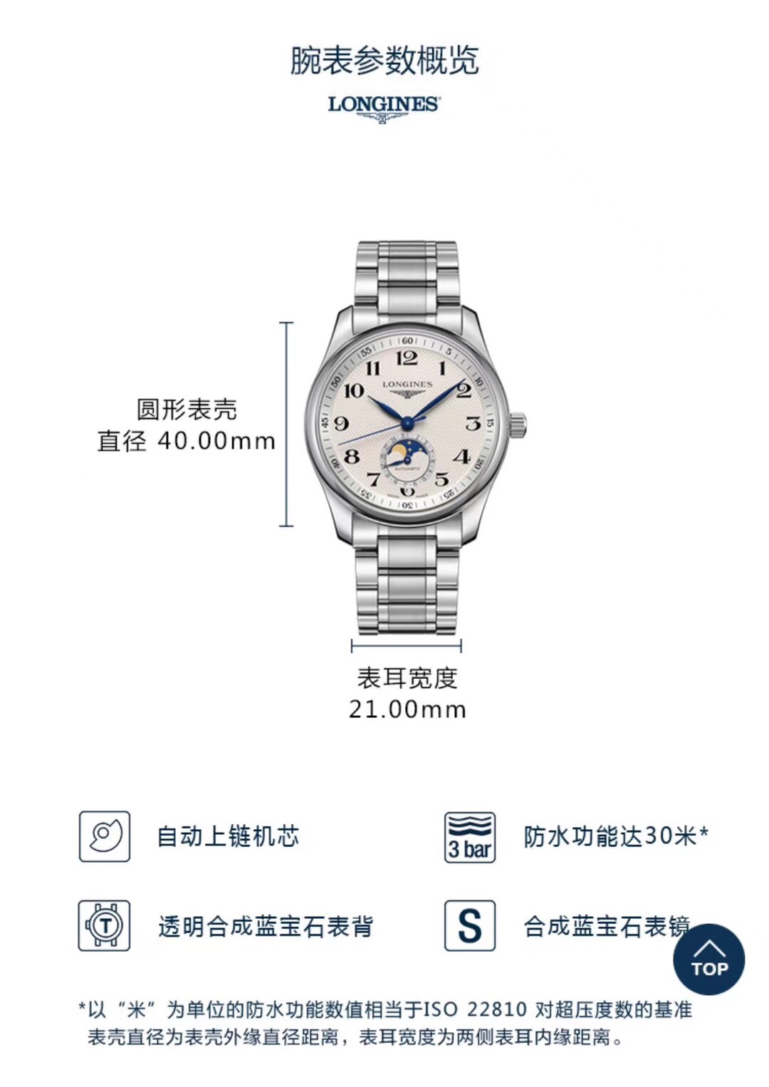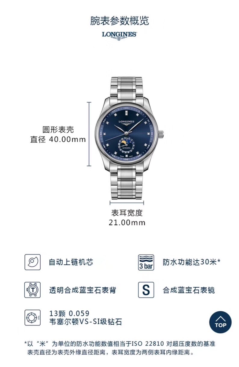 这款手表是AAAAA 1:1 质量 (非常棒). 使用了和原版一模一样的材料. 商标部分也保持了和浪琴/Longines一样. 图片拍摄是实物手表拍摄, 您所收到的实物保证和我们图片一模一样.