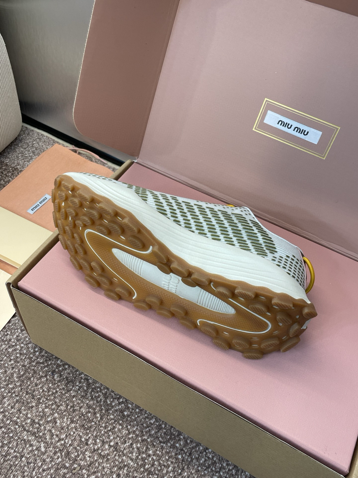 这款鞋子是AAAAA 1:1 质量 (非常棒). 使用了和原版一模一样的材料. 商标部分也保持了和缪缪/Miu Miu一样. 图片拍摄是实物鞋子拍摄, 您所收到的实物保证和我们图片一模一样.