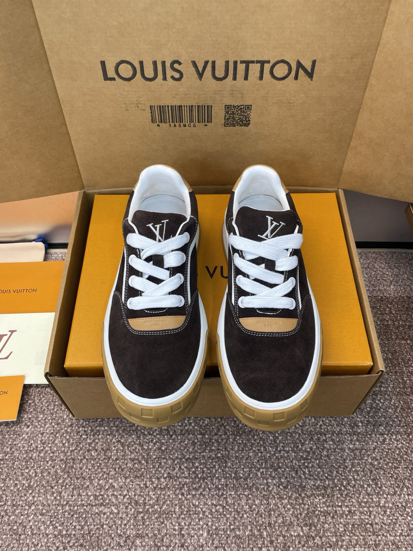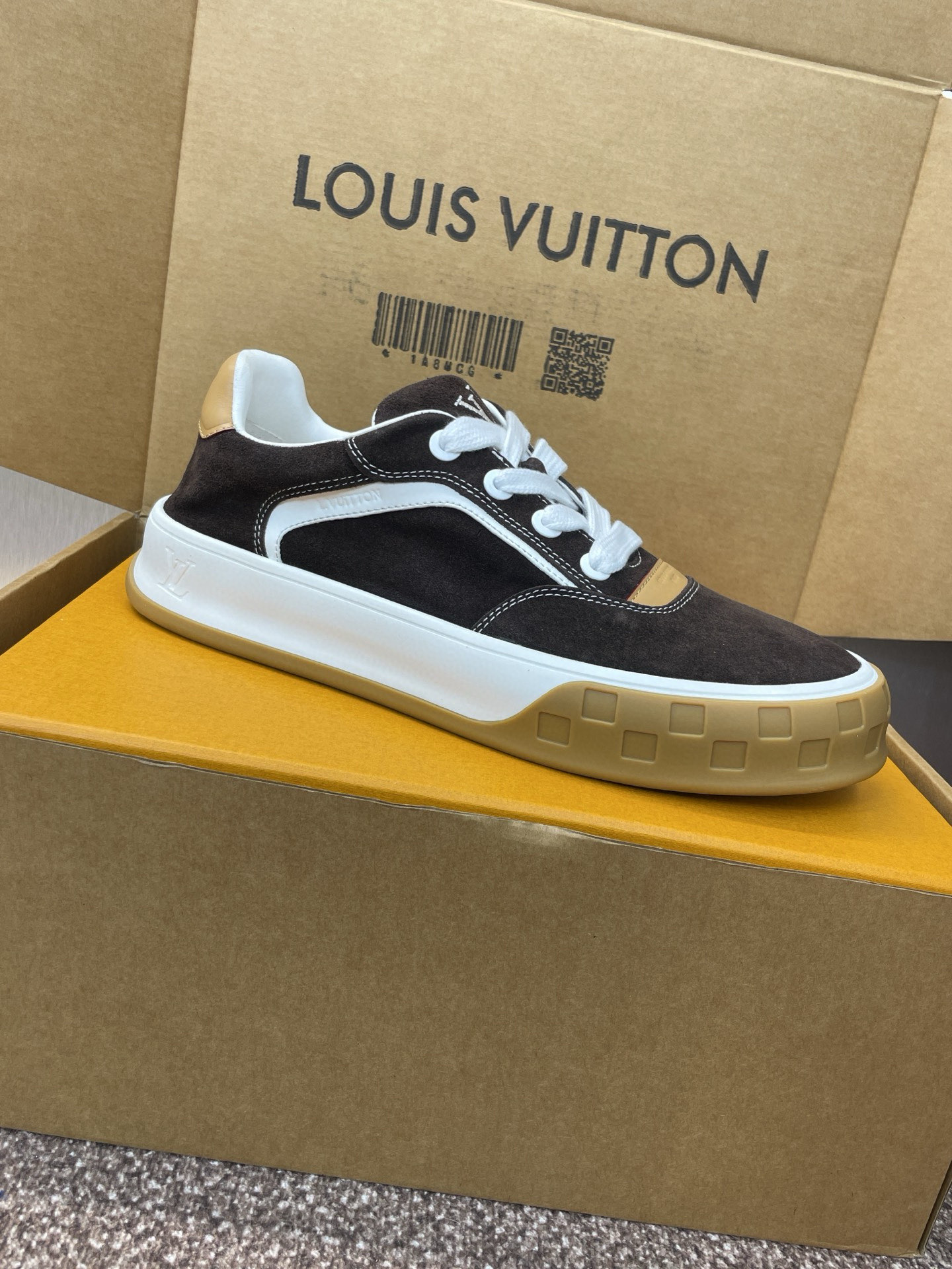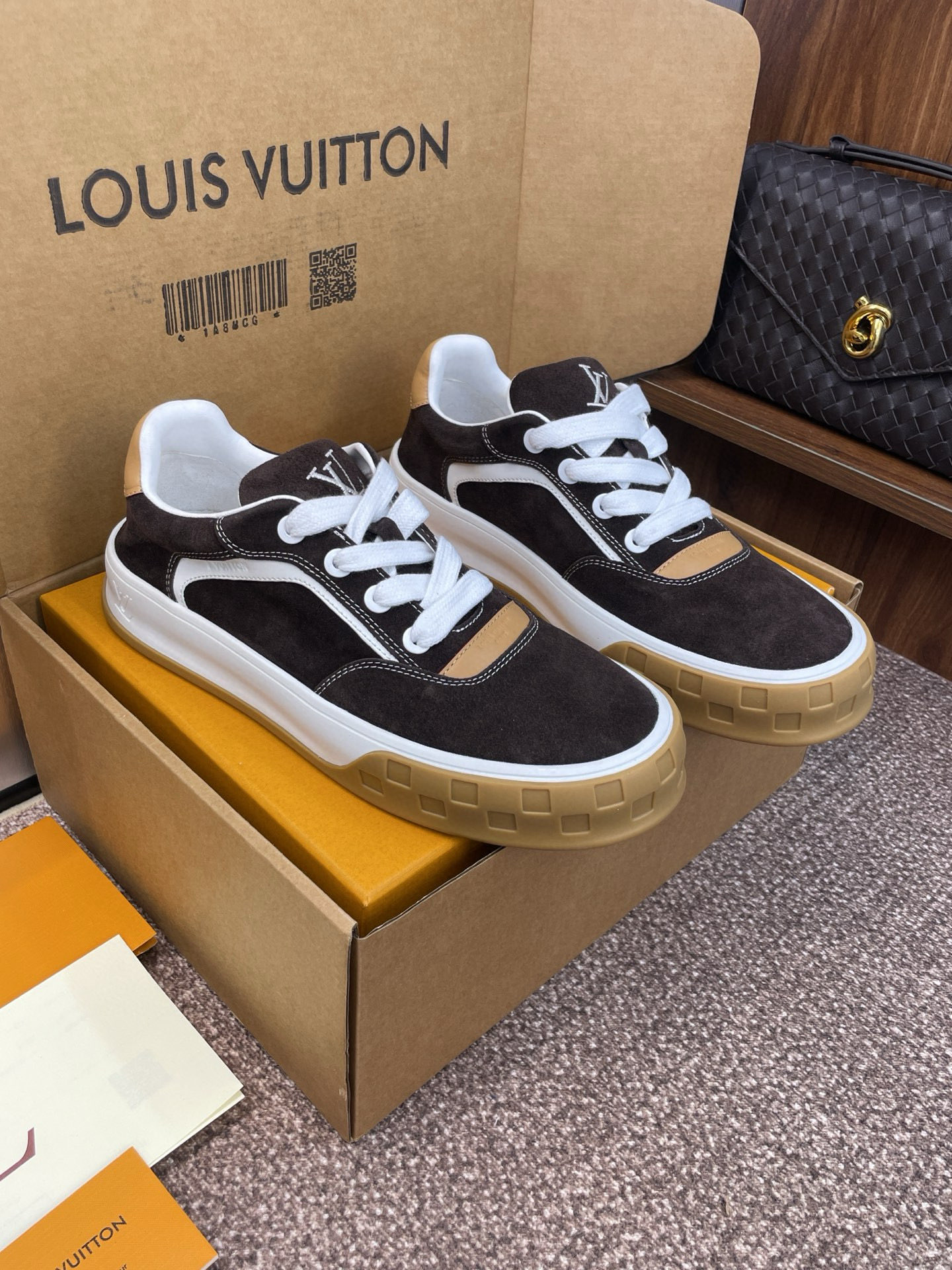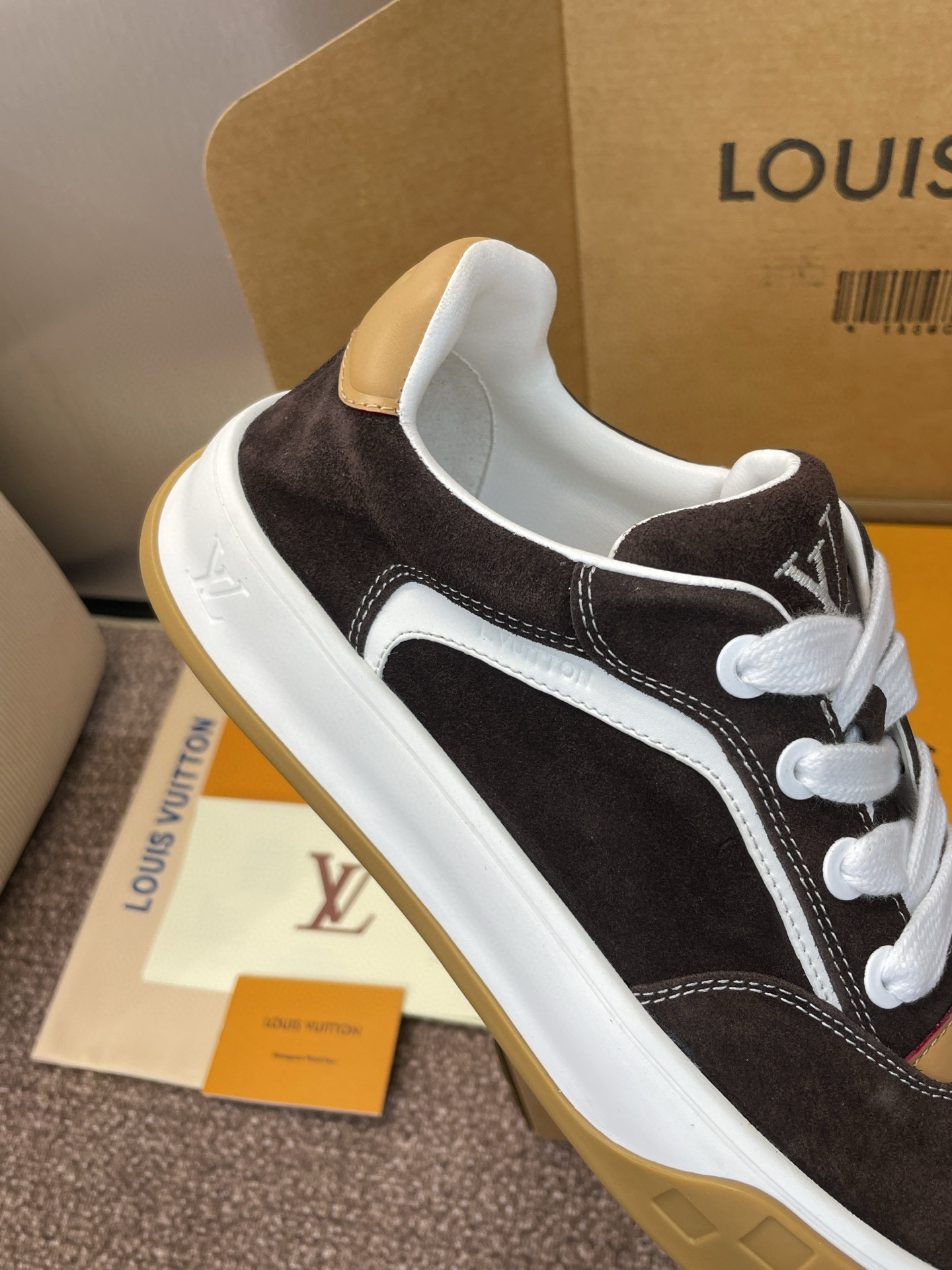 这款鞋子是AAAAA 1:1 质量 (非常棒). 使用了和原版一模一样的材料. 商标部分也保持了和路易威登/Louis Vuitton一样. 图片拍摄是实物鞋子拍摄, 您所收到的实物保证和我们图片一模一样.