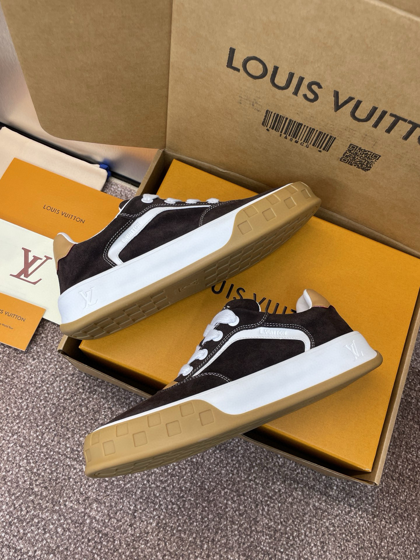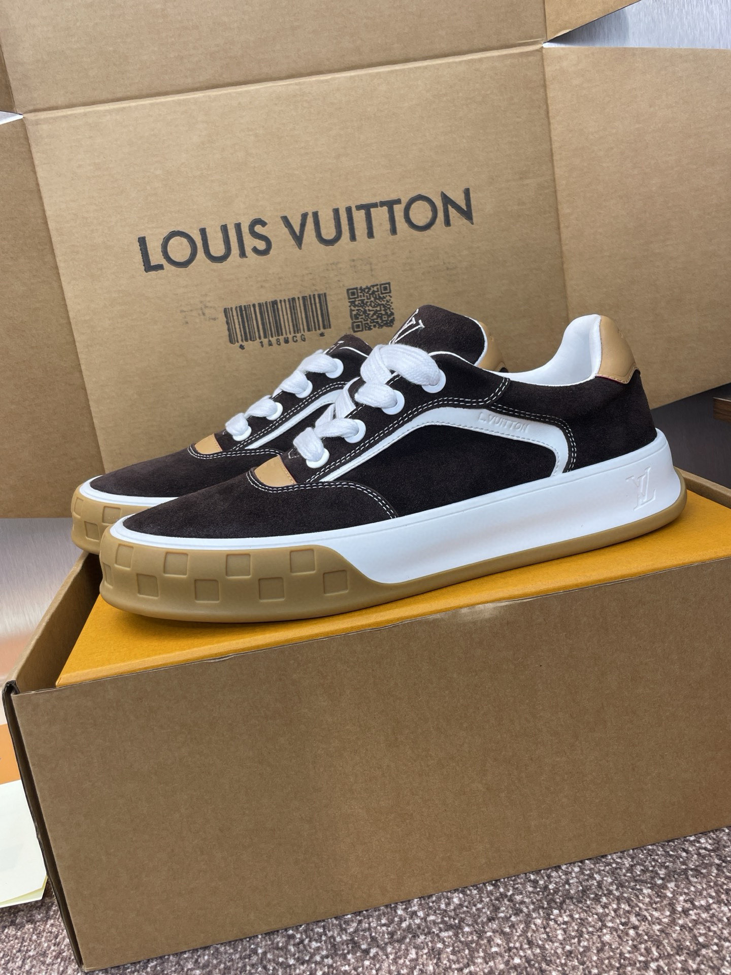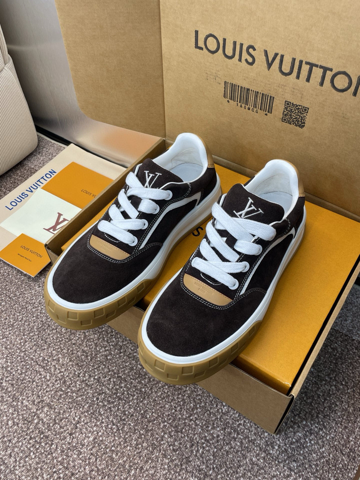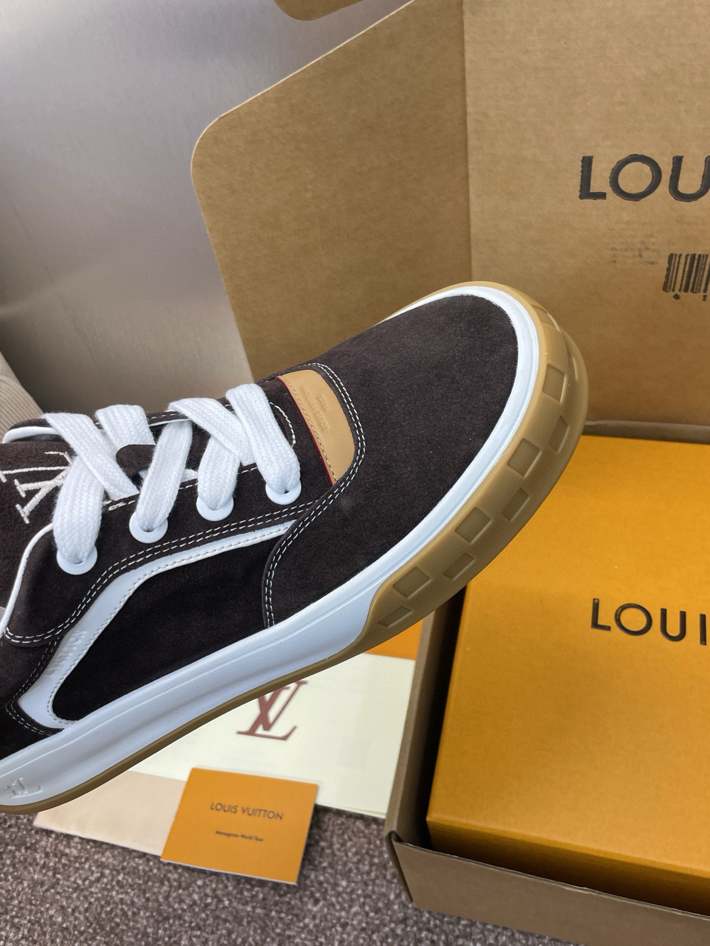 这款鞋子是AAAAA 1:1 质量 (非常棒). 使用了和原版一模一样的材料. 商标部分也保持了和路易威登/Louis Vuitton一样. 图片拍摄是实物鞋子拍摄, 您所收到的实物保证和我们图片一模一样.