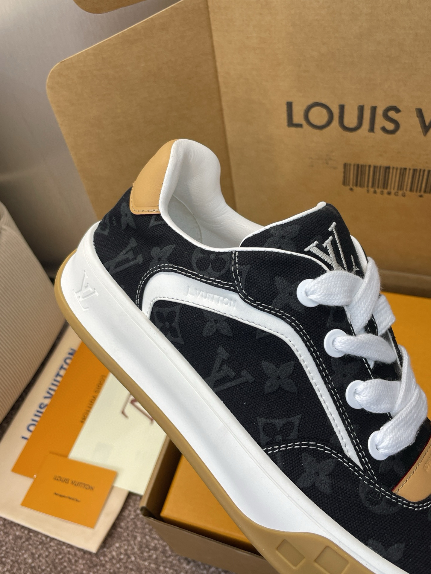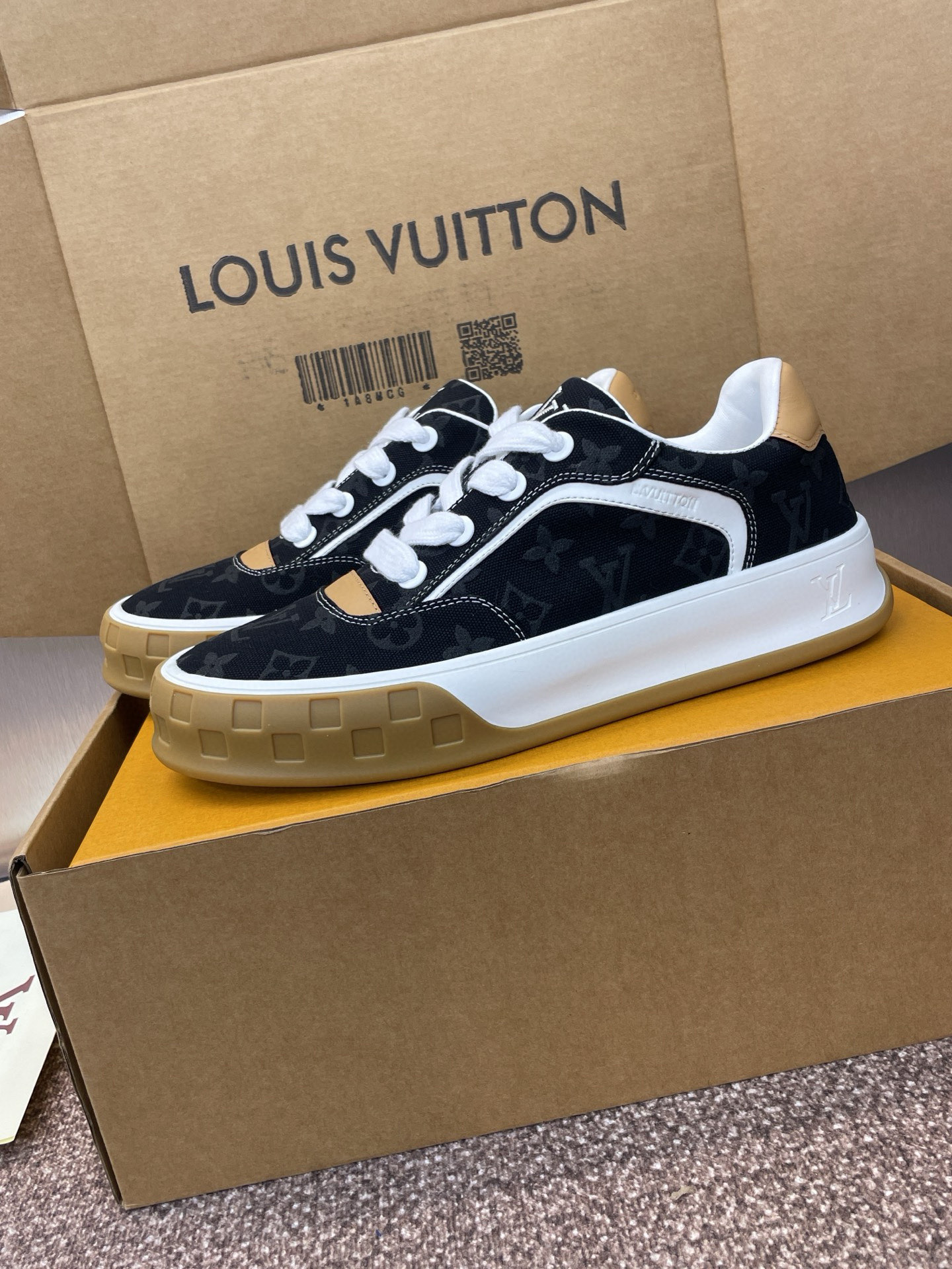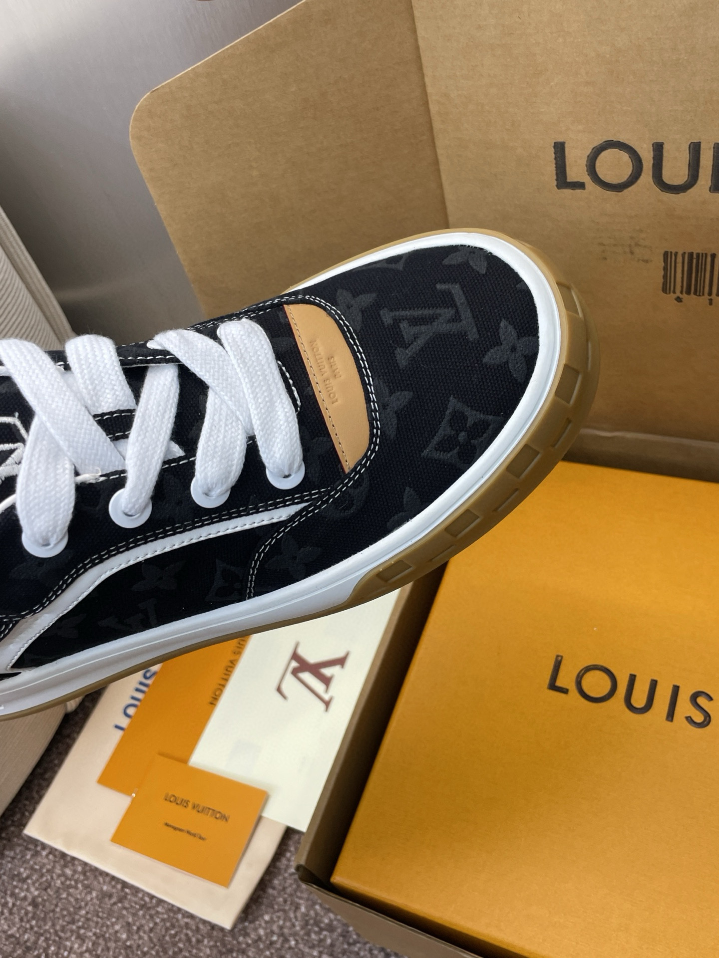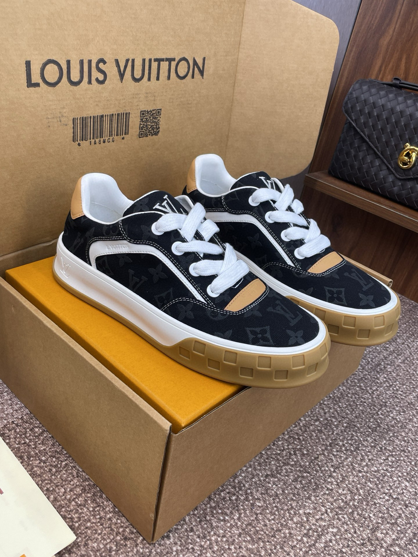 这款鞋子是AAAAA 1:1 质量 (非常棒). 使用了和原版一模一样的材料. 商标部分也保持了和路易威登/Louis Vuitton一样. 图片拍摄是实物鞋子拍摄, 您所收到的实物保证和我们图片一模一样.