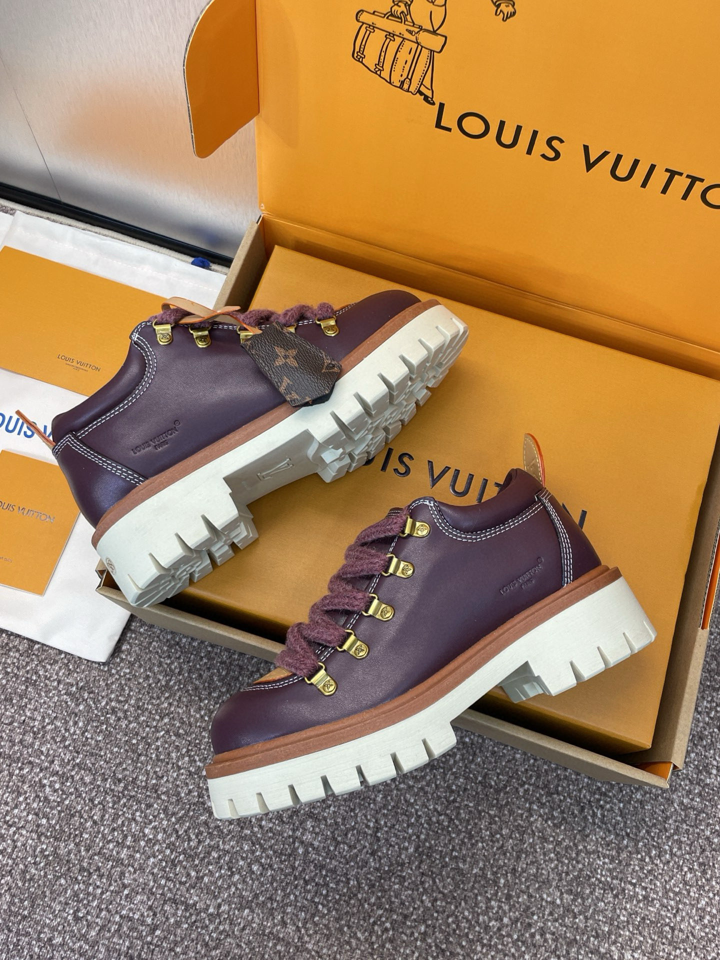 这款鞋子是AAAAA 1:1 质量 (非常棒). 使用了和原版一模一样的材料. 商标部分也保持了和路易威登/Louis Vuitton一样. 图片拍摄是实物鞋子拍摄, 您所收到的实物保证和我们图片一模一样.