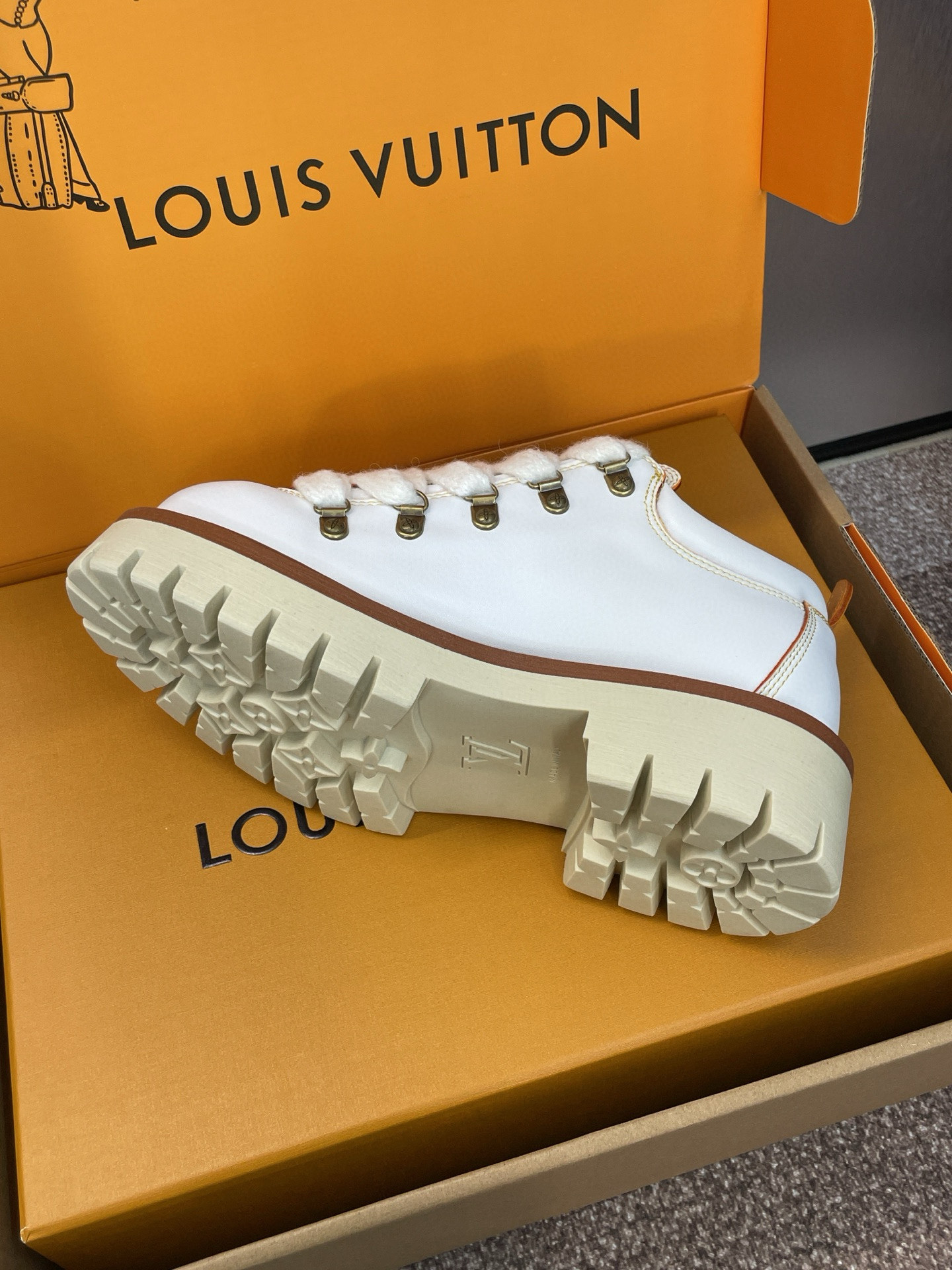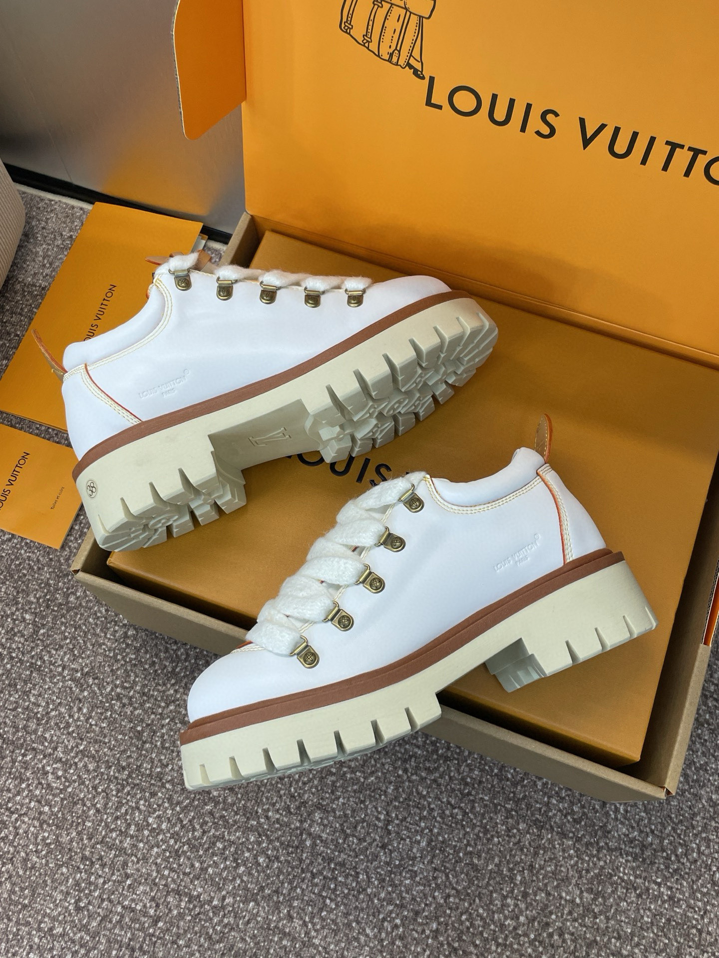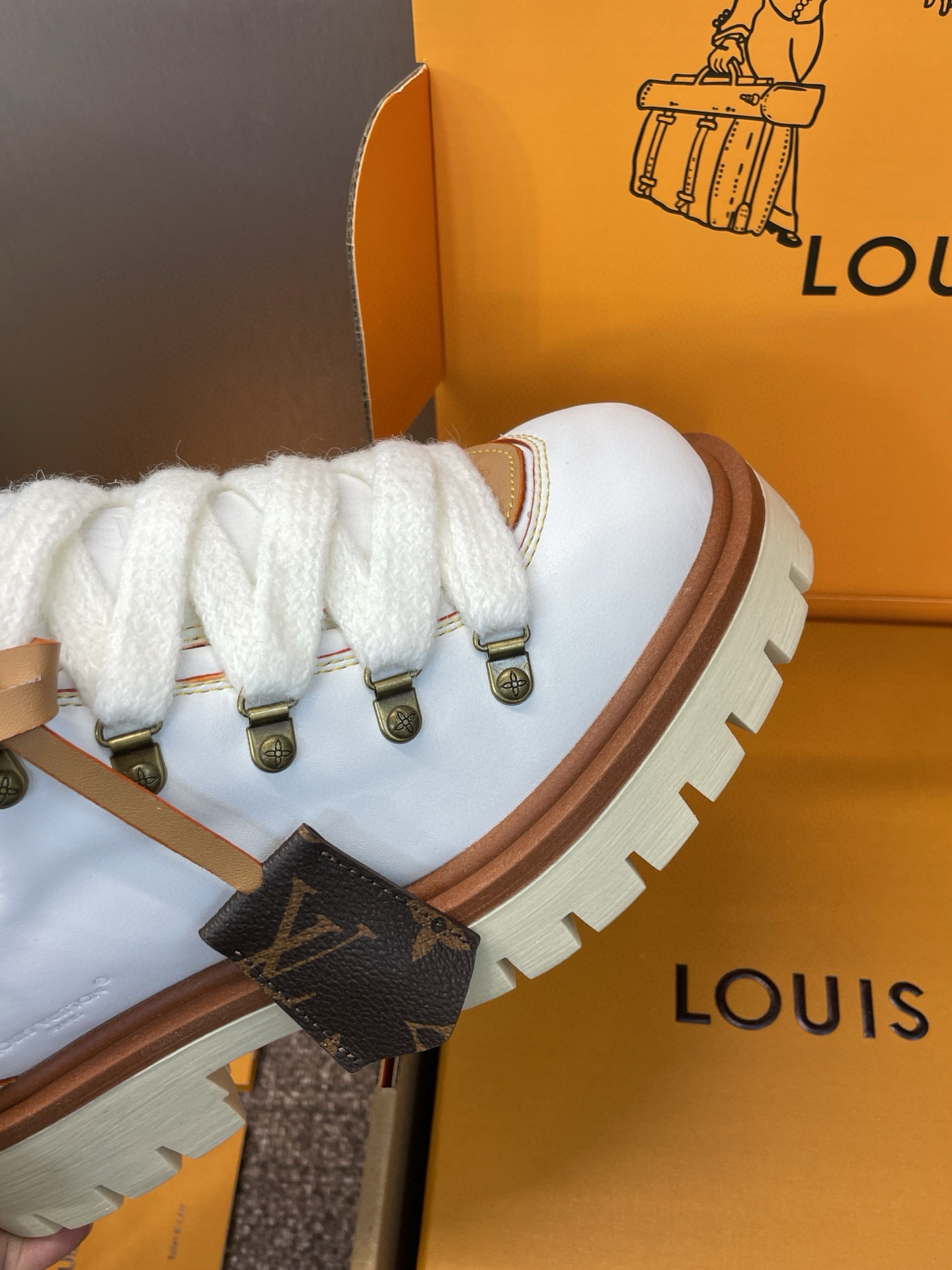这款鞋子是AAAAA 1:1 质量 (非常棒). 使用了和原版一模一样的材料. 商标部分也保持了和路易威登/Louis Vuitton一样. 图片拍摄是实物鞋子拍摄, 您所收到的实物保证和我们图片一模一样.