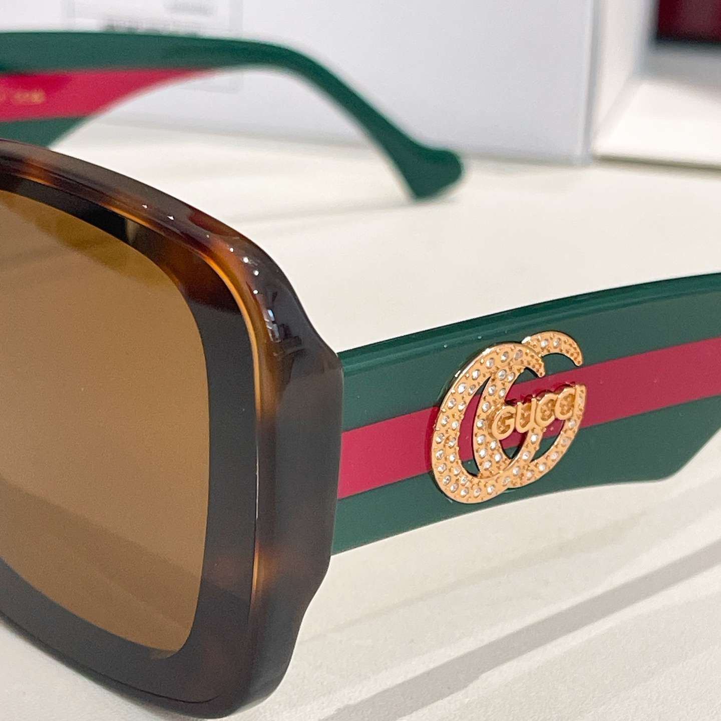 这款太阳眼镜是AAAAA 1:1 质量 (非常棒). 使用了和原版一模一样的材料. 商标部分也保持了和古奇/Gucci一样. 图片拍摄是实物太阳眼镜拍摄, 您所收到的实物保证和我们图片一模一样.