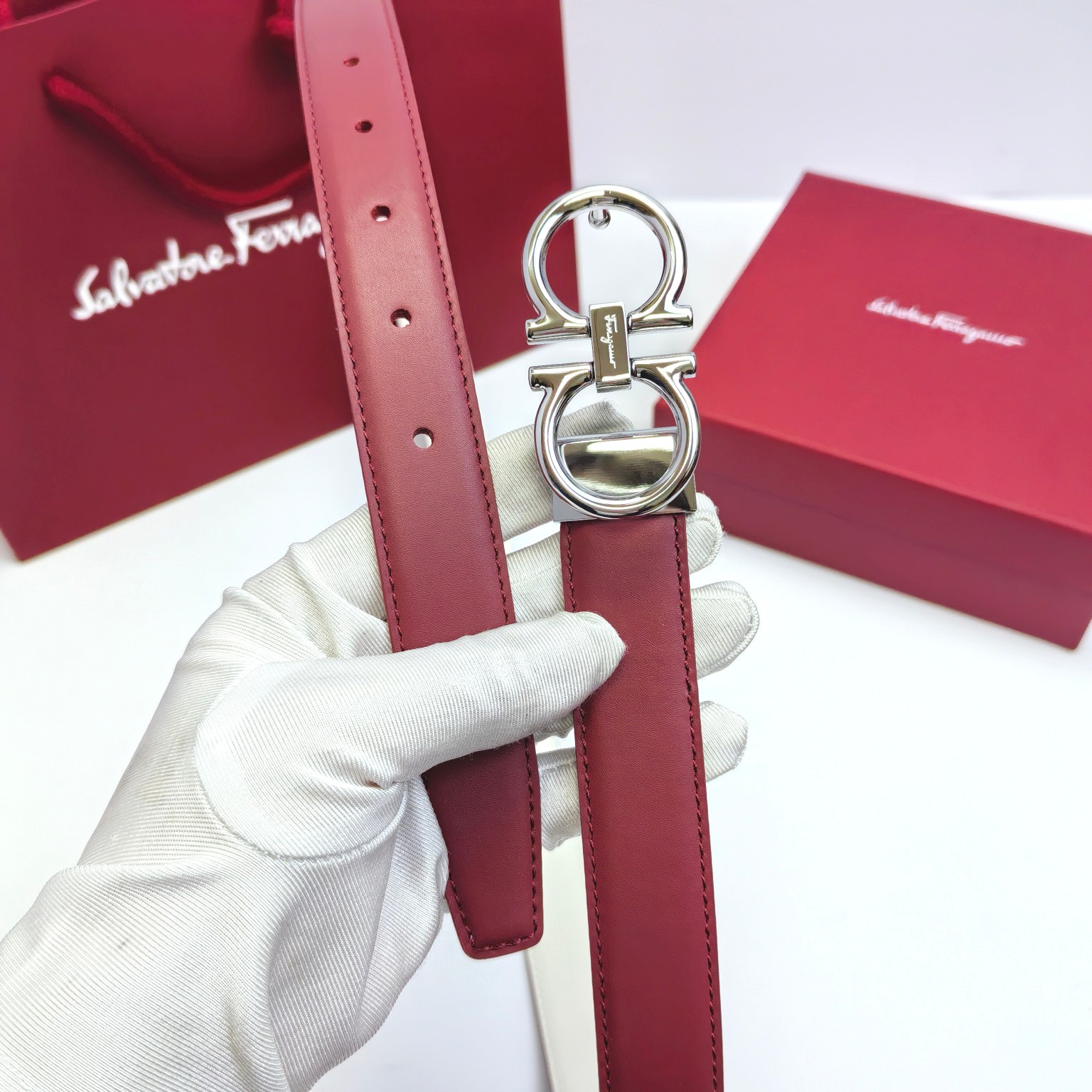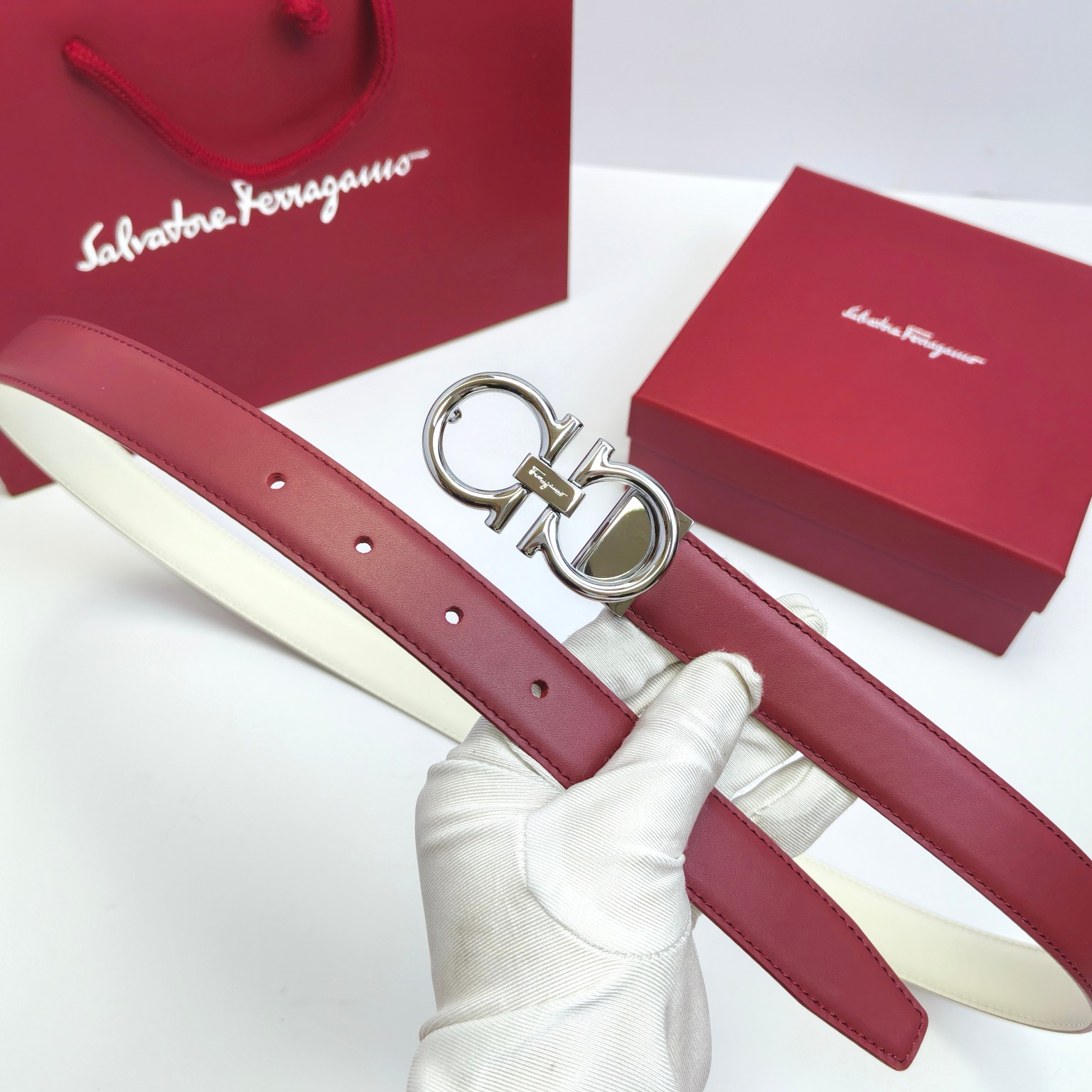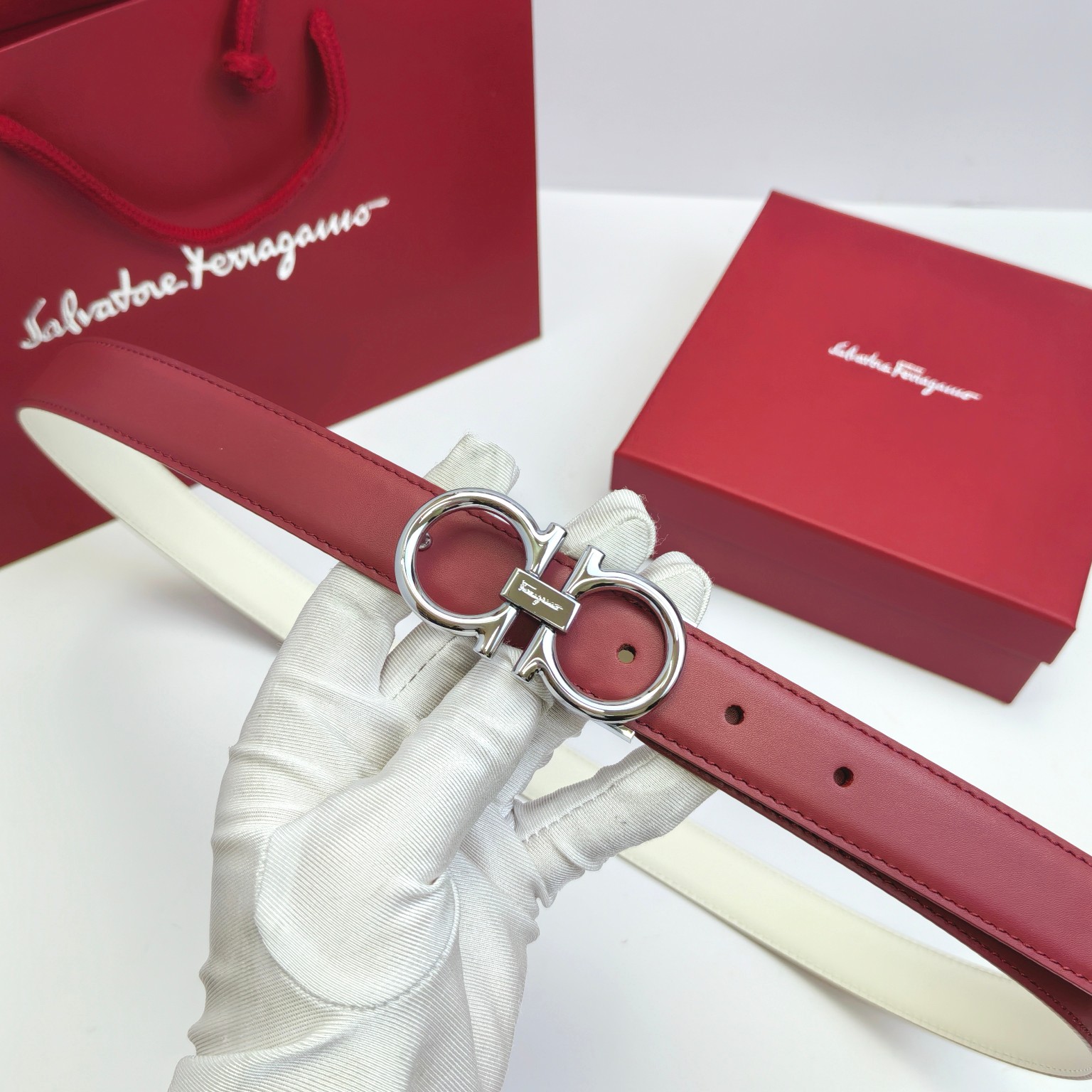 这款皮带是AAAAA 1:1 质量 (非常棒). 使用了和原版一模一样的材料. 商标部分也保持了和菲拉格慕/Salvatore Ferragamo一样. 图片拍摄是实物皮带拍摄, 您所收到的实物保证和我们图片一模一样.