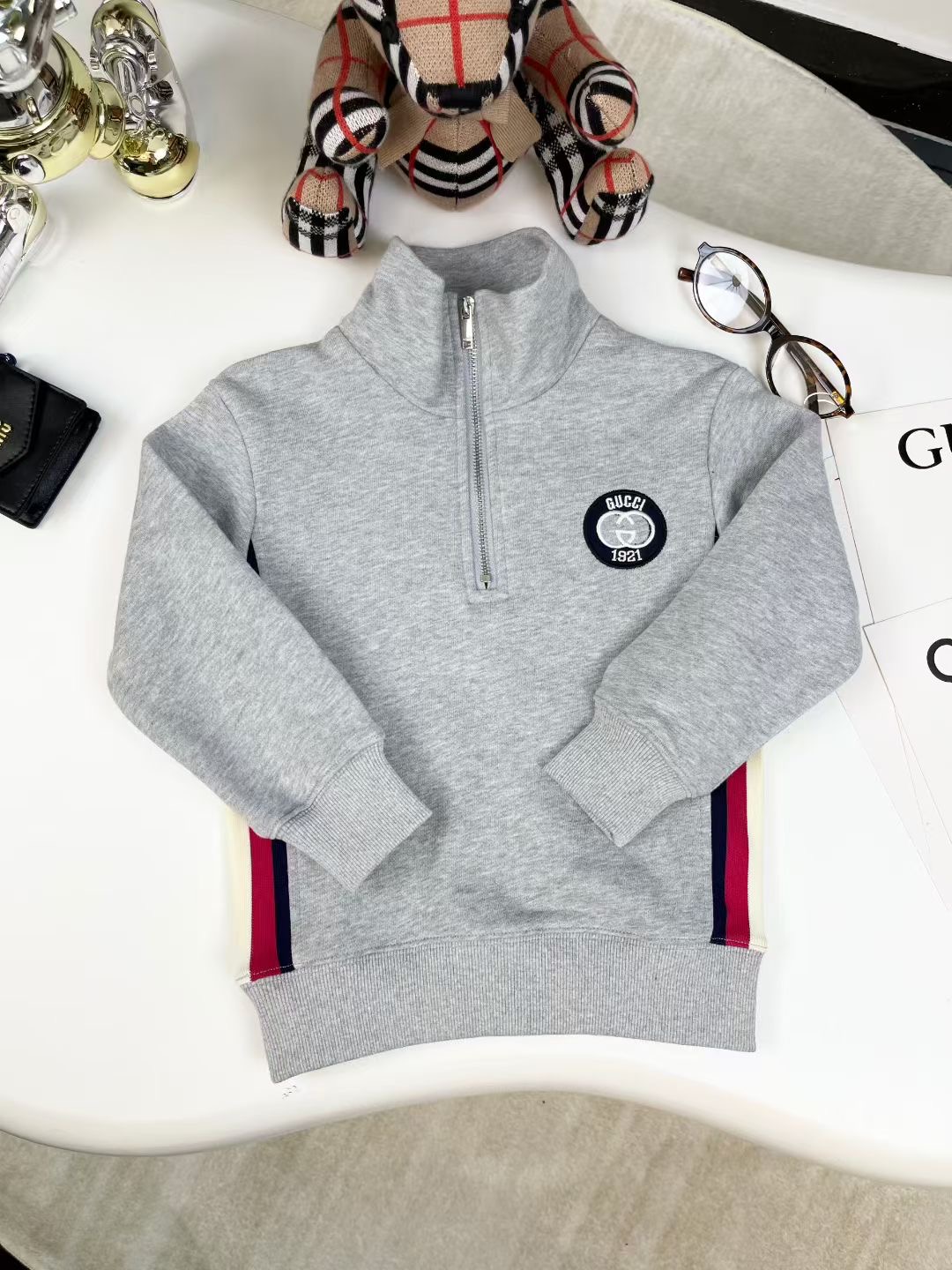 这款children's clothes是AAAAA 1:1 质量 (非常棒). 使用了和原版一模一样的材料. 商标部分也保持了和古奇/Gucci一样. 图片拍摄是实物children's clothes拍摄, 您所收到的实物保证和我们图片一模一样.