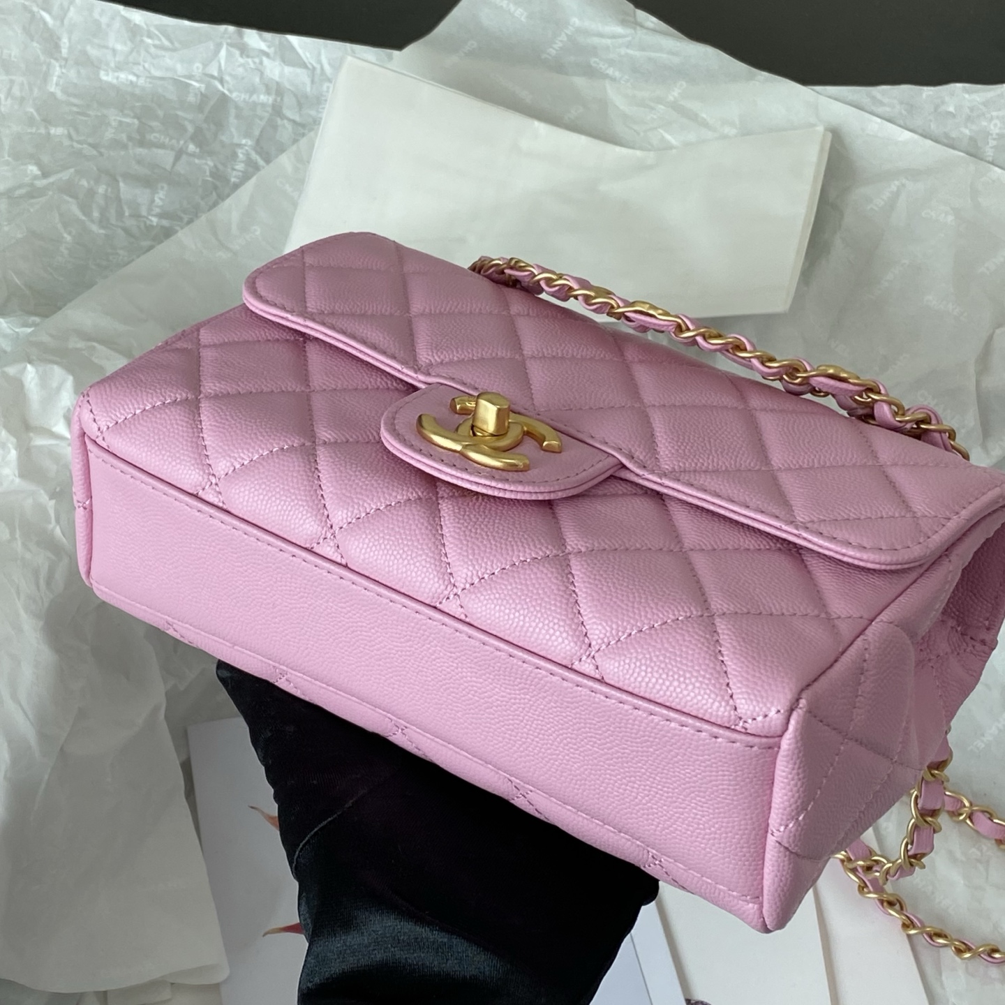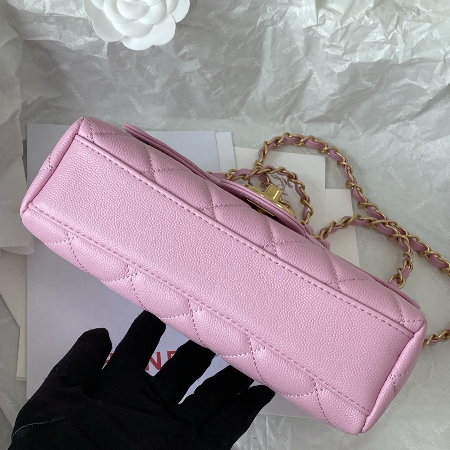 这款包包是AAAAA 1:1 质量 (非常棒). 使用了和原版一模一样的材料. 商标部分也保持了和香奈儿/Chanel一样. 图片拍摄是实物包包拍摄, 您所收到的实物保证和我们图片一模一样.