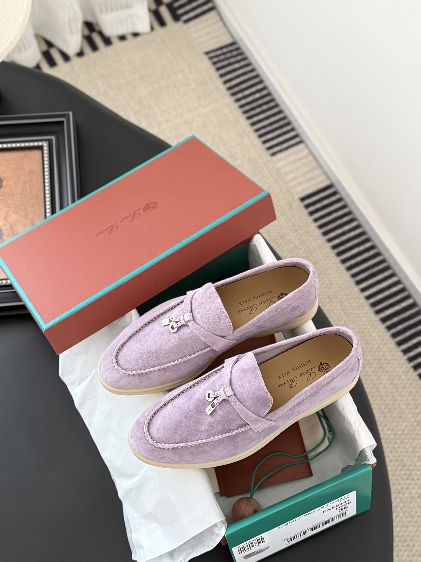 这款鞋子是AAAAA 1:1 质量 (非常棒). 使用了和原版一模一样的材料. 商标部分也保持了和洛罗皮亚纳/Loro Piana一样. 图片拍摄是实物鞋子拍摄, 您所收到的实物保证和我们图片一模一样.
