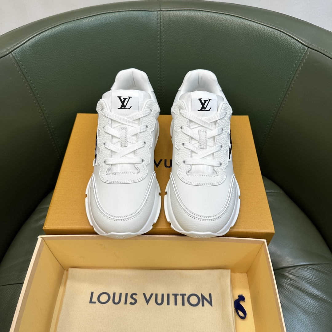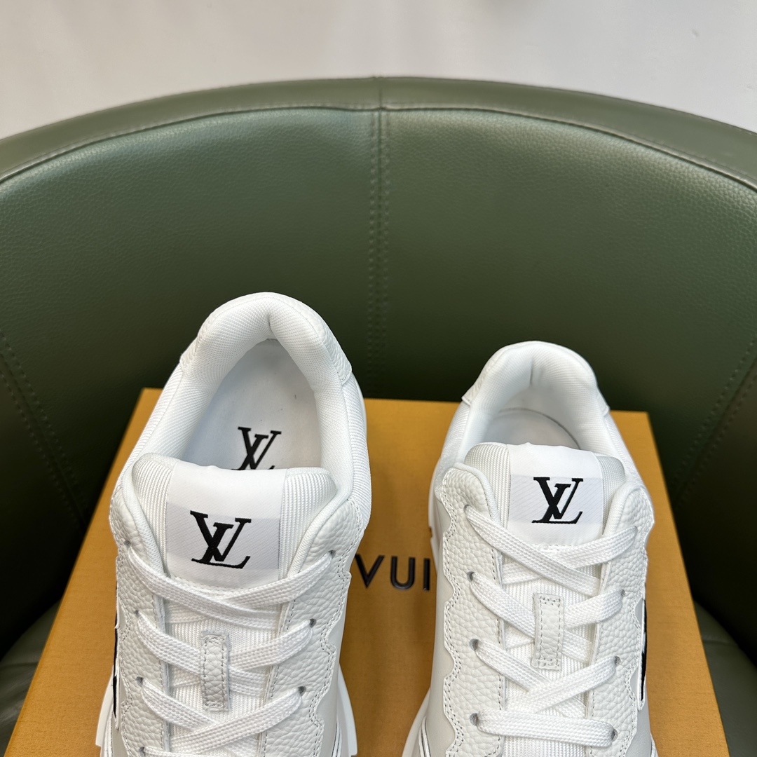 这款鞋子是AAAAA 1:1 质量 (非常棒). 使用了和原版一模一样的材料. 商标部分也保持了和路易威登/Louis Vuitton一样. 图片拍摄是实物鞋子拍摄, 您所收到的实物保证和我们图片一模一样.
