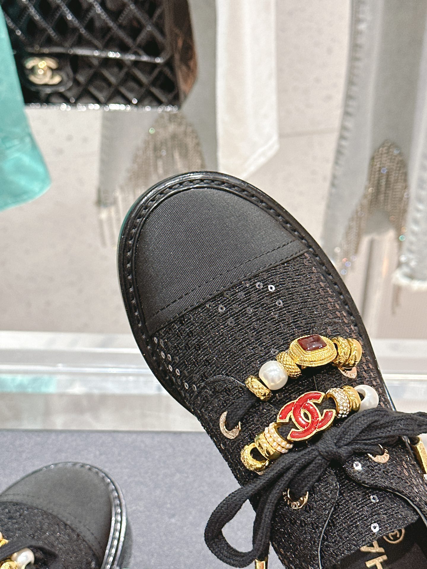 这款鞋子是AAAAA 1:1 质量 (非常棒). 使用了和原版一模一样的材料. 商标部分也保持了和香奈儿/Chanel一样. 图片拍摄是实物鞋子拍摄, 您所收到的实物保证和我们图片一模一样.