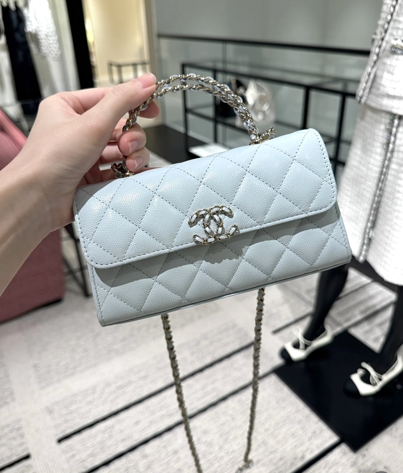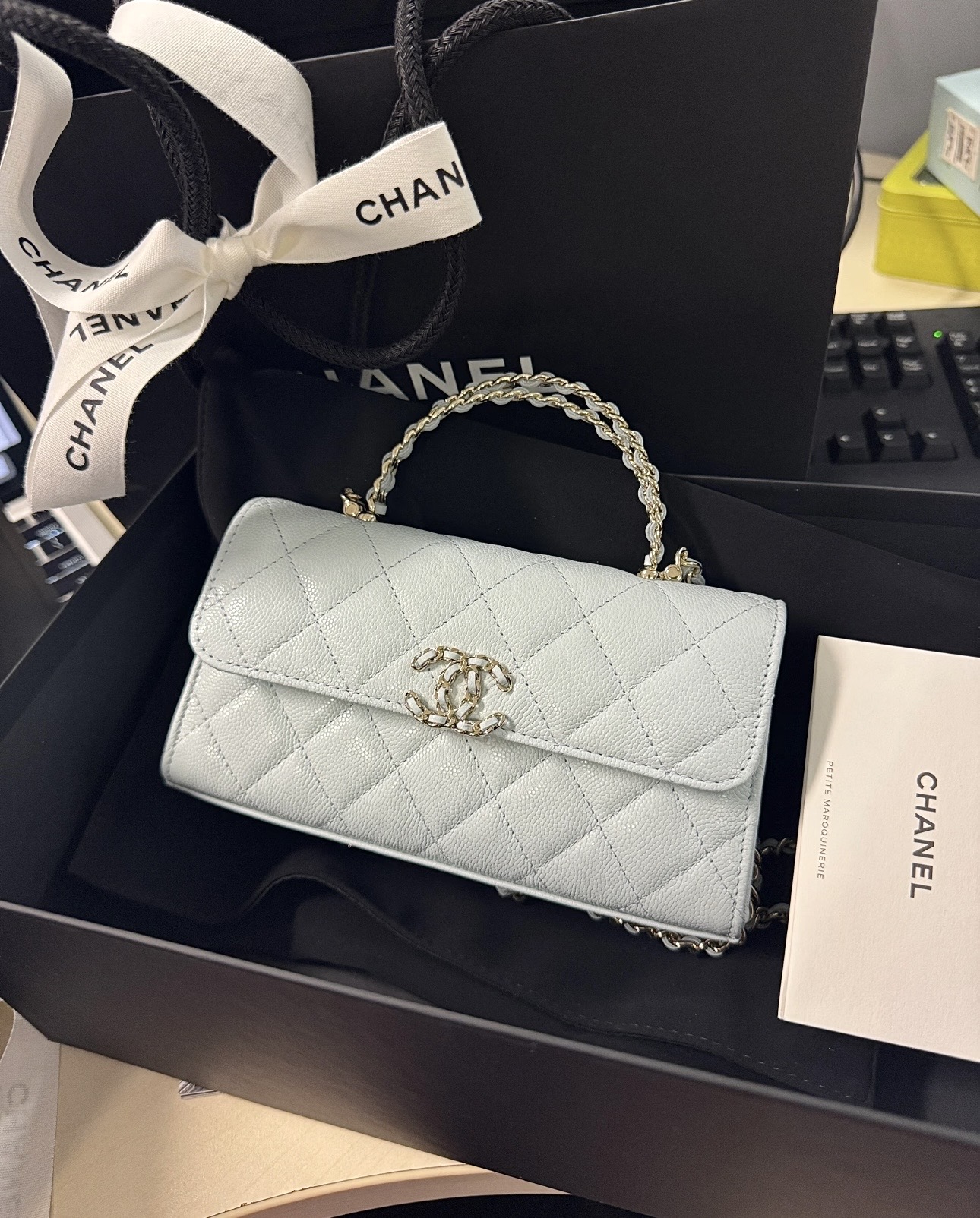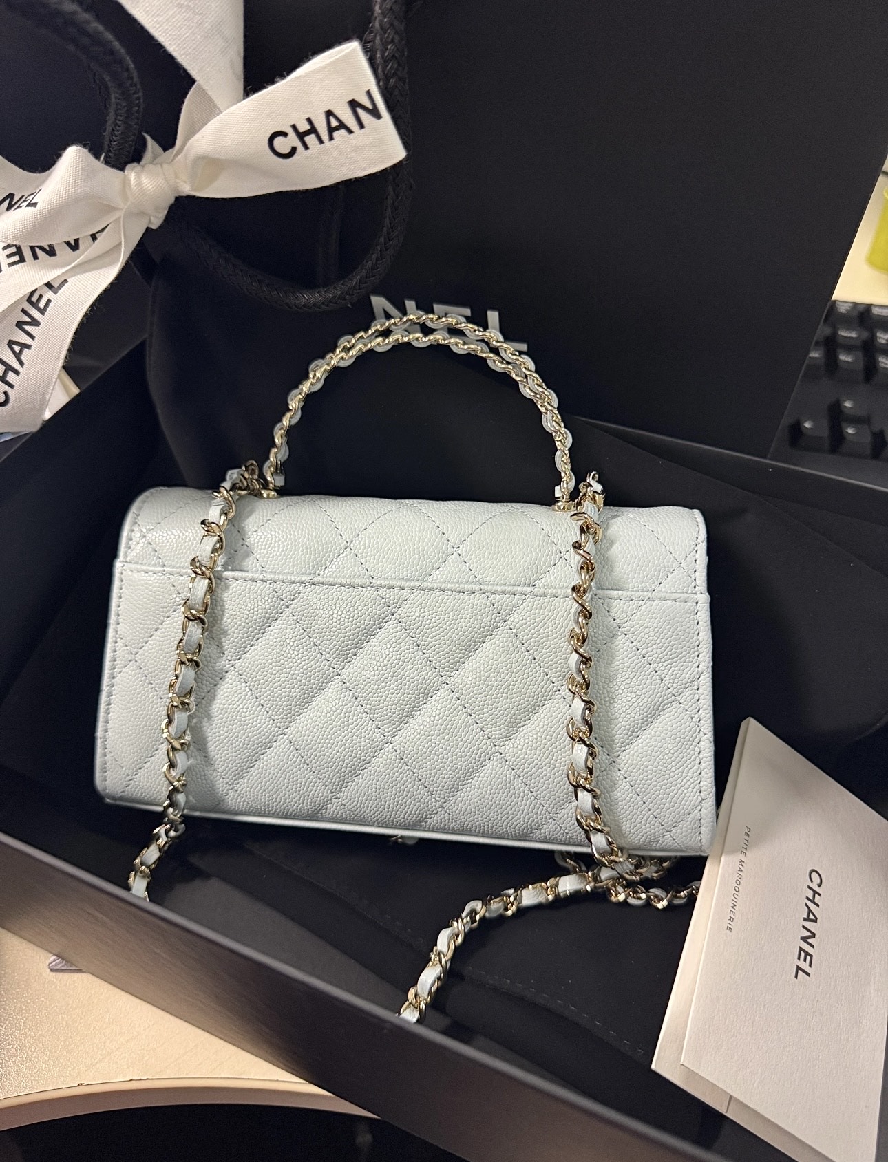 这款包包是AAAAA 1:1 质量 (非常棒). 使用了和原版一模一样的材料. 商标部分也保持了和香奈儿/Chanel一样. 图片拍摄是实物包包拍摄, 您所收到的实物保证和我们图片一模一样.