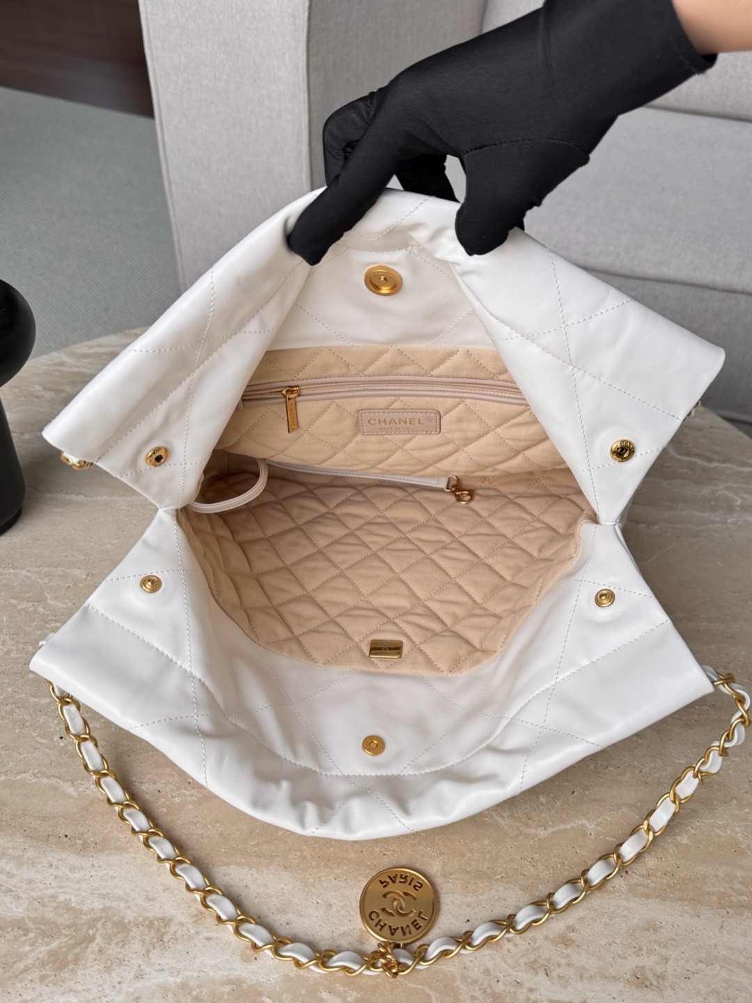 这款包包是AAAAA 1:1 质量 (非常棒). 使用了和原版一模一样的材料. 商标部分也保持了和香奈儿/Chanel一样. 图片拍摄是实物包包拍摄, 您所收到的实物保证和我们图片一模一样.