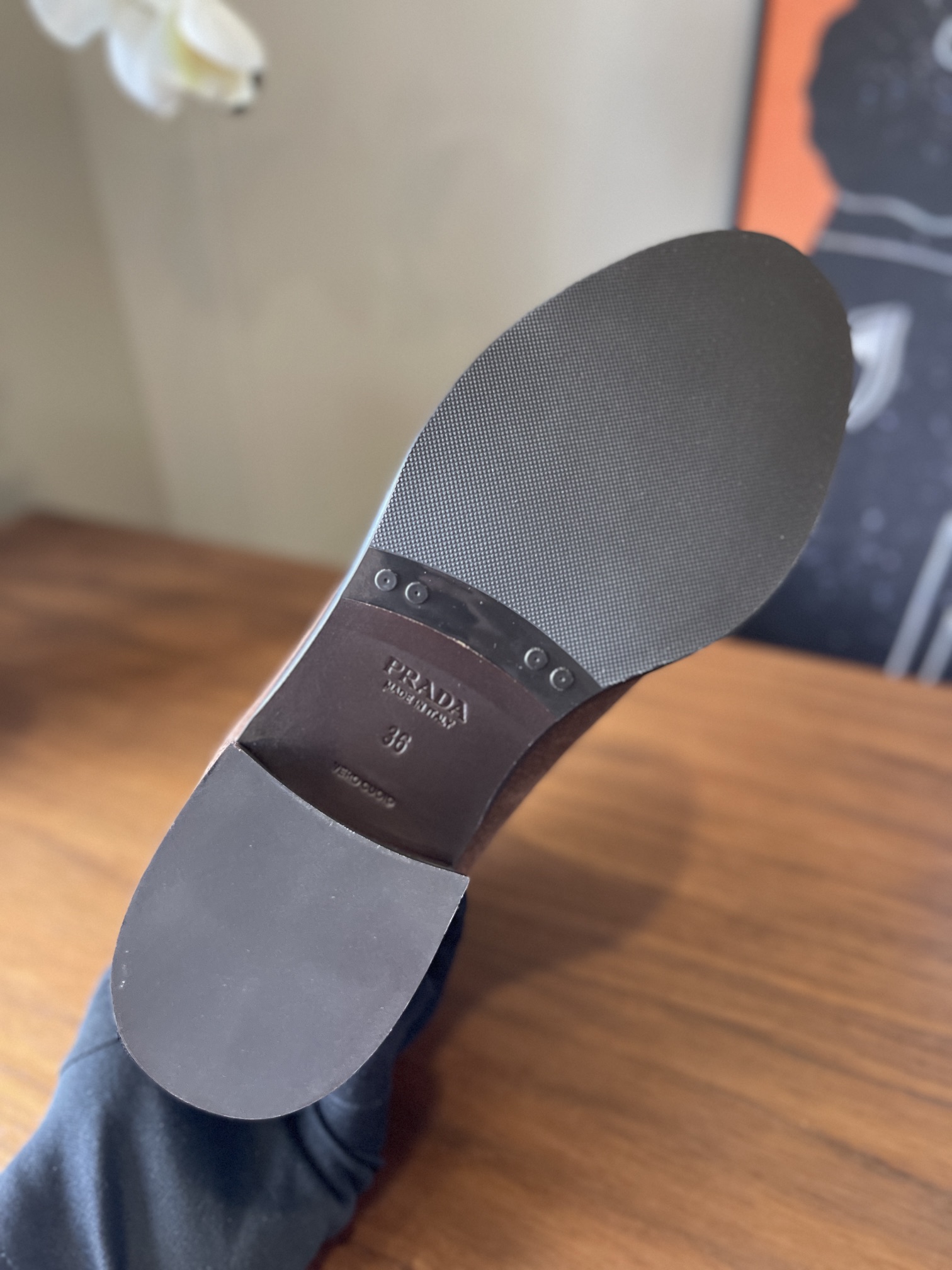 这款鞋子是AAAAA 1:1 质量 (非常棒). 使用了和原版一模一样的材料. 商标部分也保持了和普拉达/Prada一样. 图片拍摄是实物鞋子拍摄, 您所收到的实物保证和我们图片一模一样.