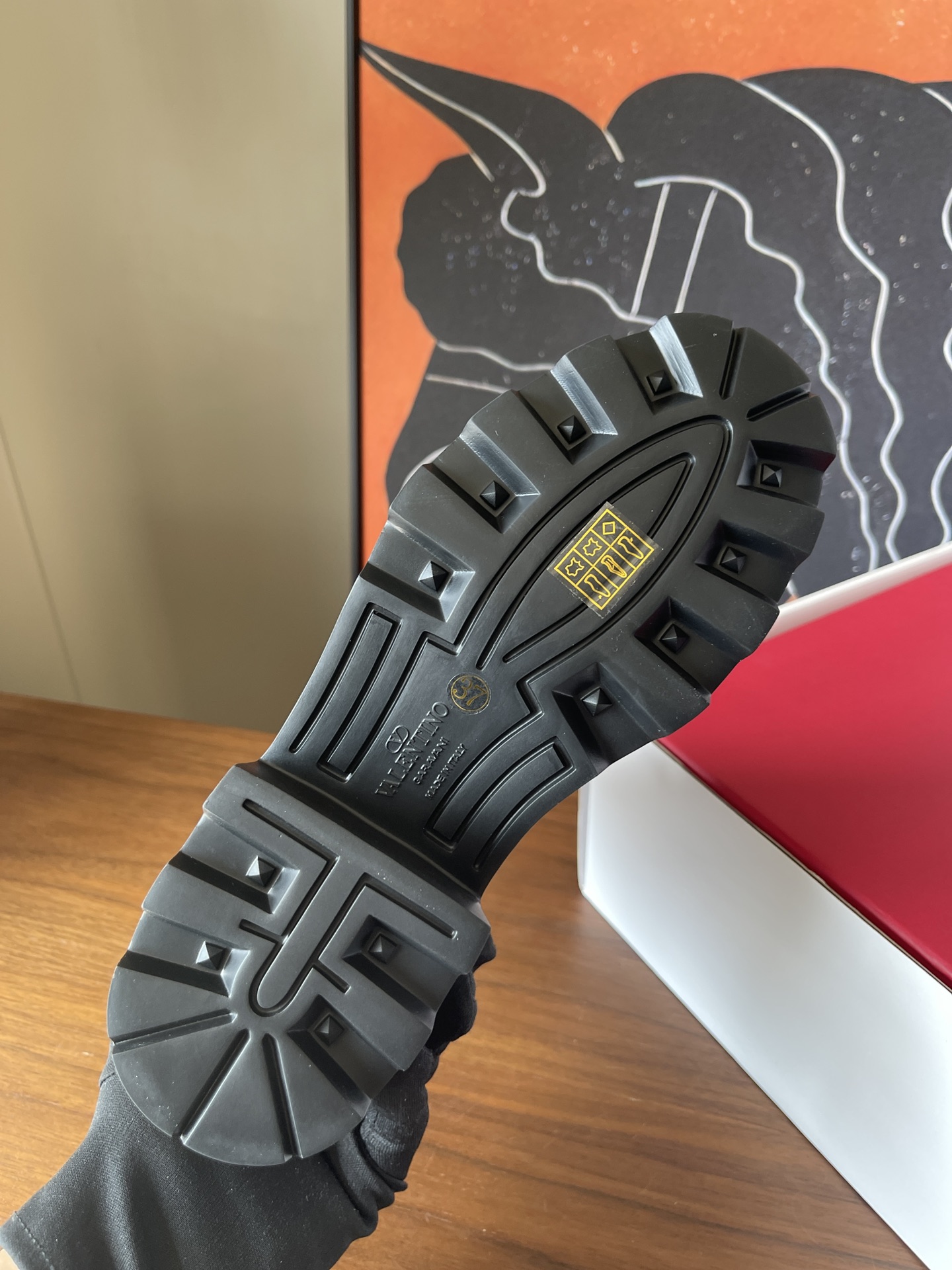这款鞋子是AAAAA 1:1 质量 (非常棒). 使用了和原版一模一样的材料. 商标部分也保持了和华伦天奴/Valentino一样. 图片拍摄是实物鞋子拍摄, 您所收到的实物保证和我们图片一模一样.
