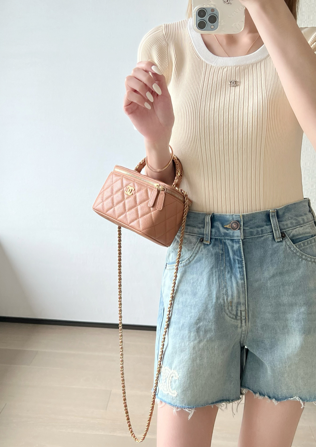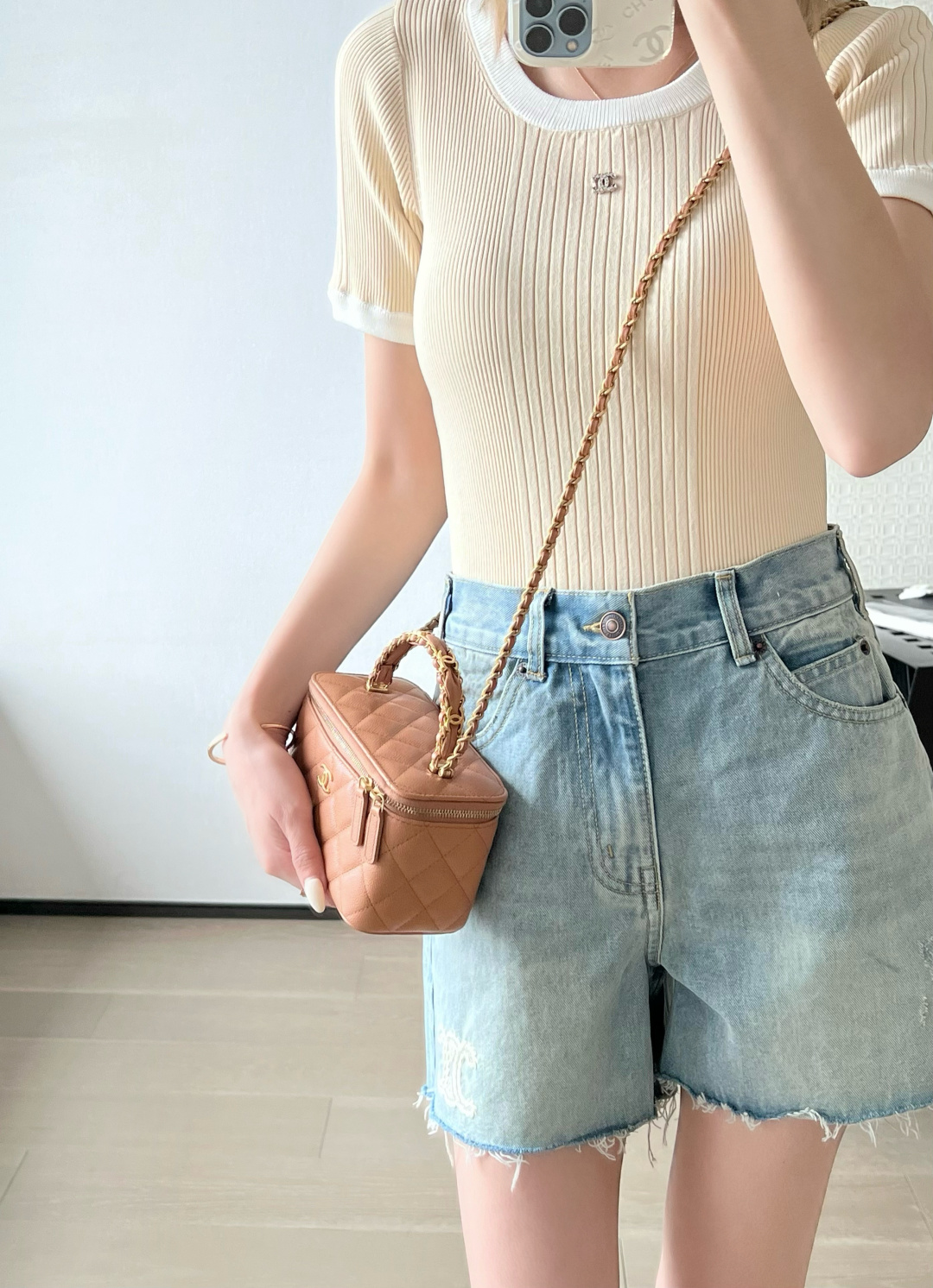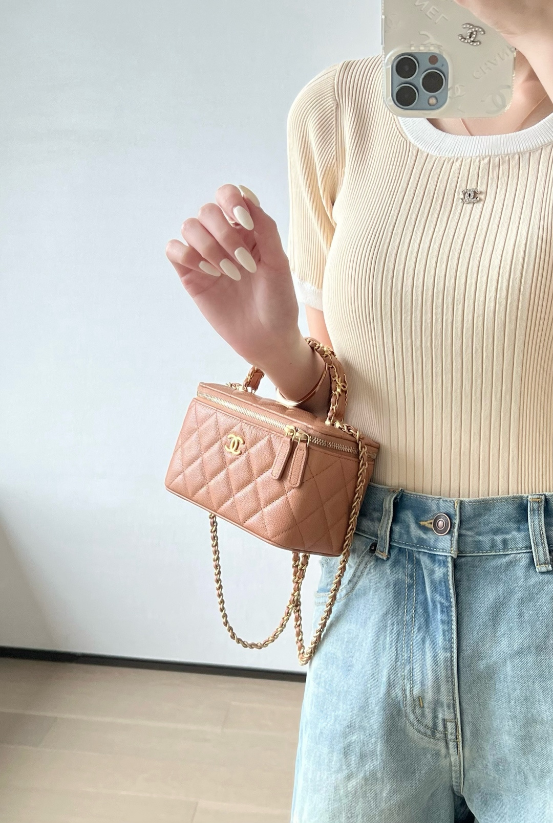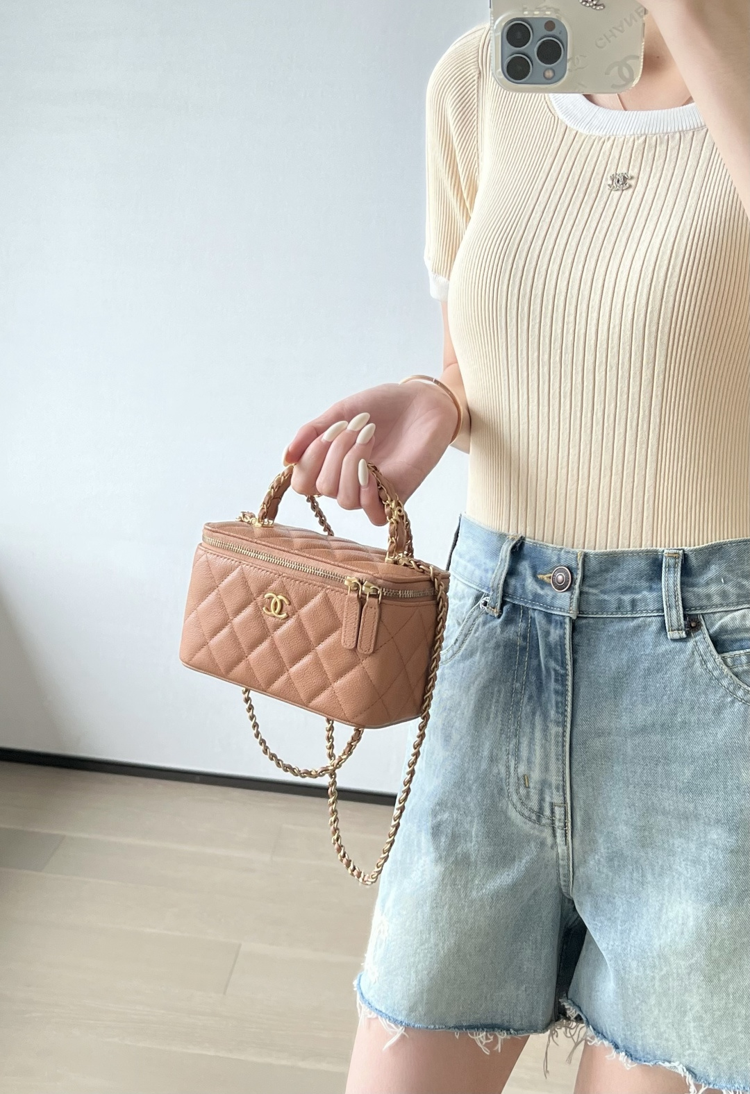 这款包包是AAAAA 1:1 质量 (非常棒). 使用了和原版一模一样的材料. 商标部分也保持了和香奈儿/Chanel一样. 图片拍摄是实物包包拍摄, 您所收到的实物保证和我们图片一模一样.