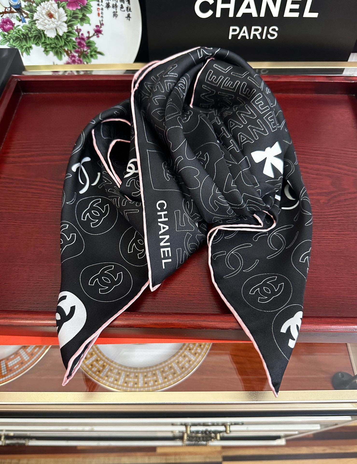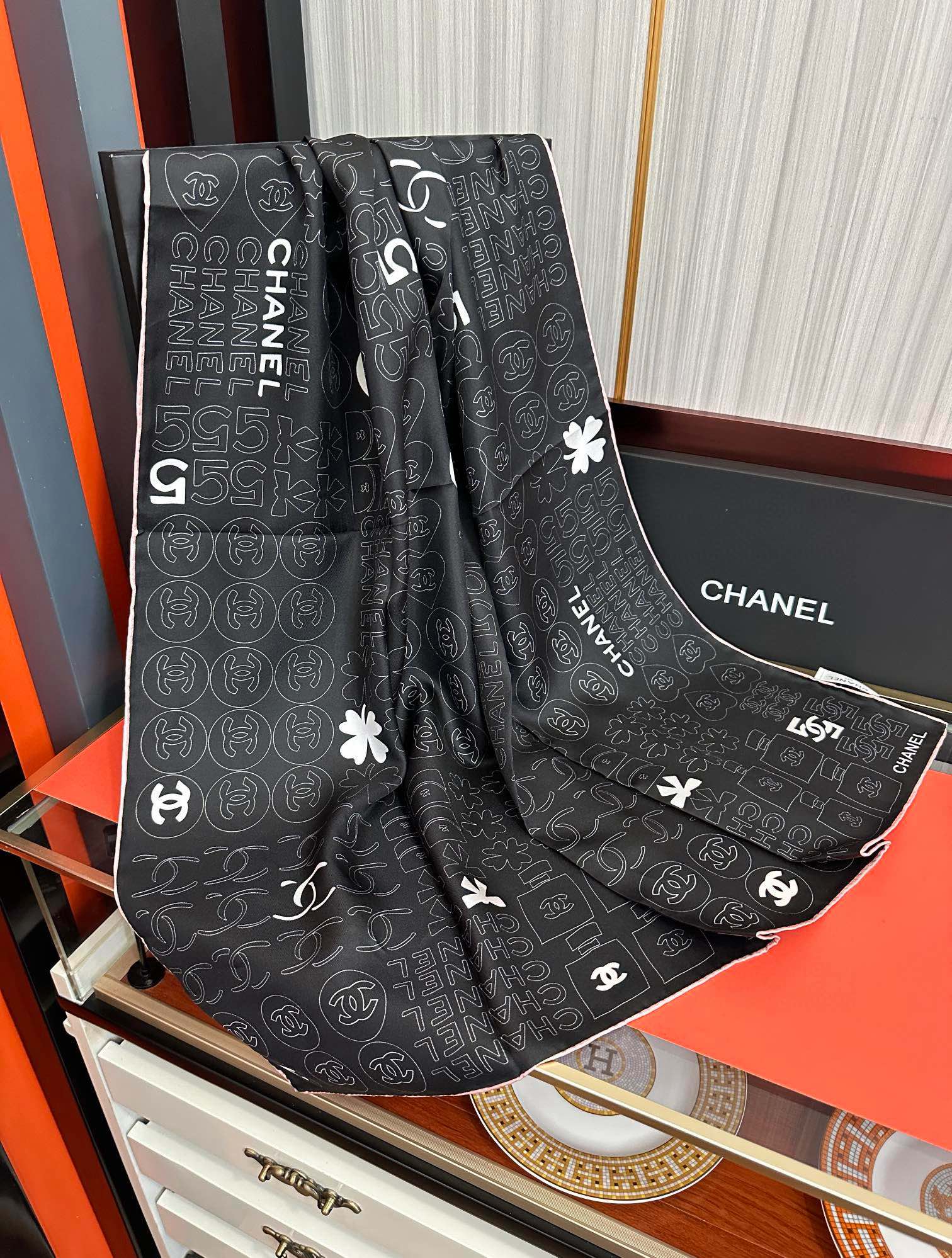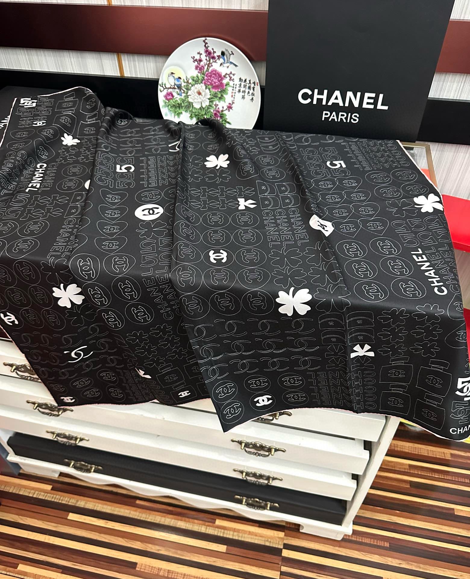 这款围巾是AAAAA 1:1 质量 (非常棒). 使用了和原版一模一样的材料. 商标部分也保持了和香奈儿/Chanel一样. 图片拍摄是实物围巾拍摄, 您所收到的实物保证和我们图片一模一样.