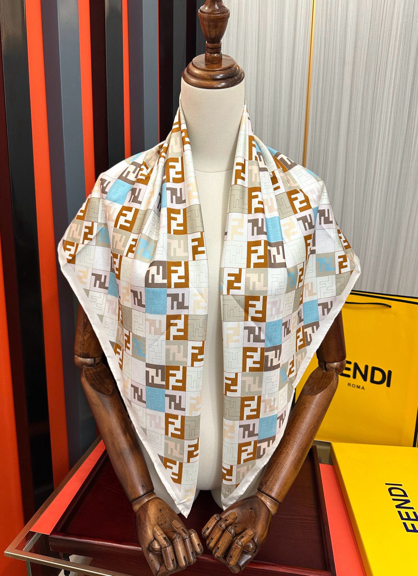 这款围巾是AAAAA 1:1 质量 (非常棒). 使用了和原版一模一样的材料. 商标部分也保持了和芬迪/Fendi一样. 图片拍摄是实物围巾拍摄, 您所收到的实物保证和我们图片一模一样.