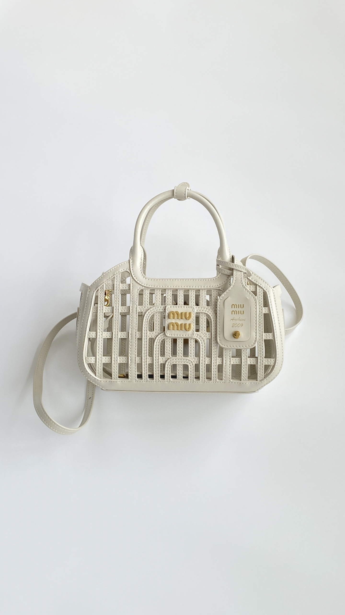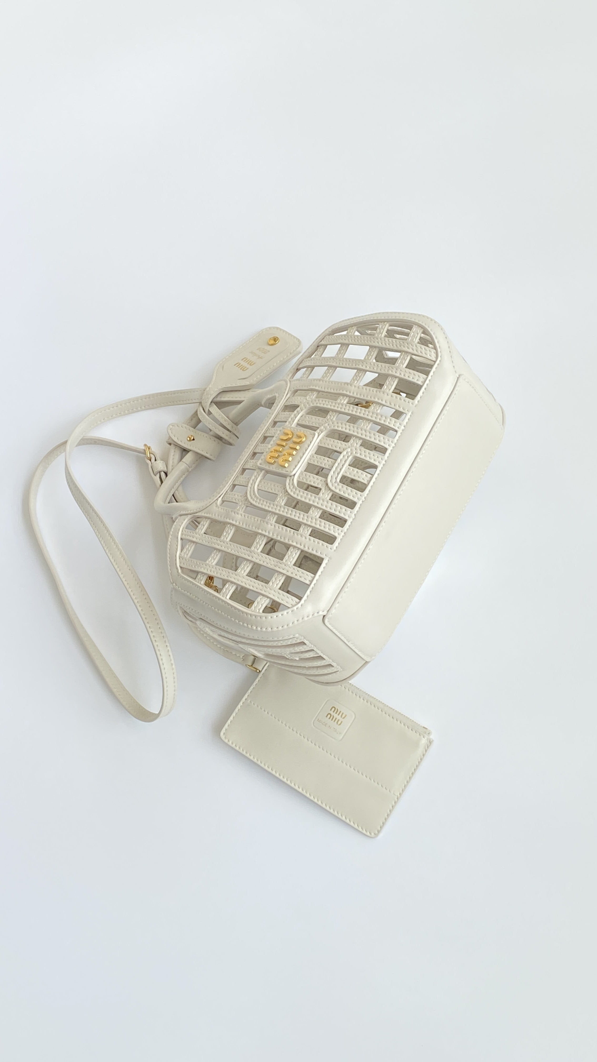 这款包包是AAAAA 1:1 质量 (非常棒). 使用了和原版一模一样的材料. 商标部分也保持了和缪缪/Miu Miu一样. 图片拍摄是实物包包拍摄, 您所收到的实物保证和我们图片一模一样.