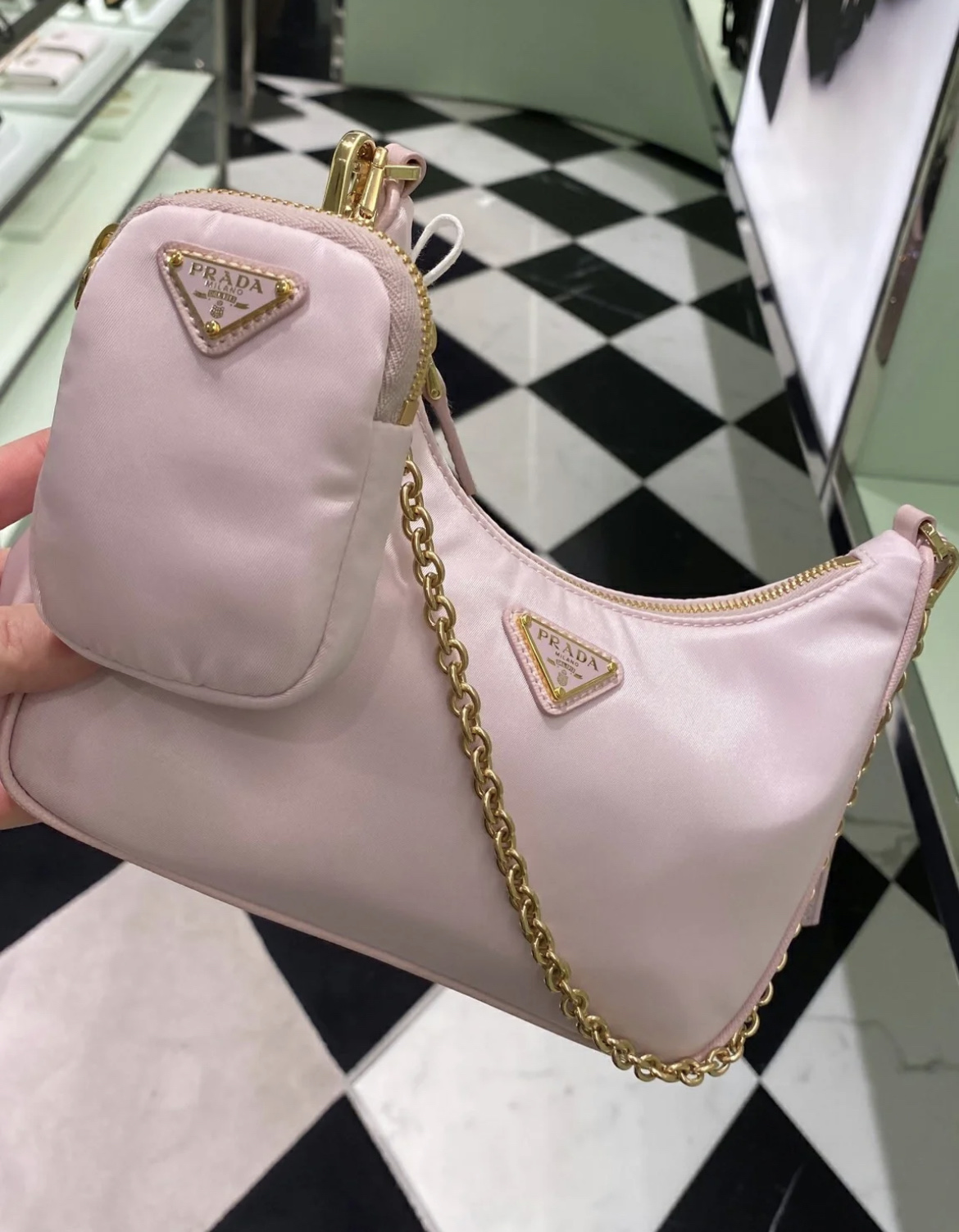这款包包是AAAAA 1:1 质量 (非常棒). 使用了和原版一模一样的材料. 商标部分也保持了和普拉达/Prada一样. 图片拍摄是实物包包拍摄, 您所收到的实物保证和我们图片一模一样.