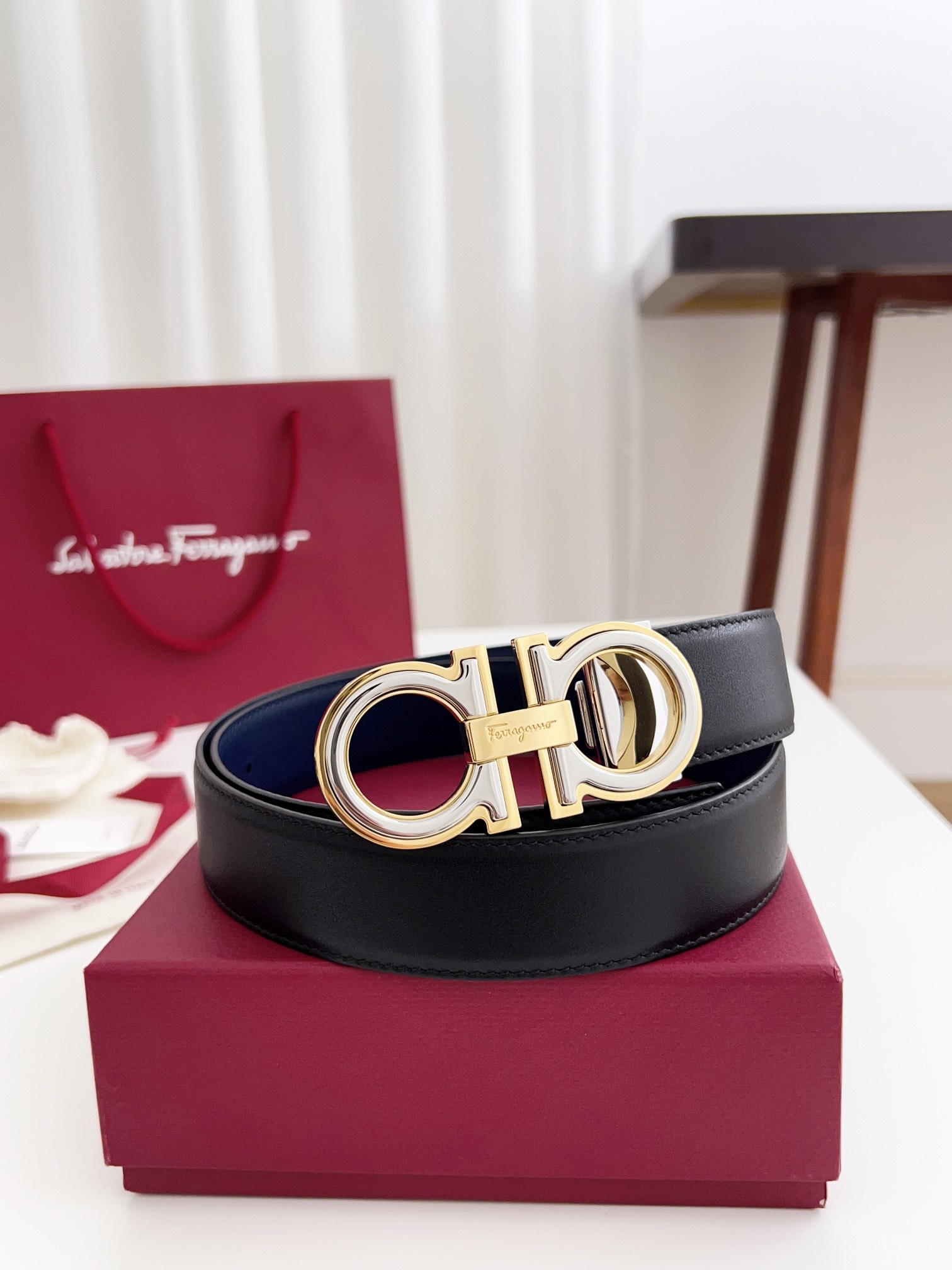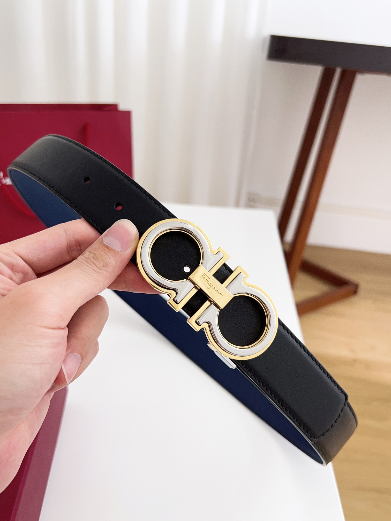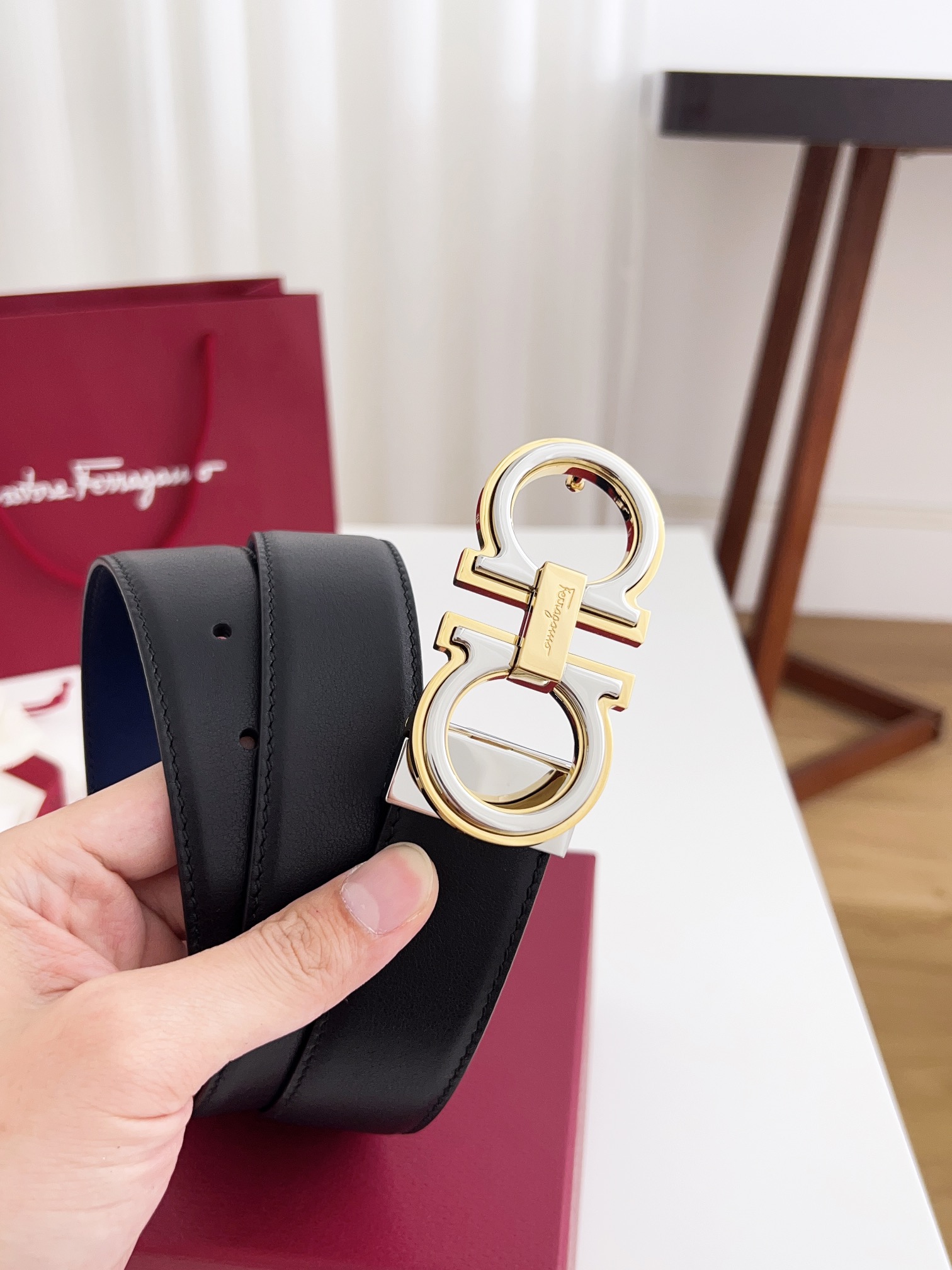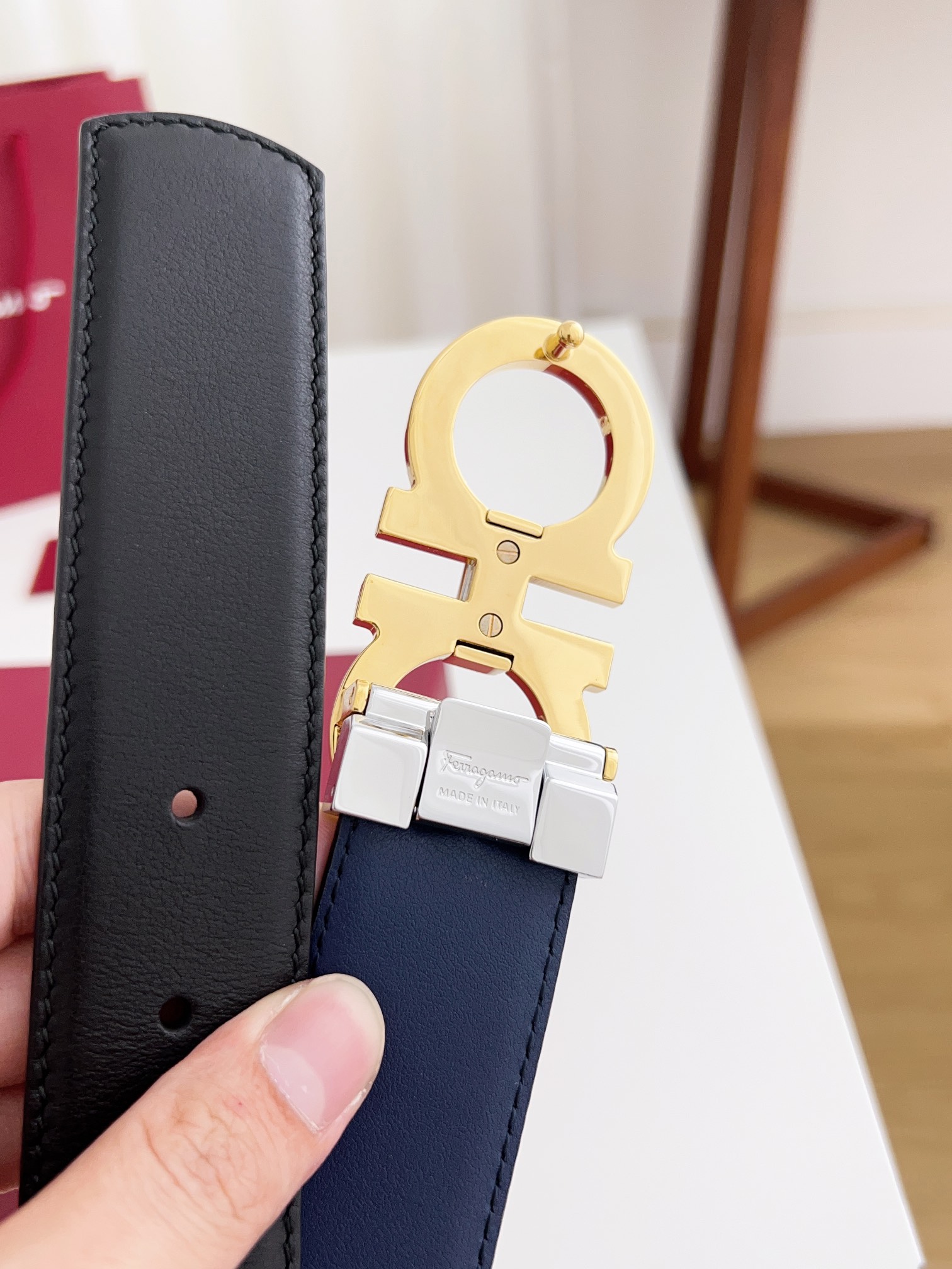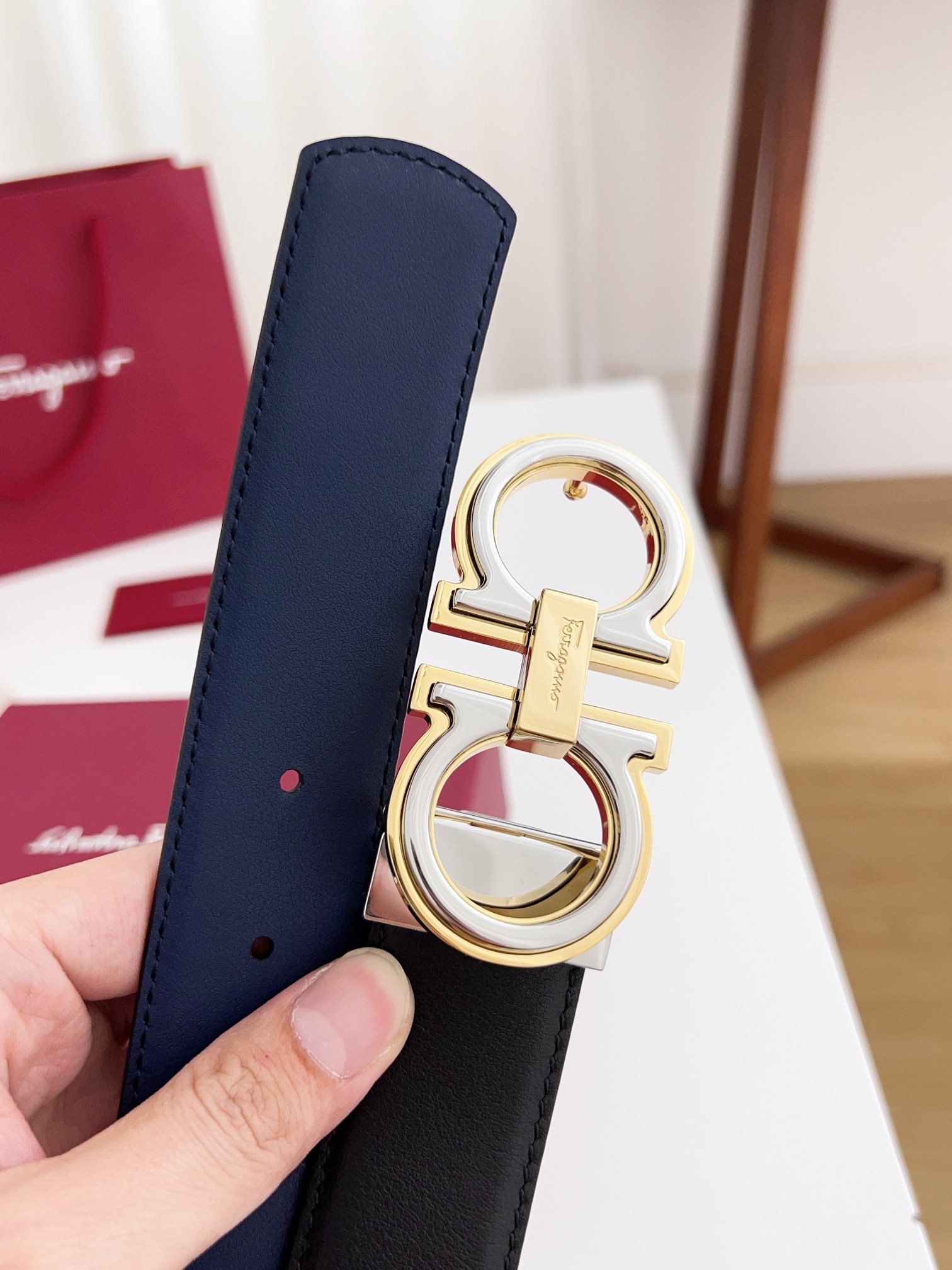 这款皮带是AAAAA 1:1 质量 (非常棒). 使用了和原版一模一样的材料. 商标部分也保持了和菲拉格慕/Salvatore Ferragamo一样. 图片拍摄是实物皮带拍摄, 您所收到的实物保证和我们图片一模一样.