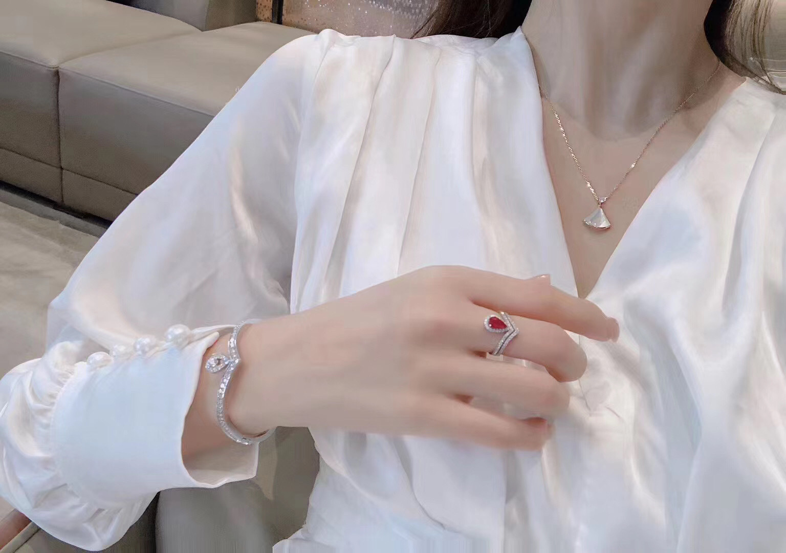 这款首饰是AAAAA 1:1 质量 (非常棒). 使用了和原版一模一样的材料. 商标部分也保持了和一样. 图片拍摄是实物首饰拍摄, 您所收到的实物保证和我们图片一模一样.