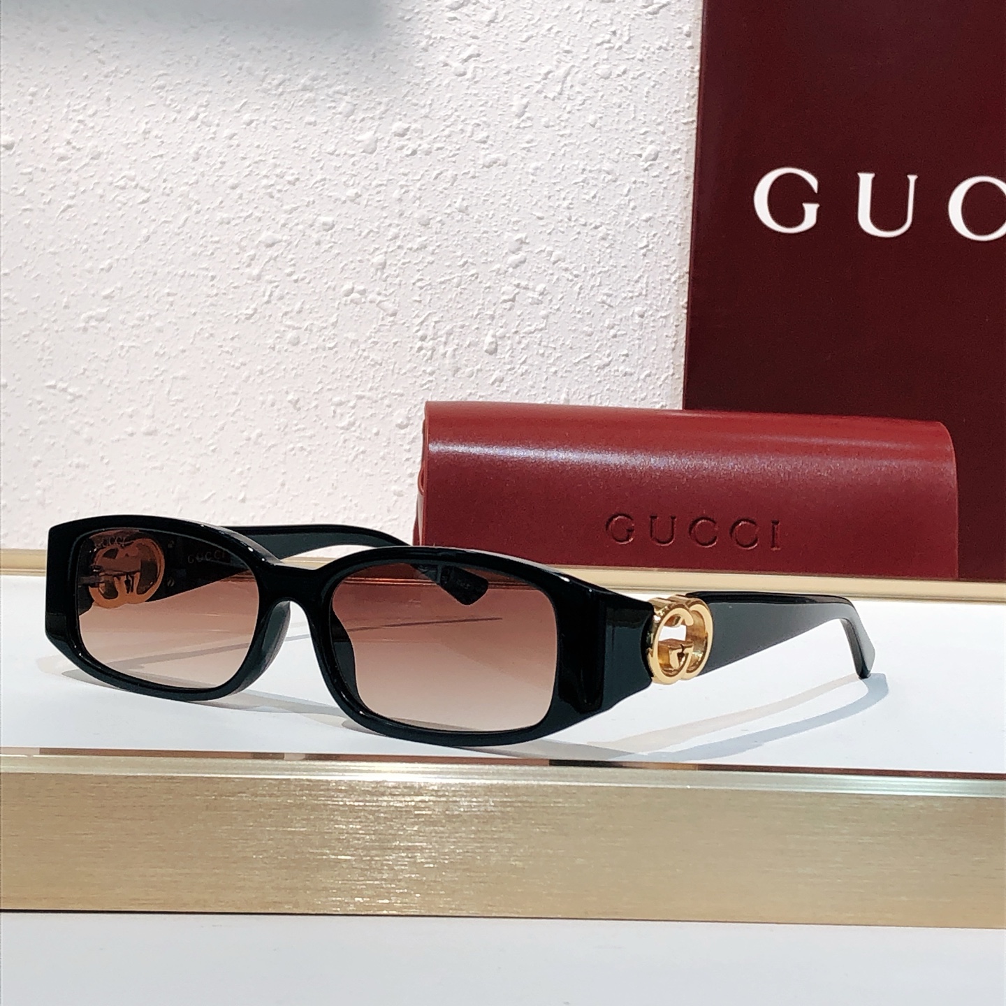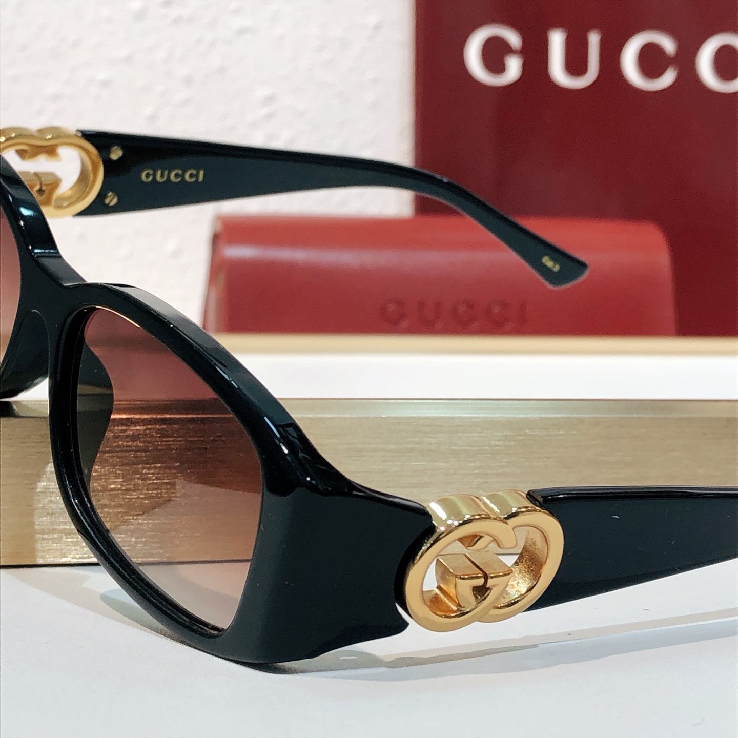 这款太阳眼镜是AAAAA 1:1 质量 (非常棒). 使用了和原版一模一样的材料. 商标部分也保持了和古奇/Gucci一样. 图片拍摄是实物太阳眼镜拍摄, 您所收到的实物保证和我们图片一模一样.