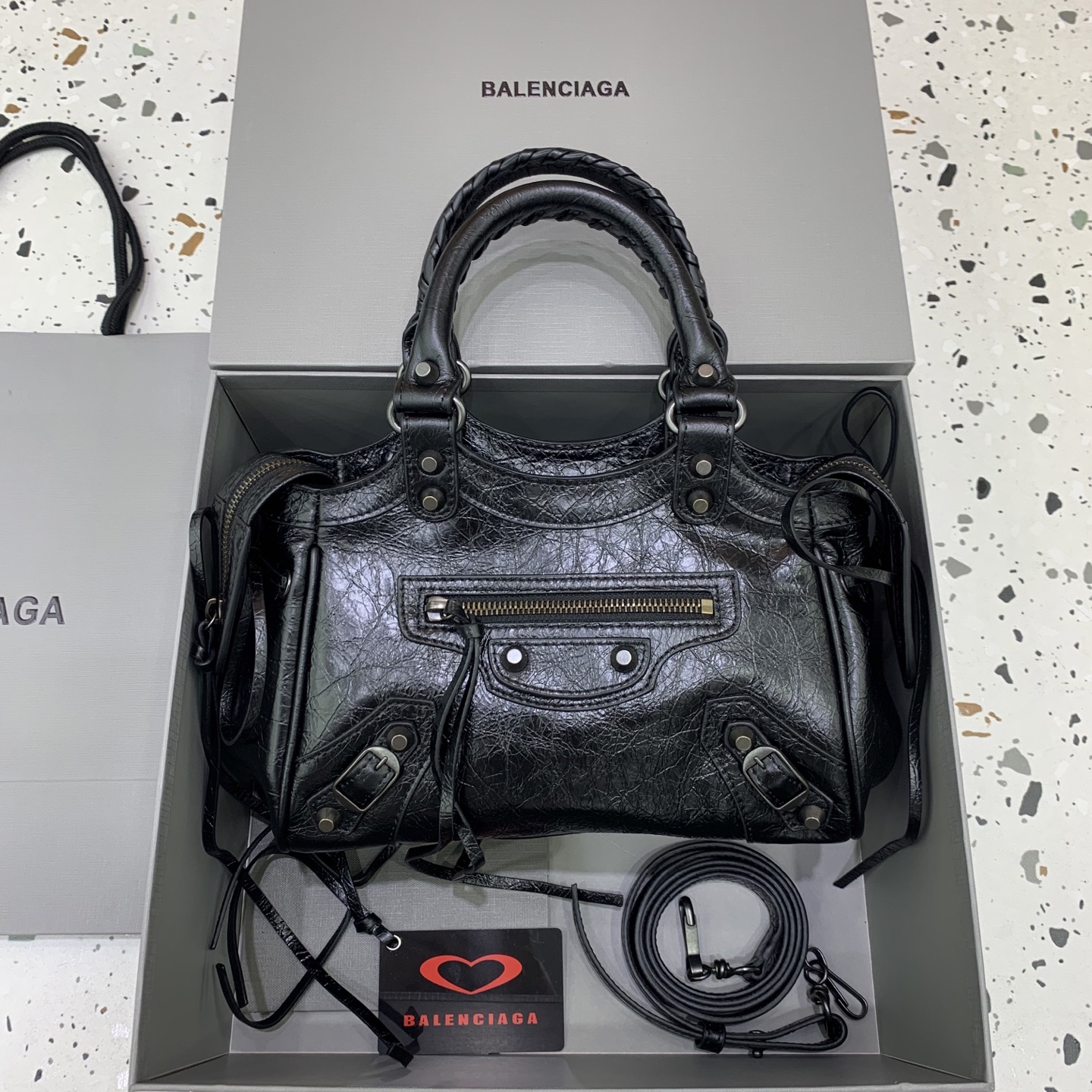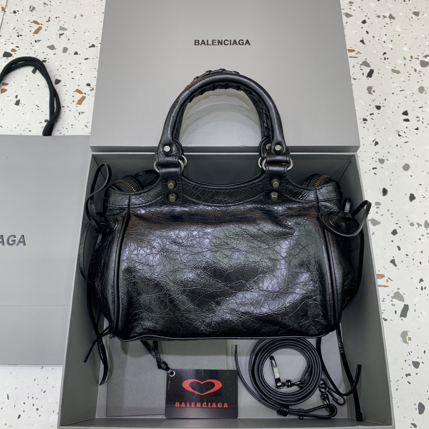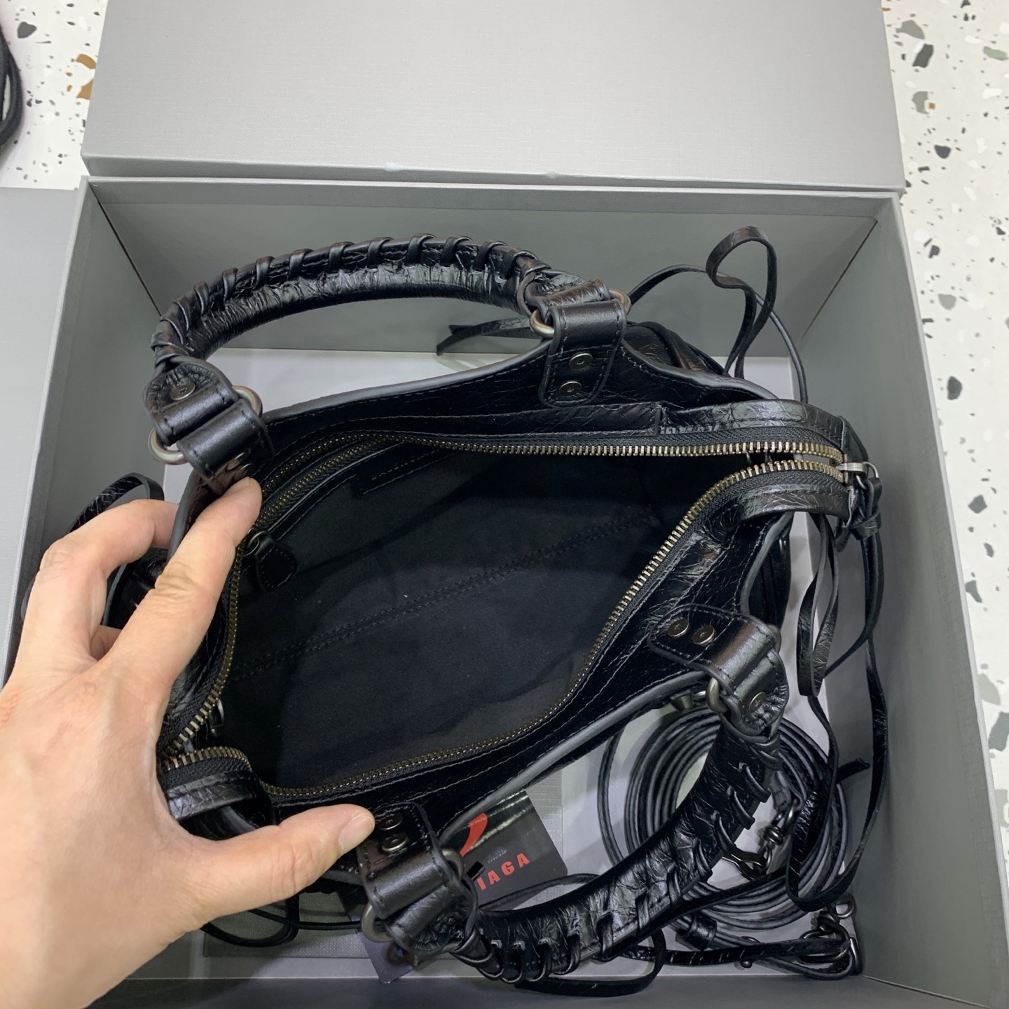 这款包包是AAAAA 1:1 质量 (非常棒). 使用了和原版一模一样的材料. 商标部分也保持了和巴黎世家/Balenciaga一样. 图片拍摄是实物包包拍摄, 您所收到的实物保证和我们图片一模一样.