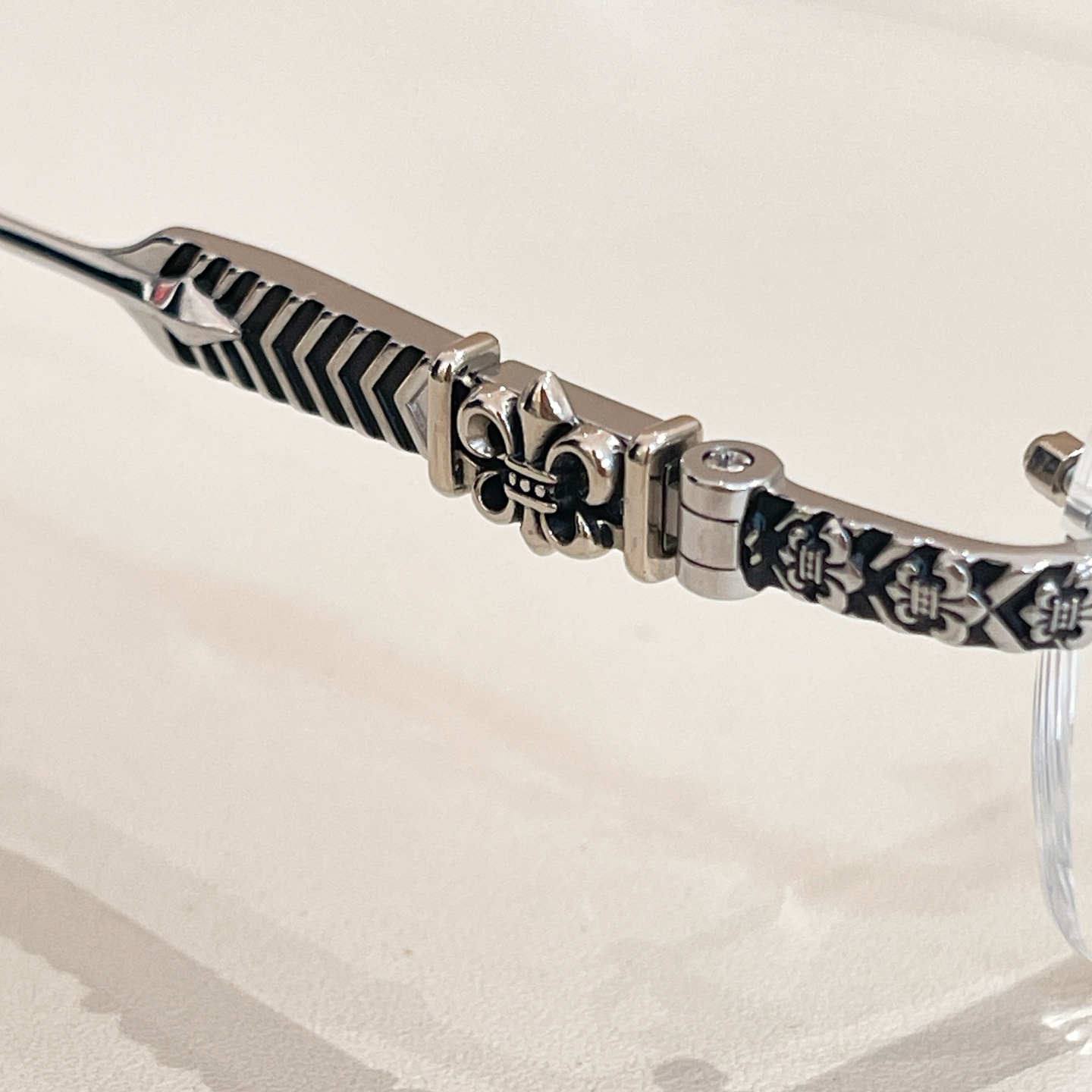 这款太阳眼镜是AAAAA 1:1 质量 (非常棒). 使用了和原版一模一样的材料. 商标部分也保持了和克罗心/Chrome Hearts一样. 图片拍摄是实物太阳眼镜拍摄, 您所收到的实物保证和我们图片一模一样.