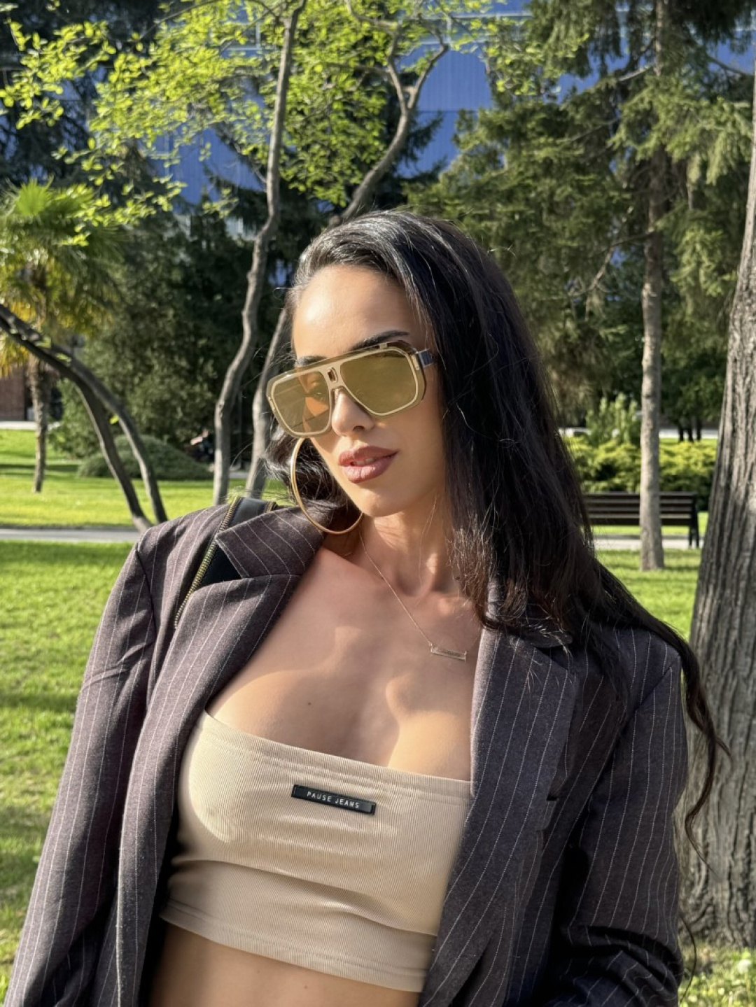 这款太阳眼镜是AAAAA 1:1 质量 (非常棒). 使用了和原版一模一样的材料. 商标部分也保持了和菲利普·普林/Philipp Plein一样. 图片拍摄是实物太阳眼镜拍摄, 您所收到的实物保证和我们图片一模一样.