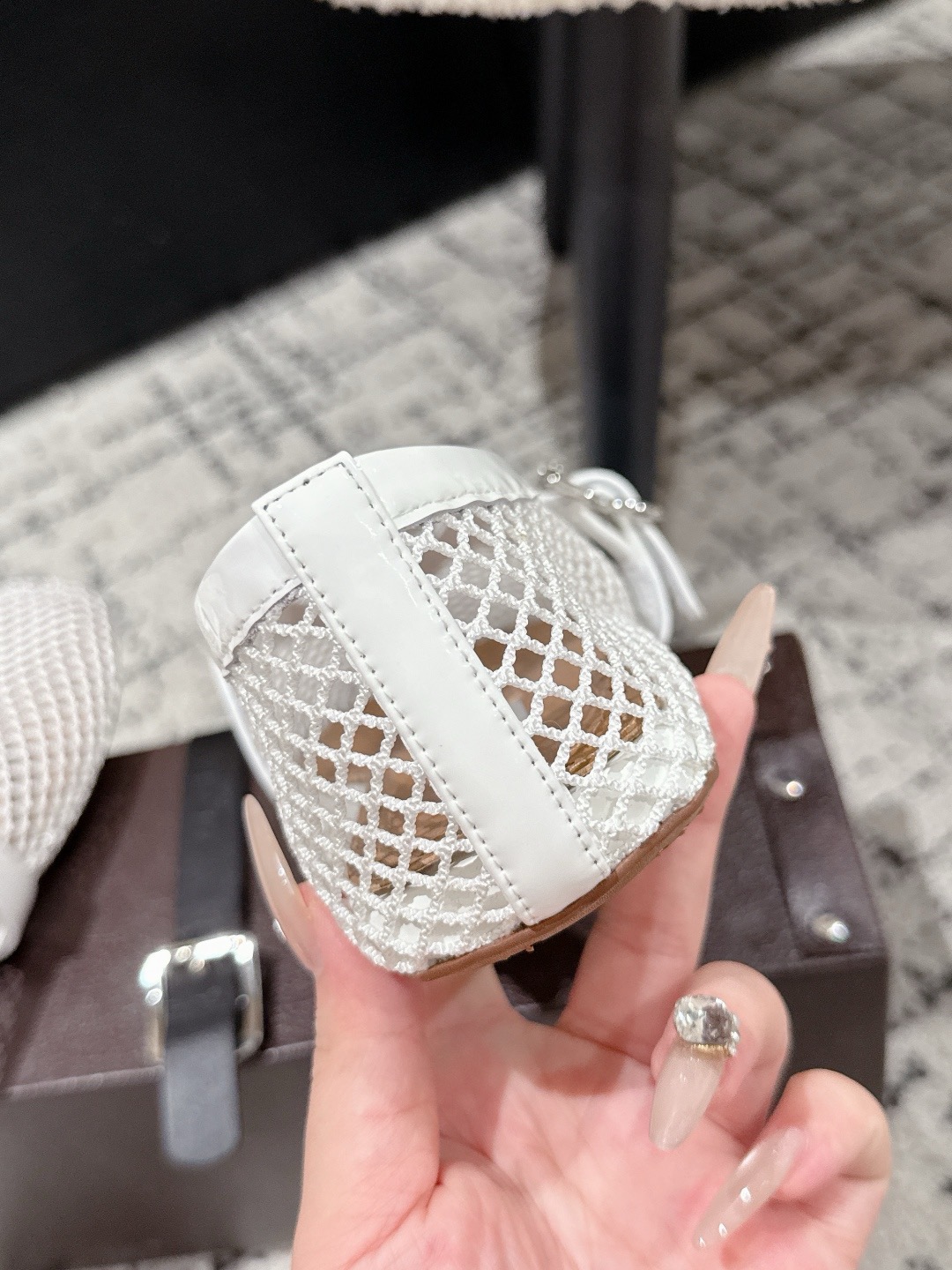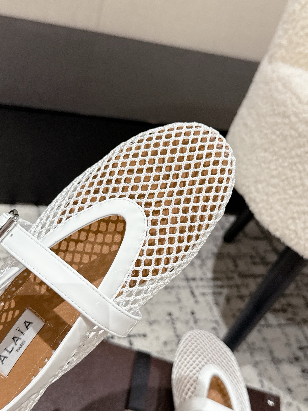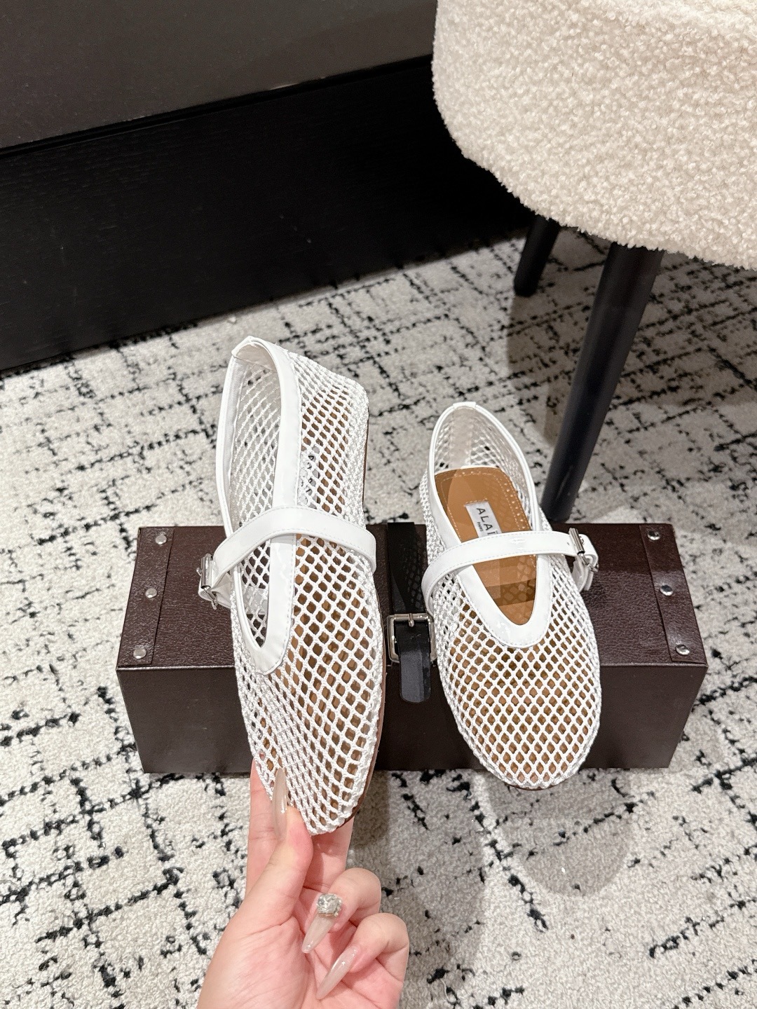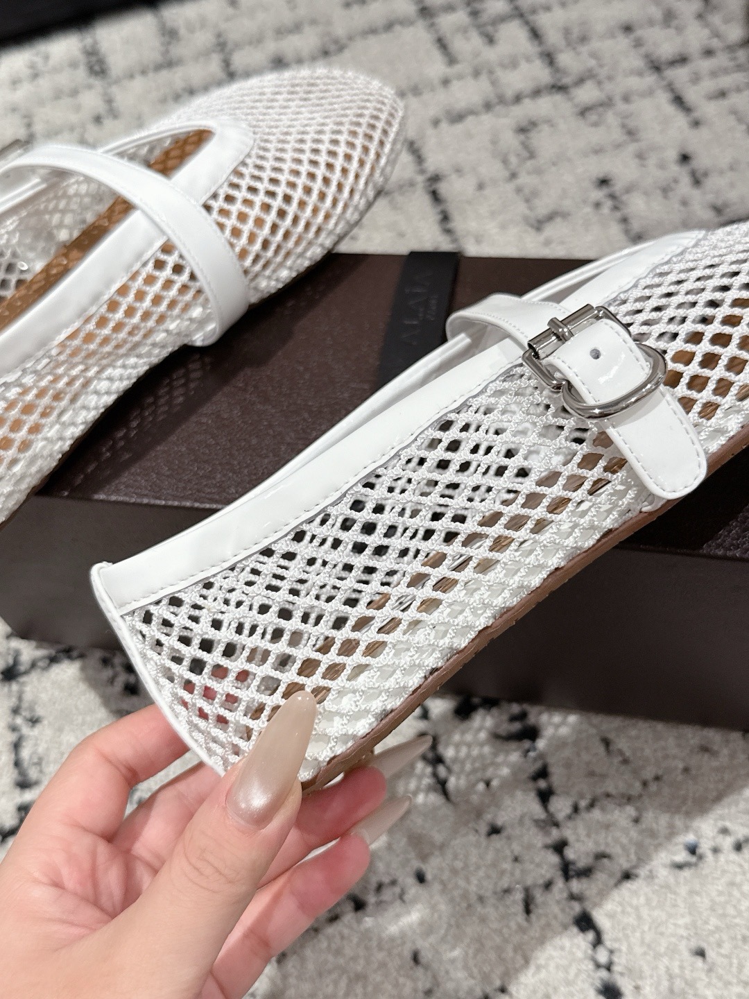这款鞋子是AAAAA 1:1 质量 (非常棒). 使用了和原版一模一样的材料. 商标部分也保持了和Alaia一样. 图片拍摄是实物鞋子拍摄, 您所收到的实物保证和我们图片一模一样.