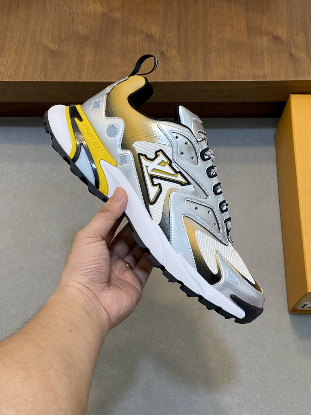 这款鞋子是AAAAA 1:1 质量 (非常棒). 使用了和原版一模一样的材料. 商标部分也保持了和路易威登/Louis Vuitton一样. 图片拍摄是实物鞋子拍摄, 您所收到的实物保证和我们图片一模一样.