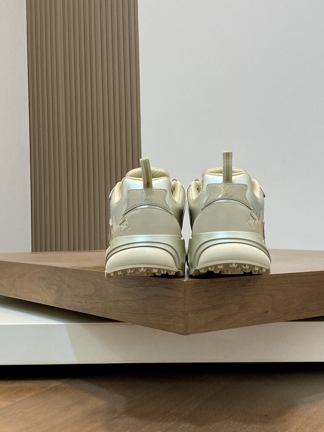 这款鞋子是AAAAA 1:1 质量 (非常棒). 使用了和原版一模一样的材料. 商标部分也保持了和路易威登/Louis Vuitton一样. 图片拍摄是实物鞋子拍摄, 您所收到的实物保证和我们图片一模一样.