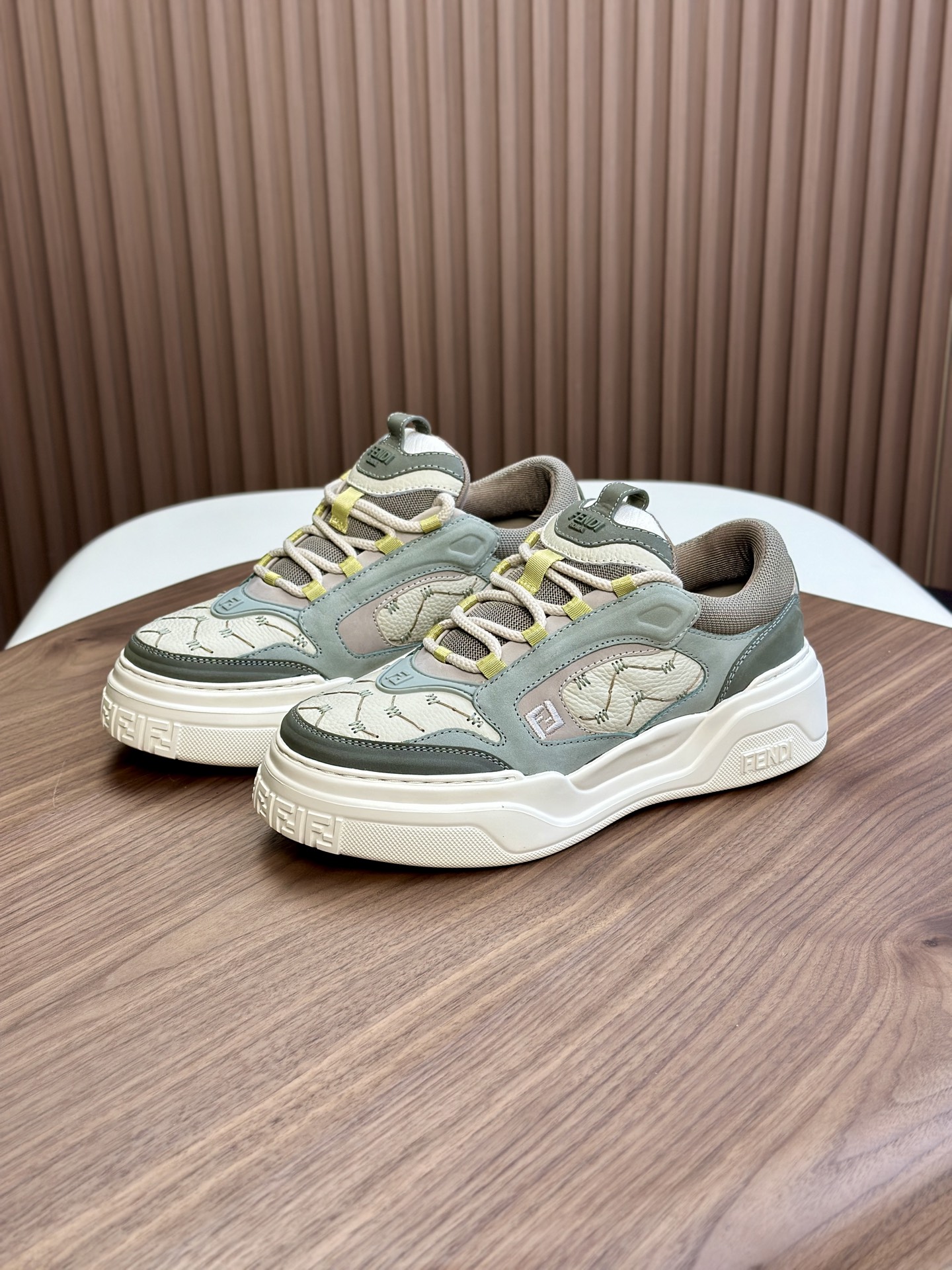 这款鞋子是AAAAA 1:1 质量 (非常棒). 使用了和原版一模一样的材料. 商标部分也保持了和芬迪/Fendi一样. 图片拍摄是实物鞋子拍摄, 您所收到的实物保证和我们图片一模一样.