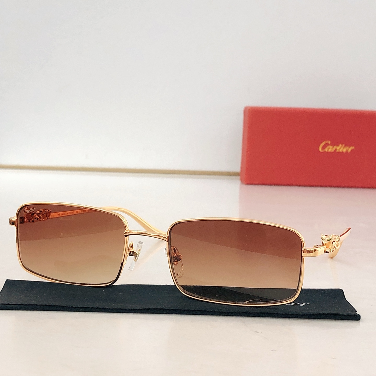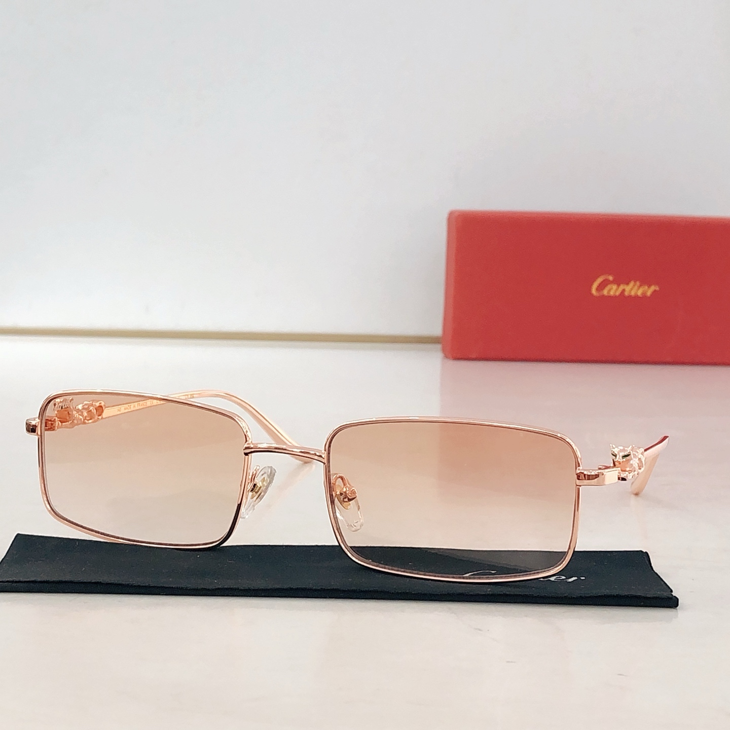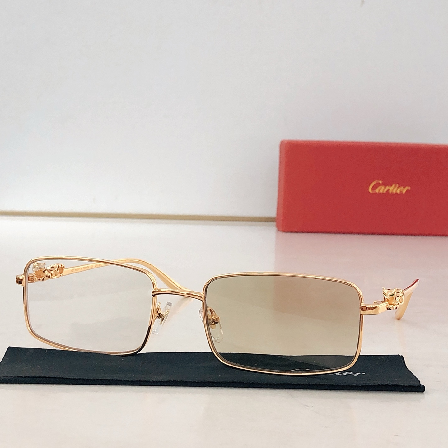 这款太阳眼镜是AAAAA 1:1 质量 (非常棒). 使用了和原版一模一样的材料. 商标部分也保持了和卡地亚/Cartier一样. 图片拍摄是实物太阳眼镜拍摄, 您所收到的实物保证和我们图片一模一样.