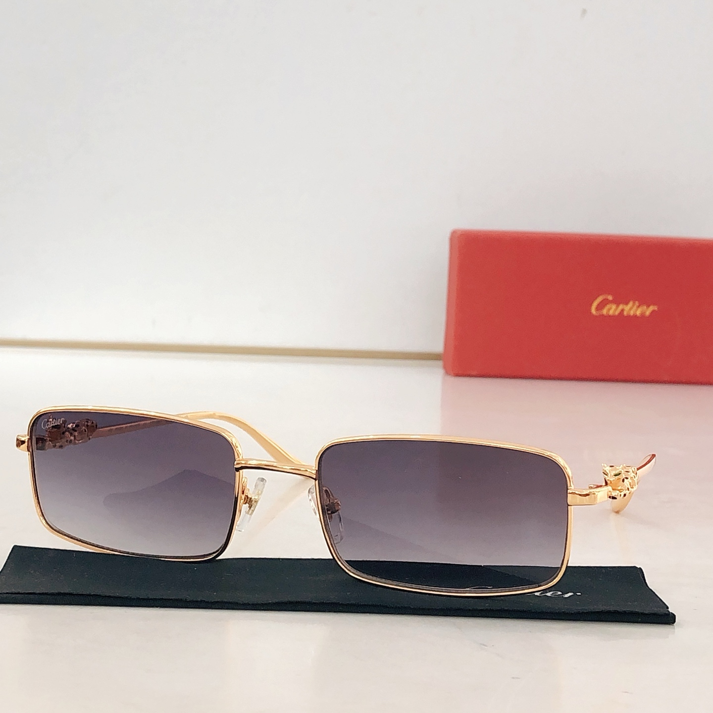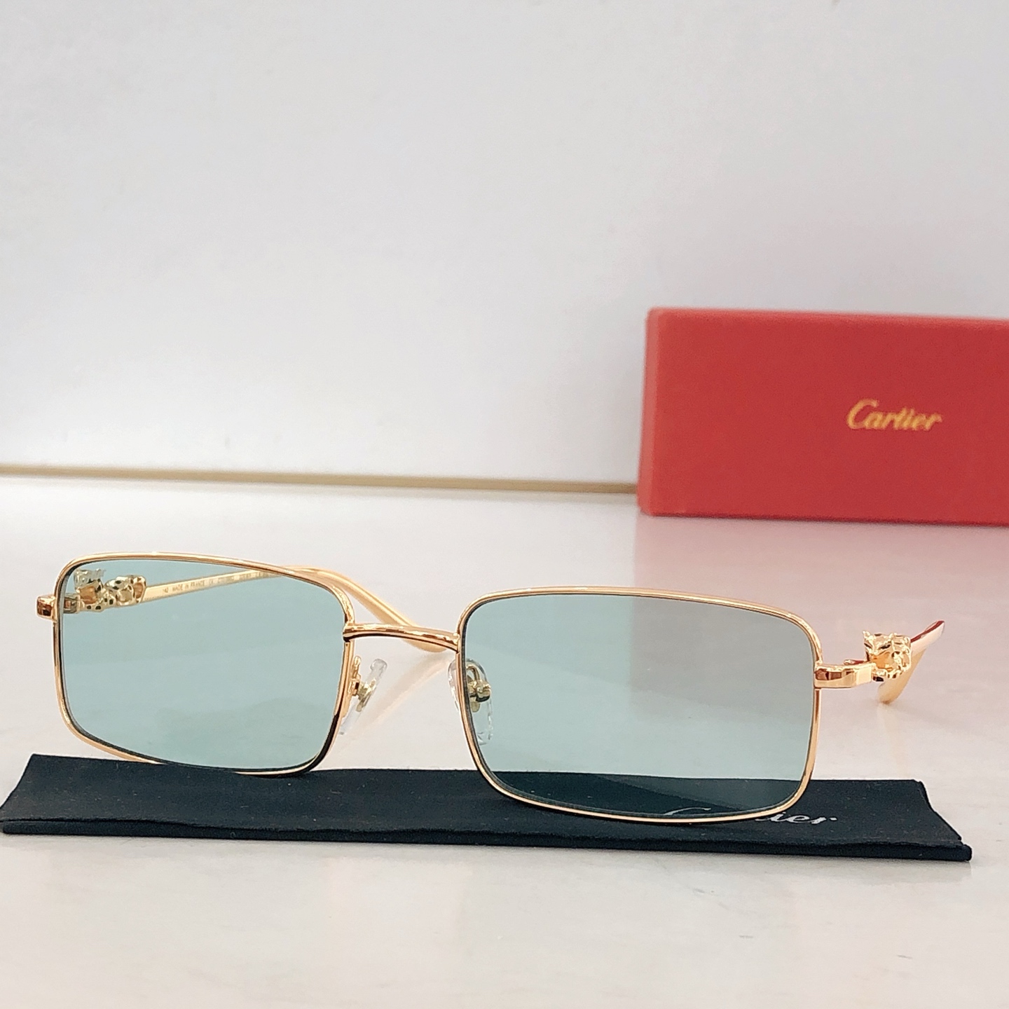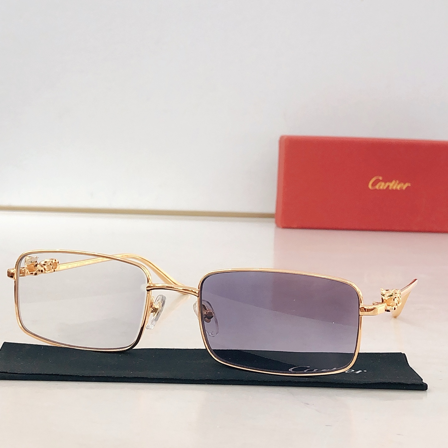 这款太阳眼镜是AAAAA 1:1 质量 (非常棒). 使用了和原版一模一样的材料. 商标部分也保持了和卡地亚/Cartier一样. 图片拍摄是实物太阳眼镜拍摄, 您所收到的实物保证和我们图片一模一样.