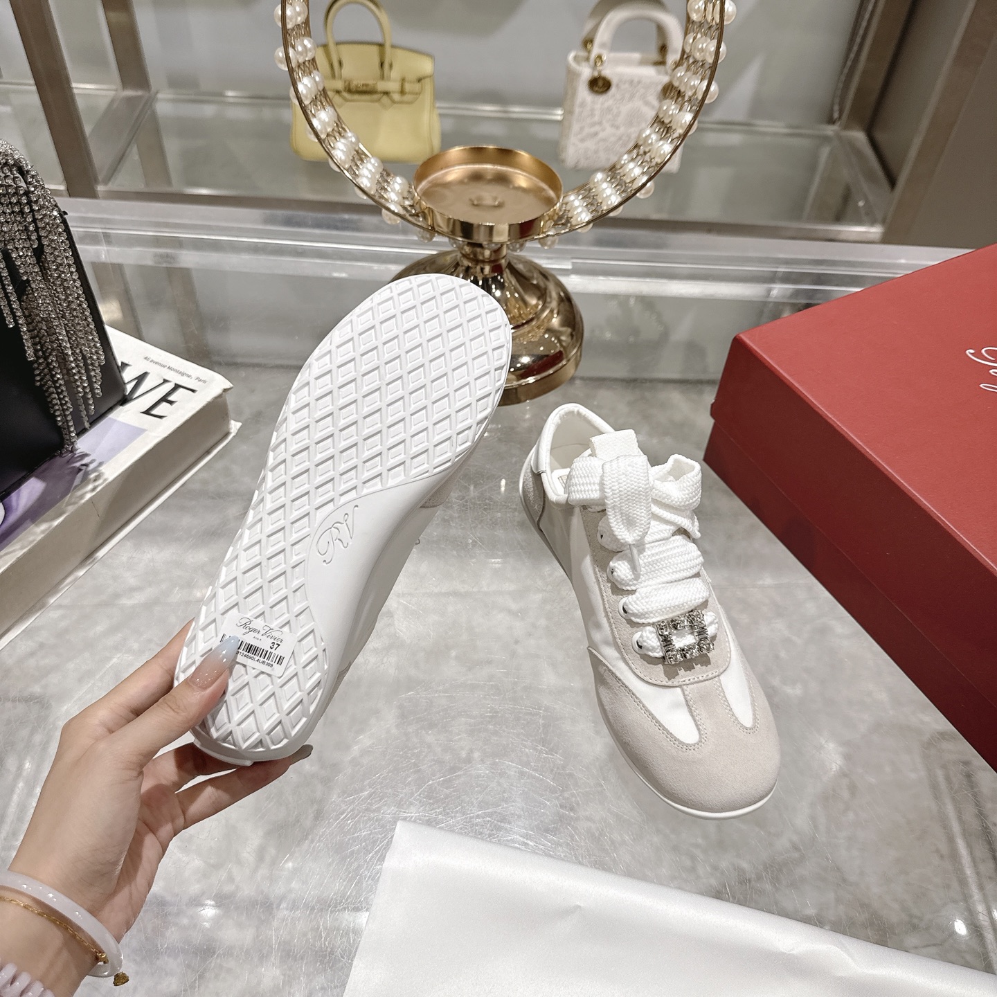 这款鞋子是AAAAA 1:1 质量 (非常棒). 使用了和原版一模一样的材料. 商标部分也保持了和罗杰维维耶/Roger Vivier一样. 图片拍摄是实物鞋子拍摄, 您所收到的实物保证和我们图片一模一样.