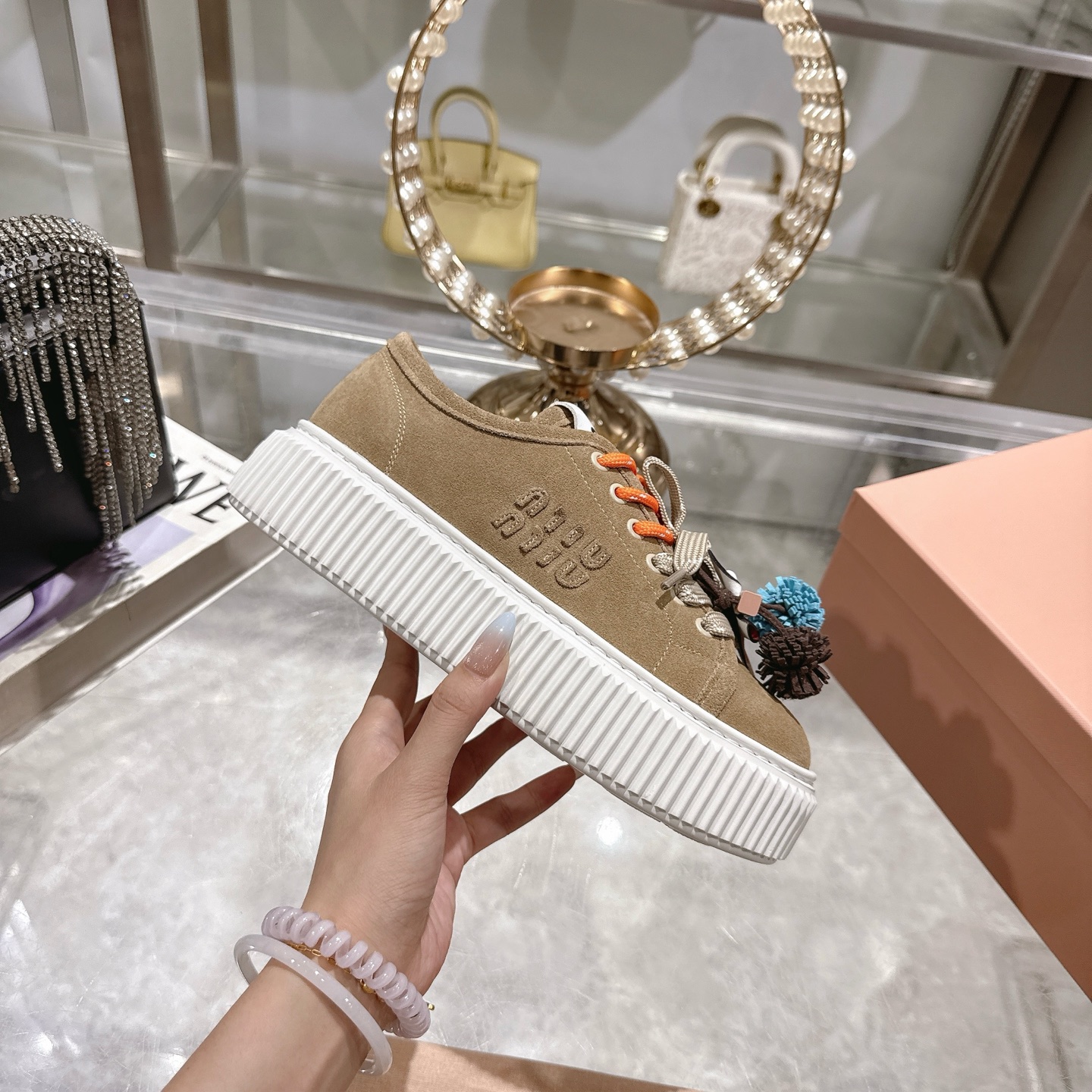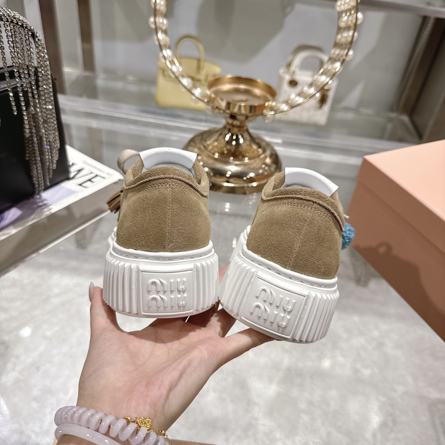 这款鞋子是AAAAA 1:1 质量 (非常棒). 使用了和原版一模一样的材料. 商标部分也保持了和缪缪/Miu Miu一样. 图片拍摄是实物鞋子拍摄, 您所收到的实物保证和我们图片一模一样.