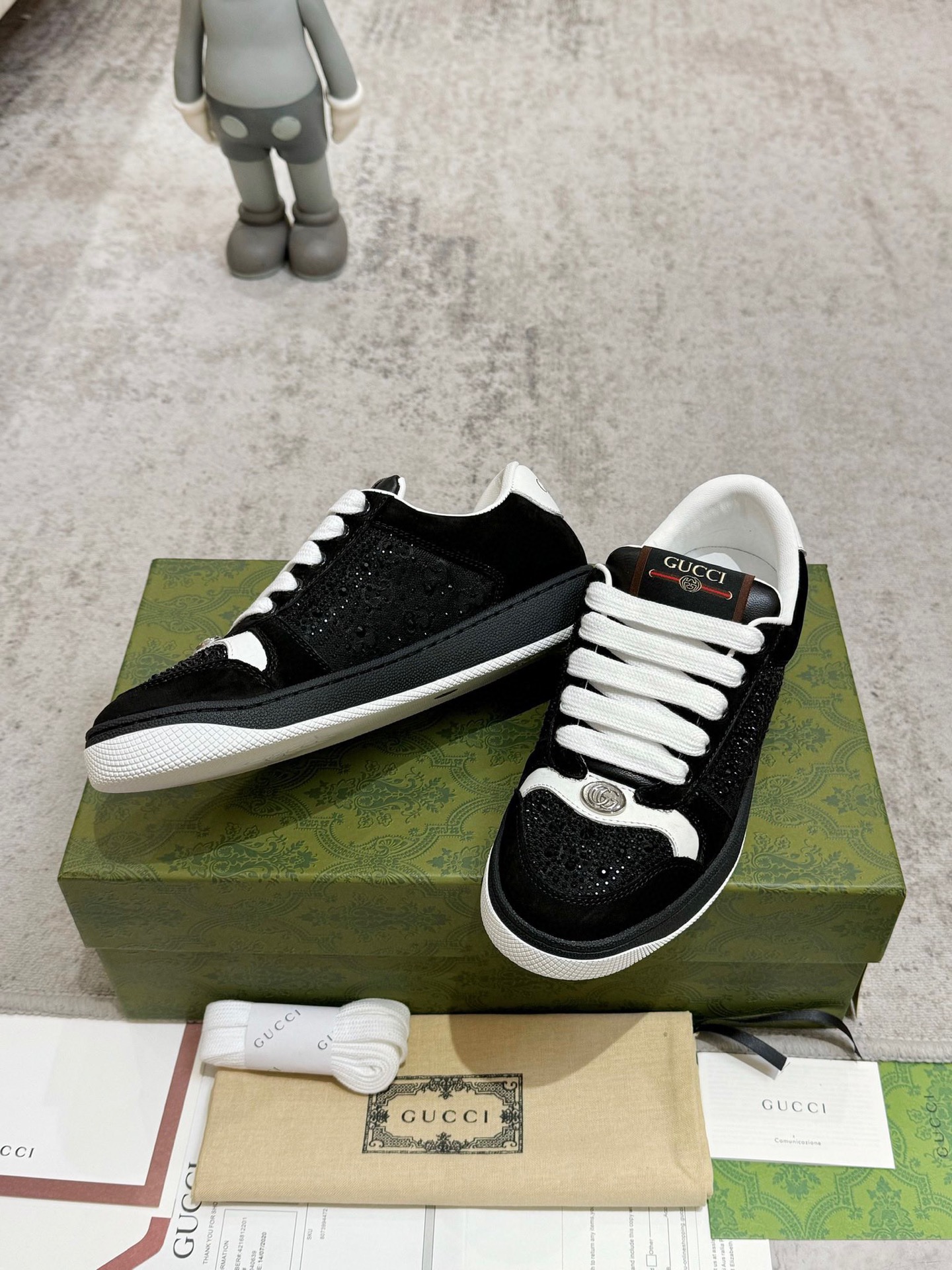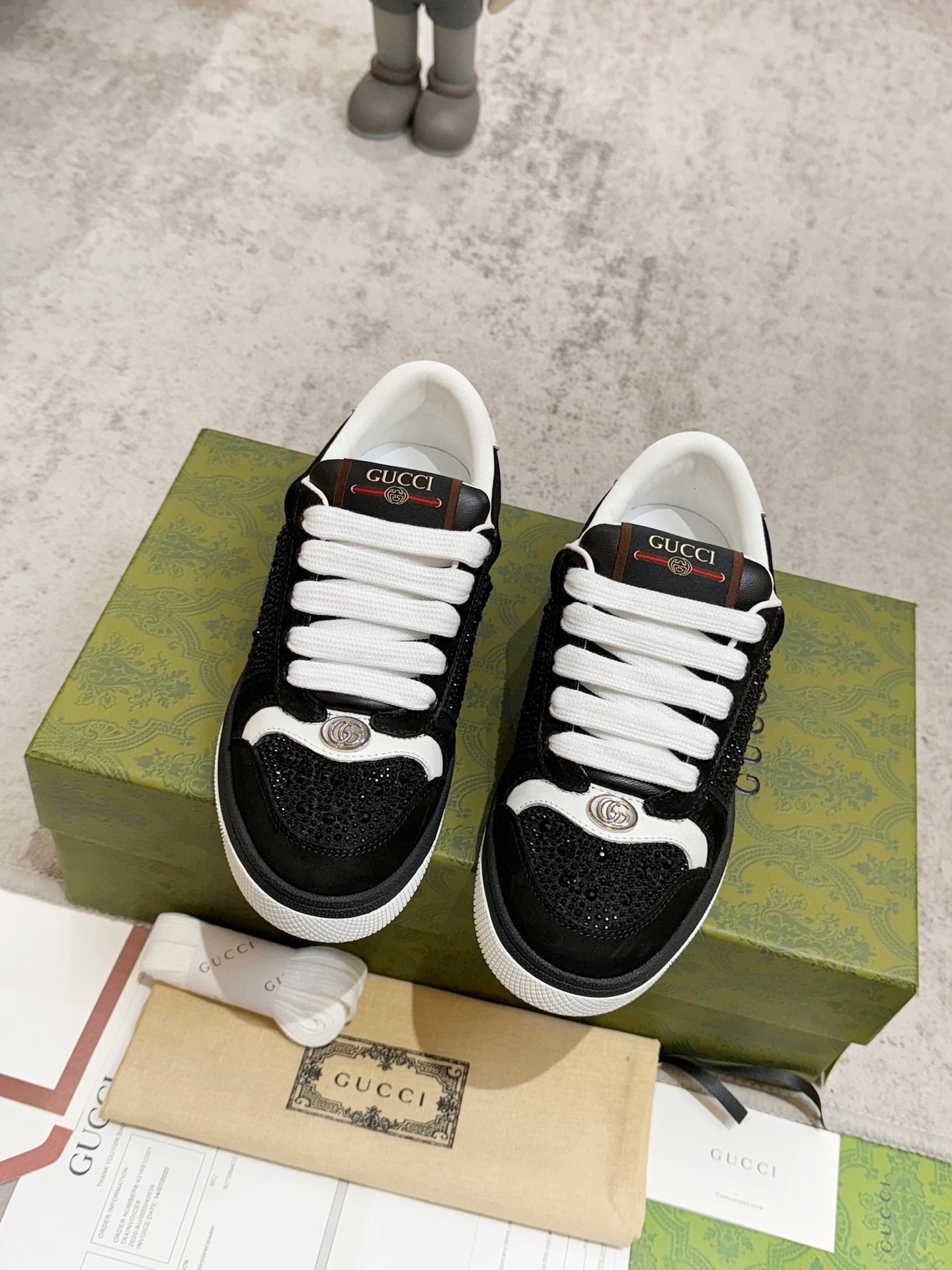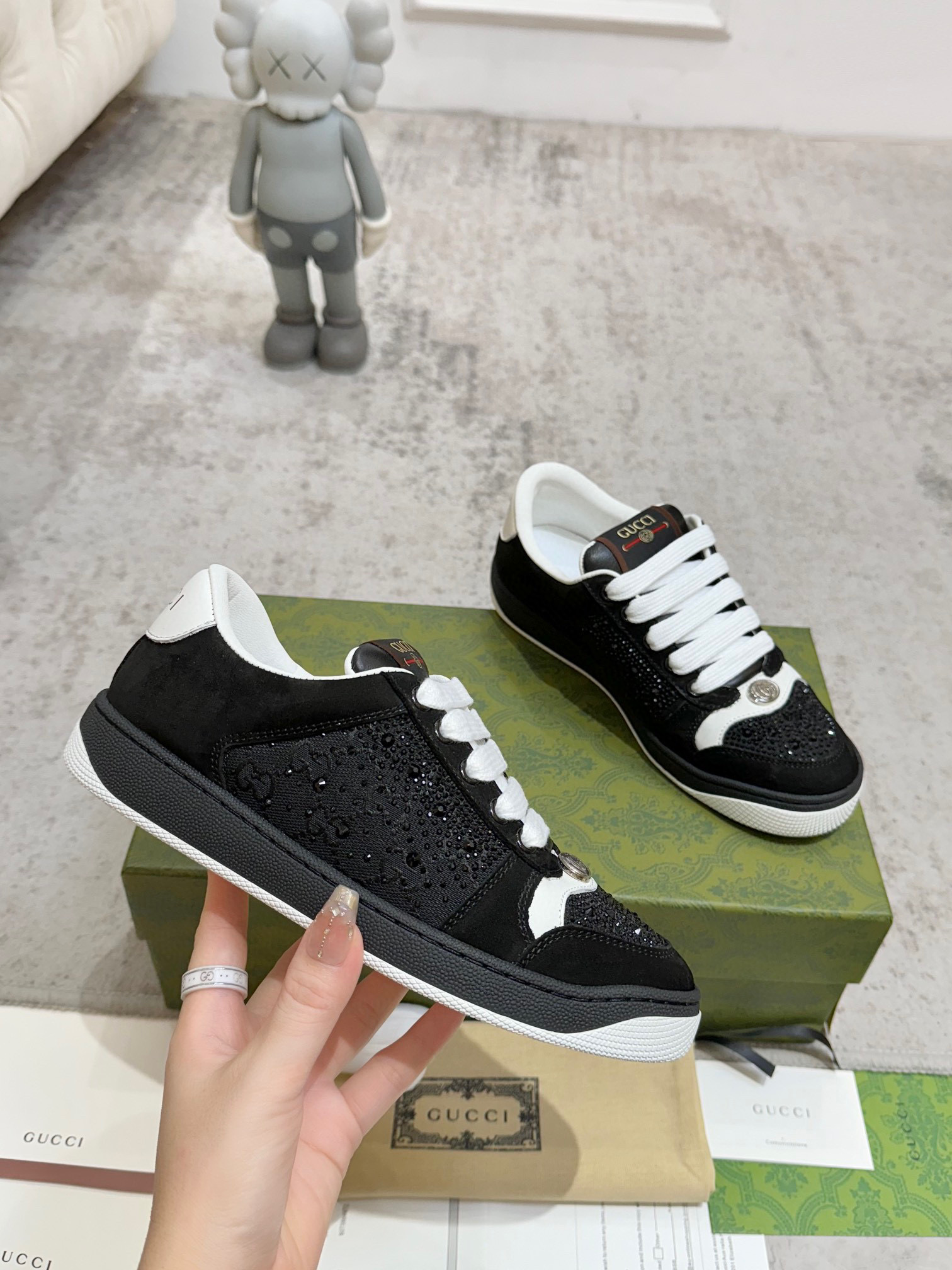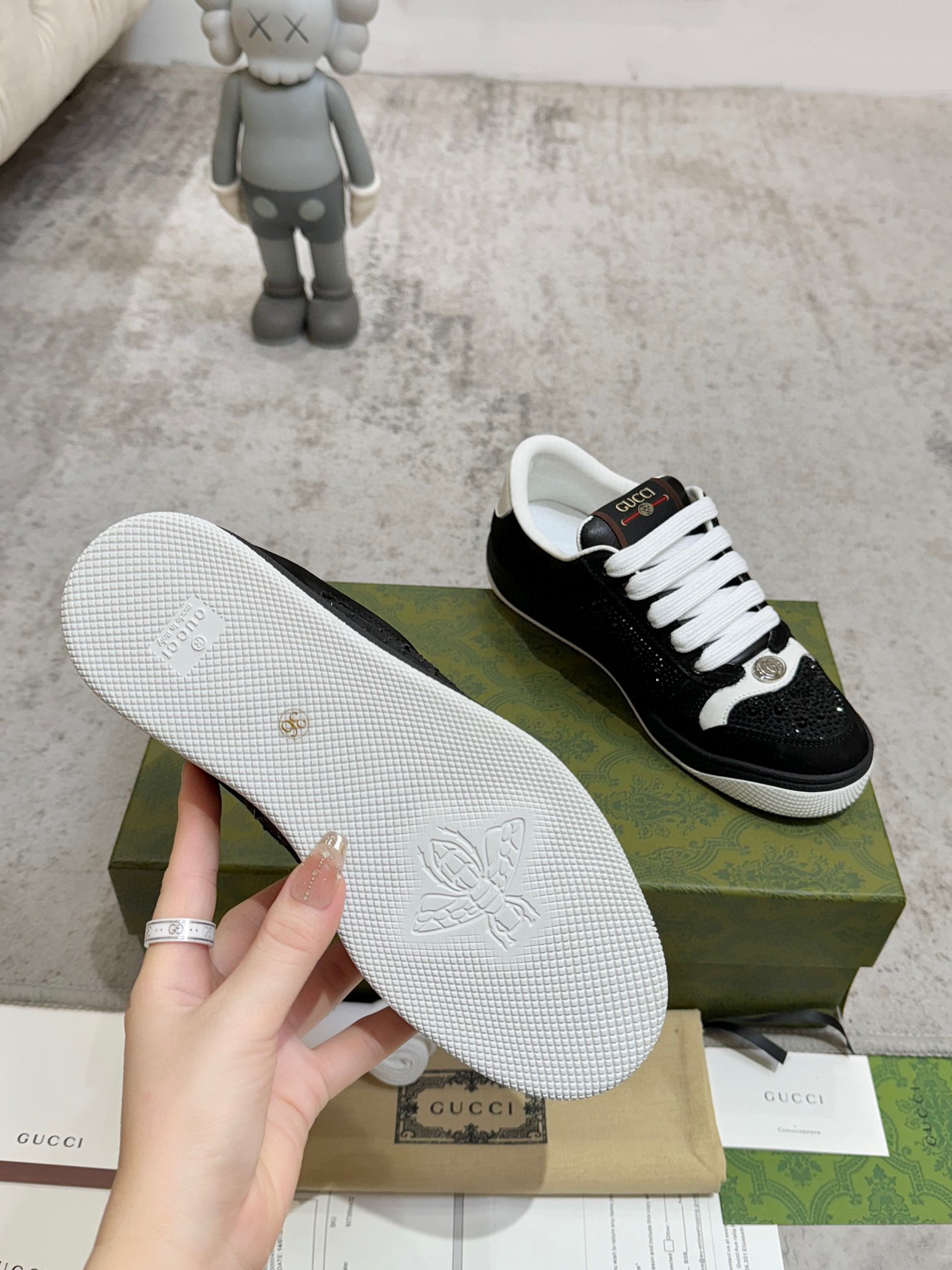 这款鞋子是AAAAA 1:1 质量 (非常棒). 使用了和原版一模一样的材料. 商标部分也保持了和古奇/Gucci一样. 图片拍摄是实物鞋子拍摄, 您所收到的实物保证和我们图片一模一样.