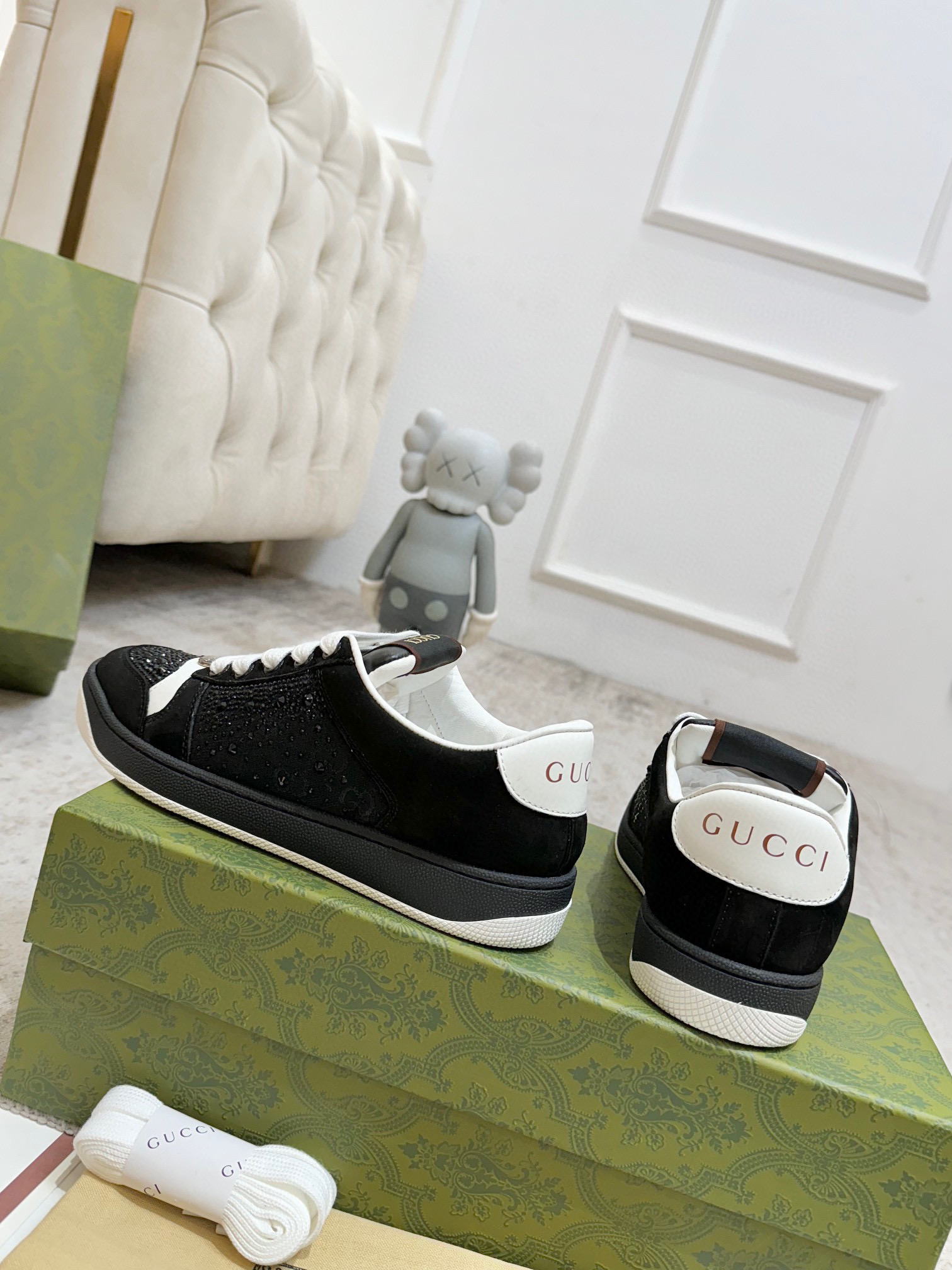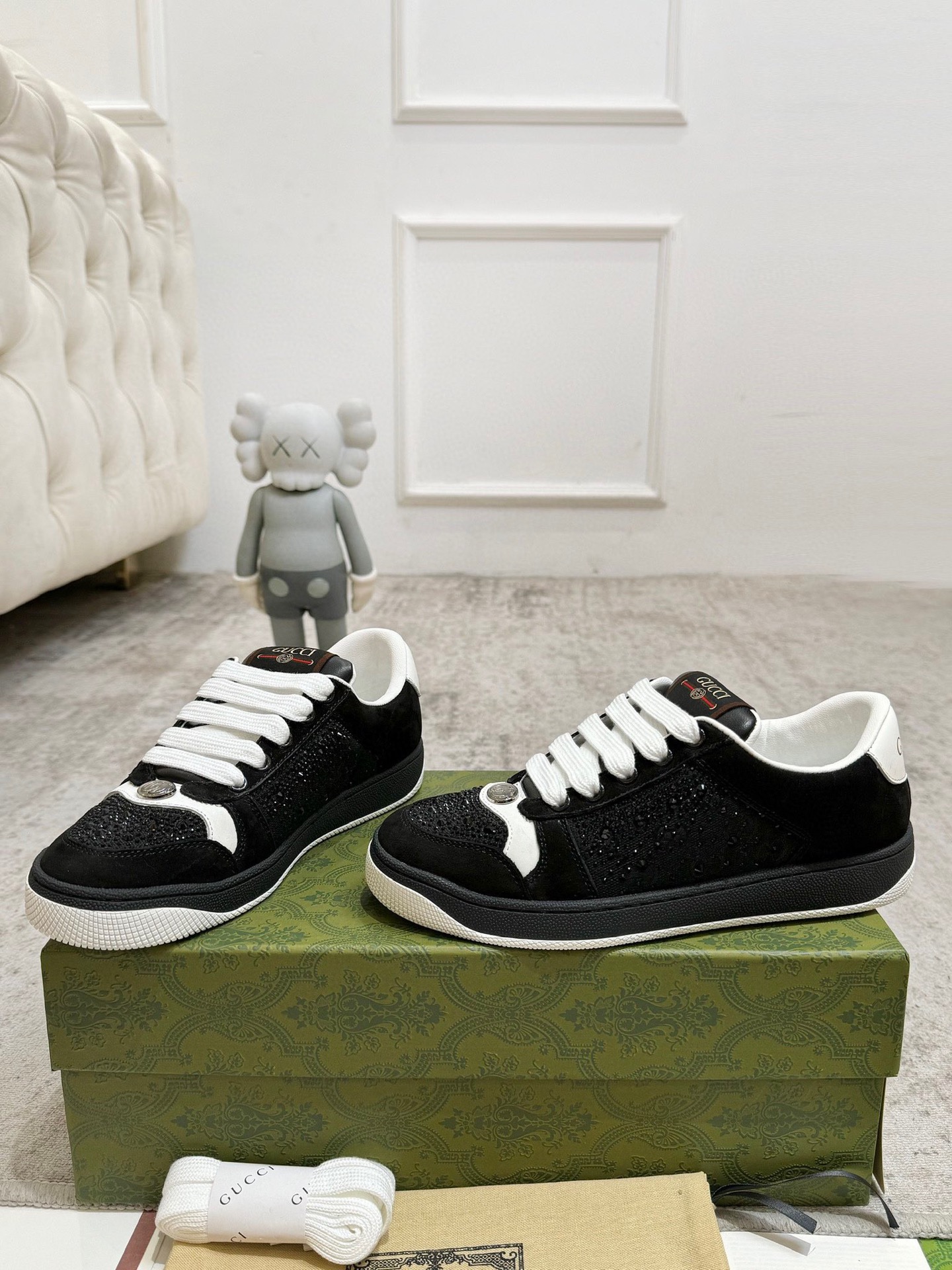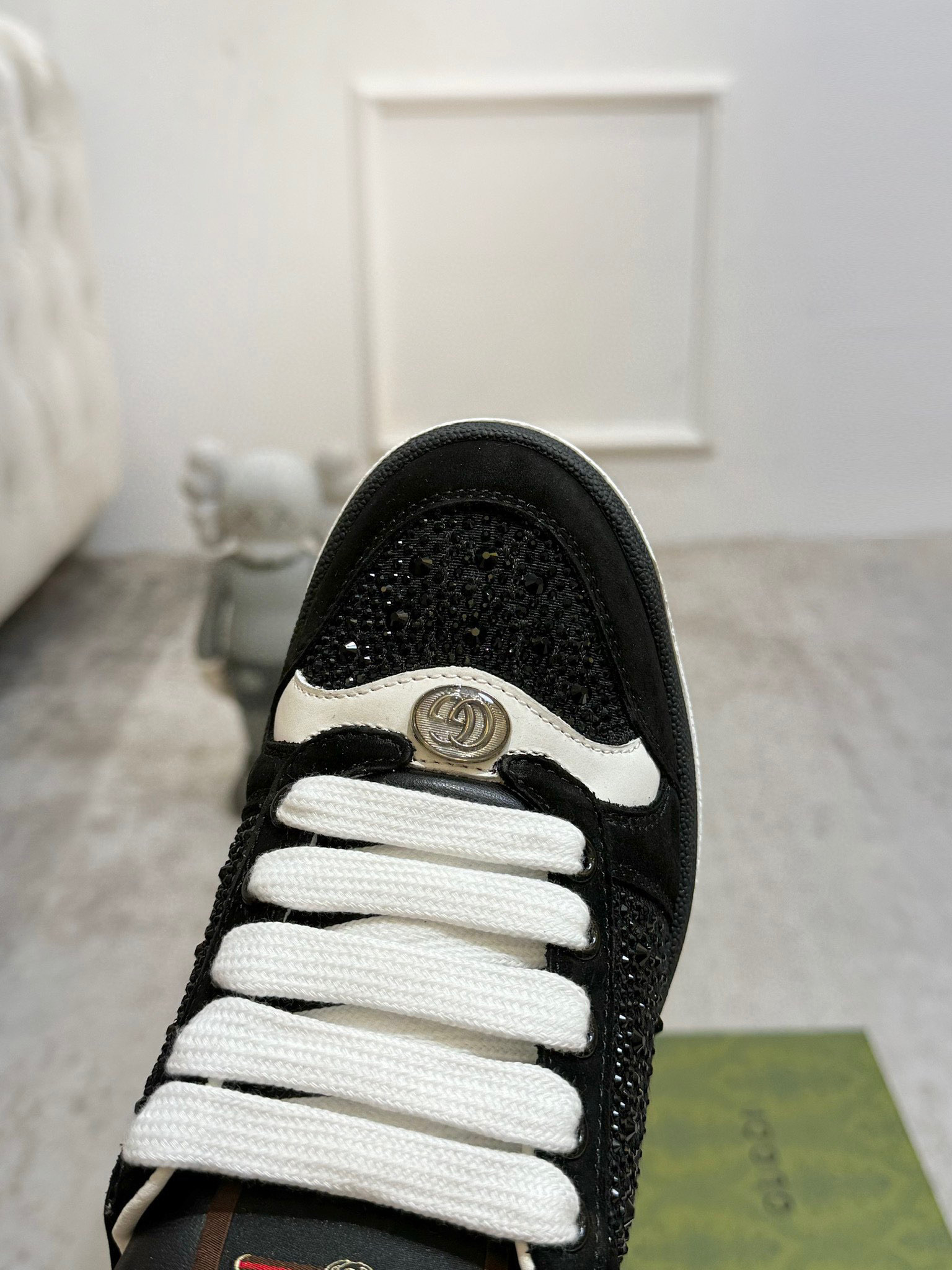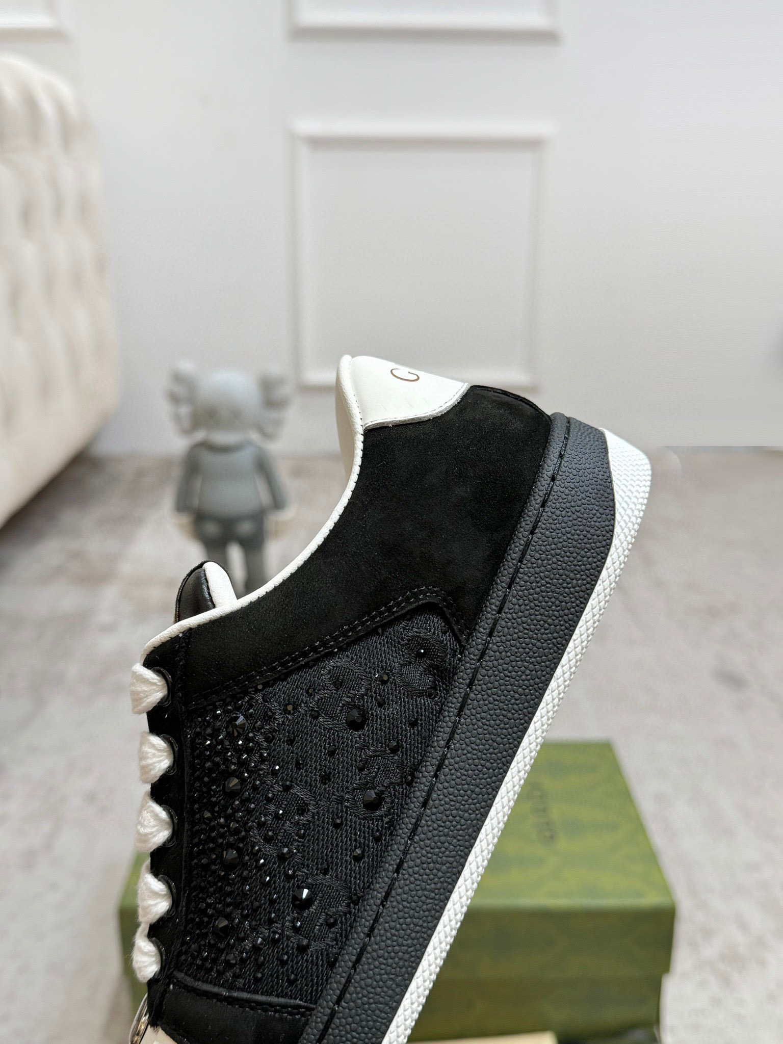 这款鞋子是AAAAA 1:1 质量 (非常棒). 使用了和原版一模一样的材料. 商标部分也保持了和古奇/Gucci一样. 图片拍摄是实物鞋子拍摄, 您所收到的实物保证和我们图片一模一样.