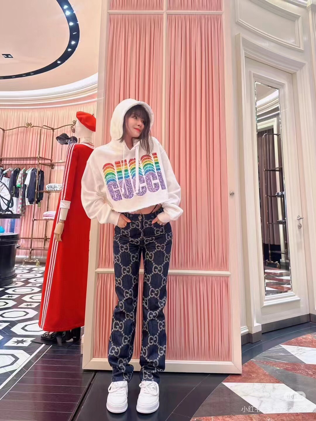 这款衣服是AAAAA 1:1 质量 (非常棒). 使用了和原版一模一样的材料. 商标部分也保持了和古奇/Gucci一样. 图片拍摄是实物衣服拍摄, 您所收到的实物保证和我们图片一模一样.