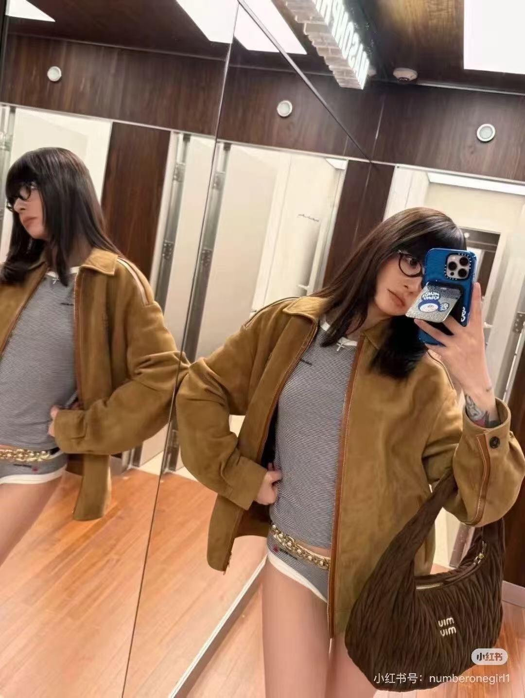 这款衣服是AAAAA 1:1 质量 (非常棒). 使用了和原版一模一样的材料. 商标部分也保持了和缪缪/Miu Miu一样. 图片拍摄是实物衣服拍摄, 您所收到的实物保证和我们图片一模一样.