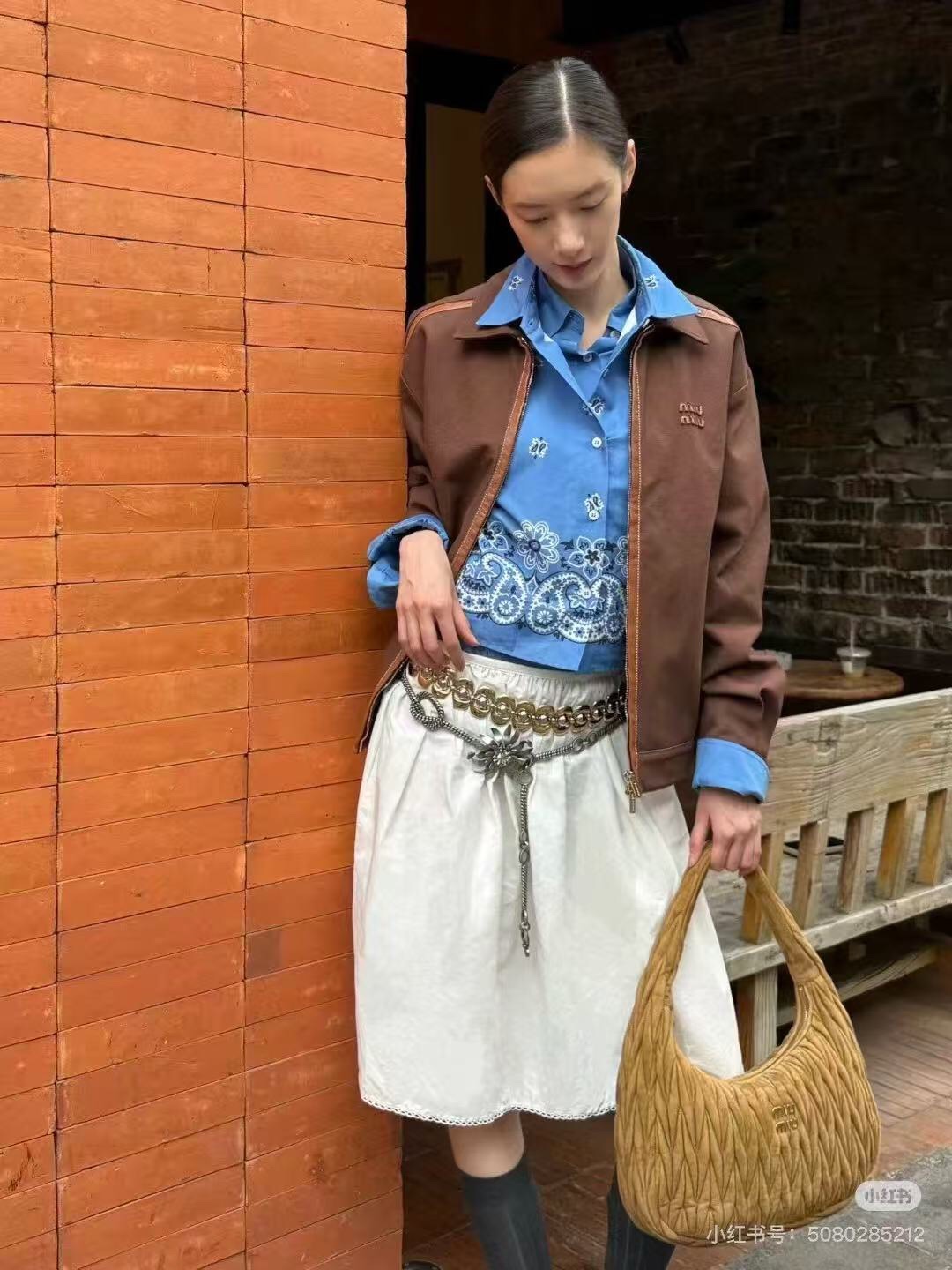 这款衣服是AAAAA 1:1 质量 (非常棒). 使用了和原版一模一样的材料. 商标部分也保持了和缪缪/Miu Miu一样. 图片拍摄是实物衣服拍摄, 您所收到的实物保证和我们图片一模一样.