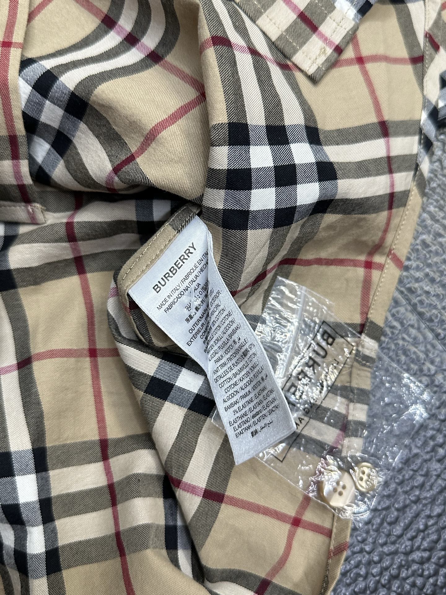 这款衣服是AAAAA 1:1 质量 (非常棒). 使用了和原版一模一样的材料. 商标部分也保持了和巴宝莉/Burberry一样. 图片拍摄是实物衣服拍摄, 您所收到的实物保证和我们图片一模一样.