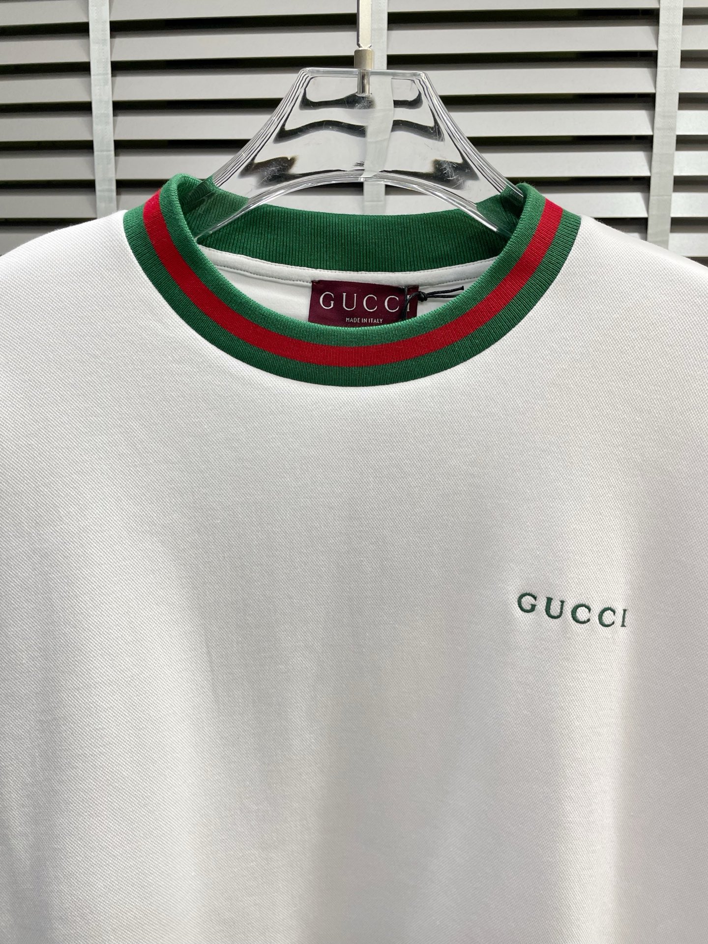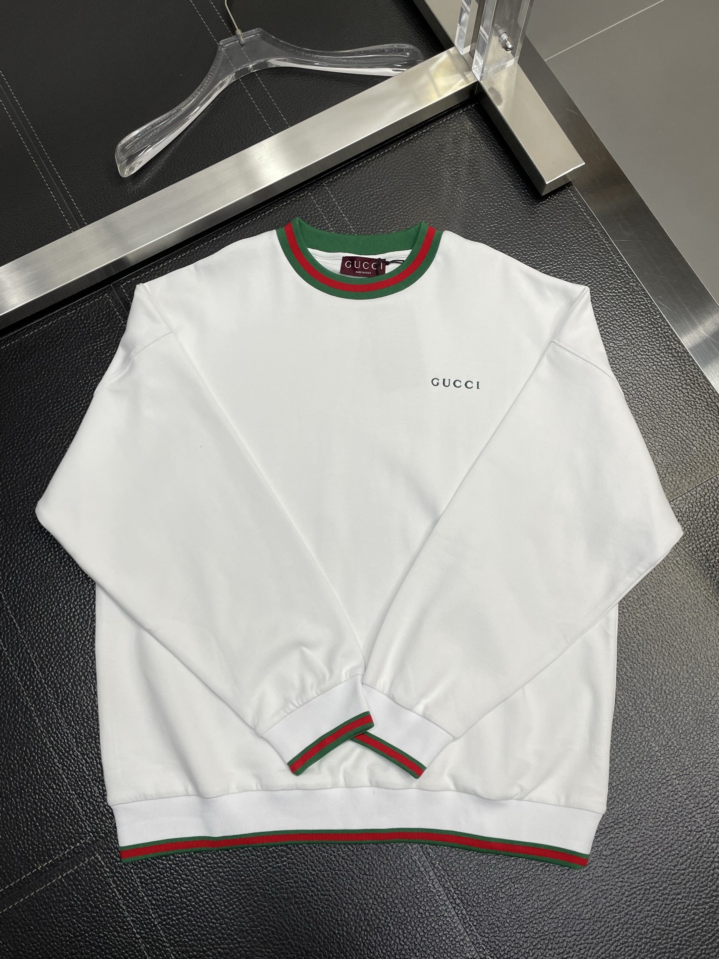 这款衣服是AAAAA 1:1 质量 (非常棒). 使用了和原版一模一样的材料. 商标部分也保持了和古奇/Gucci一样. 图片拍摄是实物衣服拍摄, 您所收到的实物保证和我们图片一模一样.