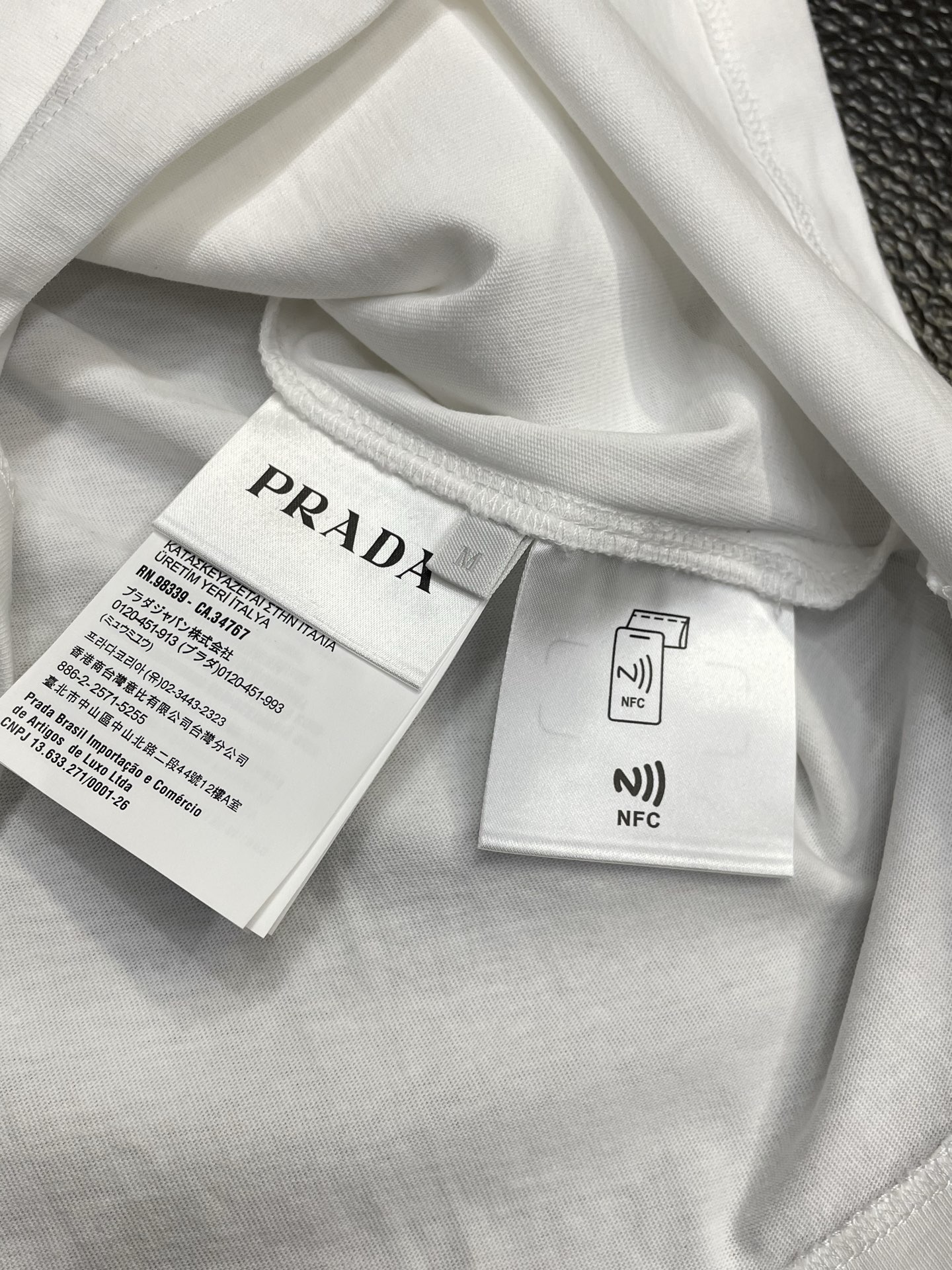 这款衣服是AAAAA 1:1 质量 (非常棒). 使用了和原版一模一样的材料. 商标部分也保持了和普拉达/Prada一样. 图片拍摄是实物衣服拍摄, 您所收到的实物保证和我们图片一模一样.