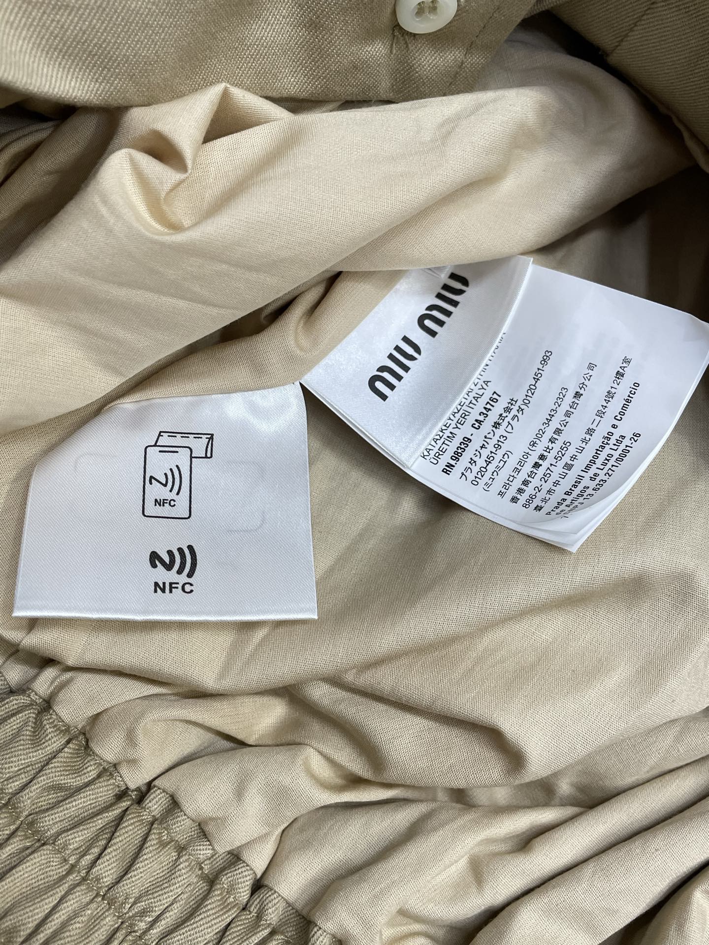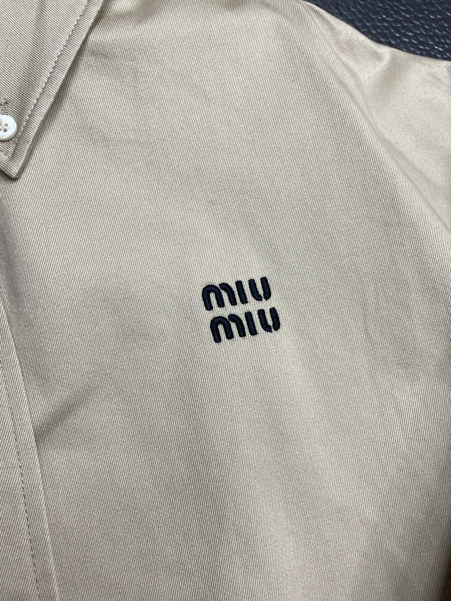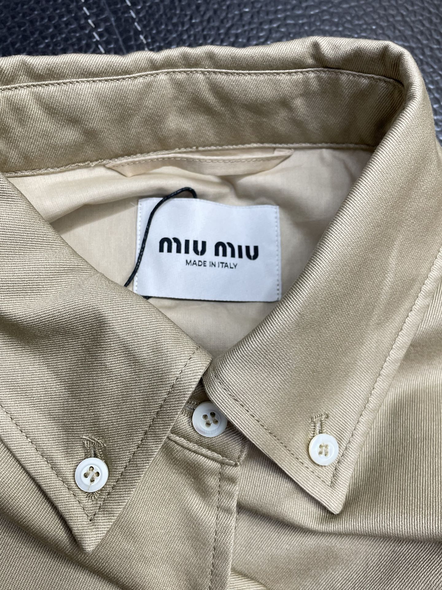 这款衣服是AAAAA 1:1 质量 (非常棒). 使用了和原版一模一样的材料. 商标部分也保持了和缪缪/Miu Miu一样. 图片拍摄是实物衣服拍摄, 您所收到的实物保证和我们图片一模一样.