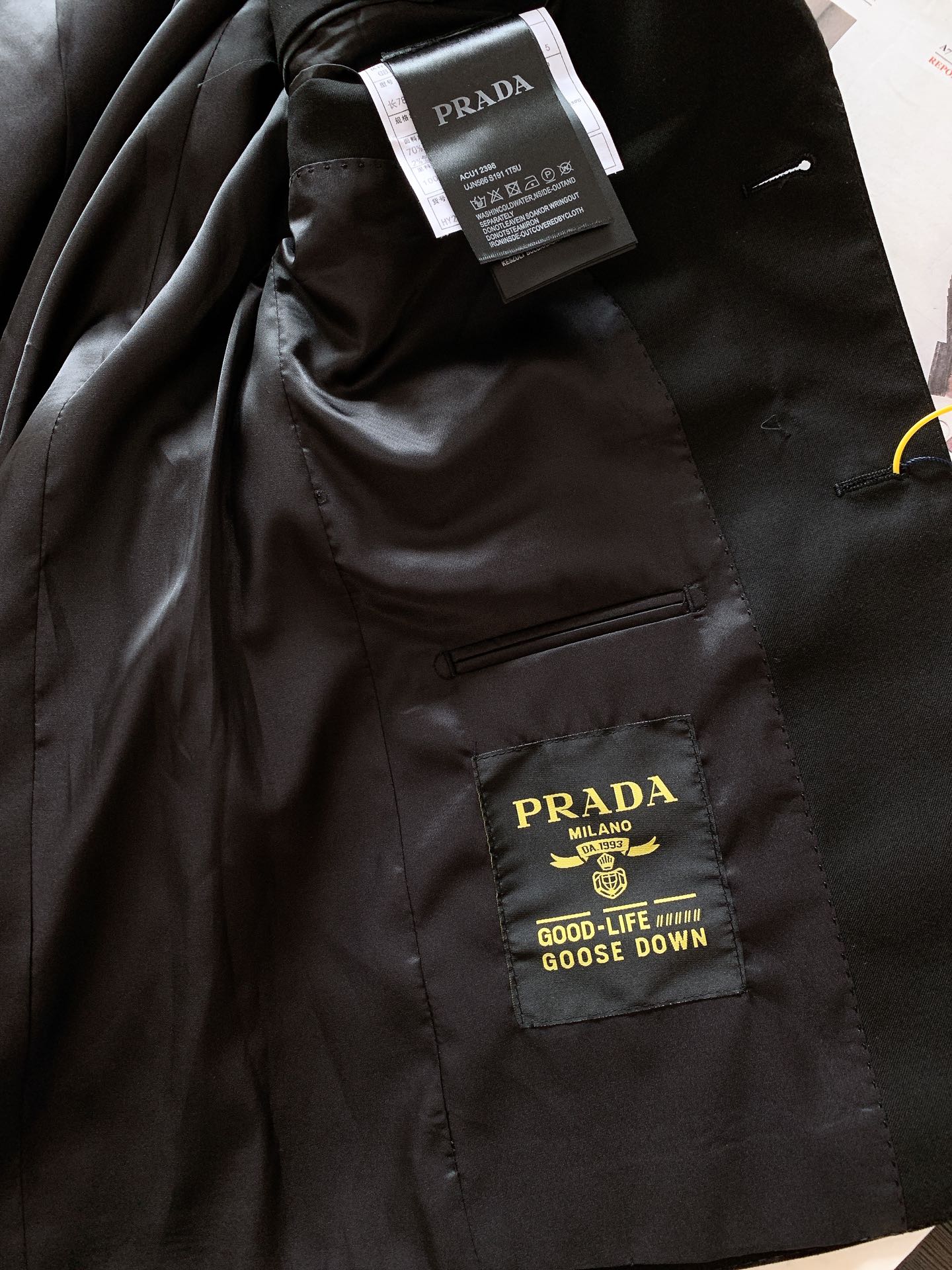 这款衣服是AAAAA 1:1 质量 (非常棒). 使用了和原版一模一样的材料. 商标部分也保持了和普拉达/Prada一样. 图片拍摄是实物衣服拍摄, 您所收到的实物保证和我们图片一模一样.