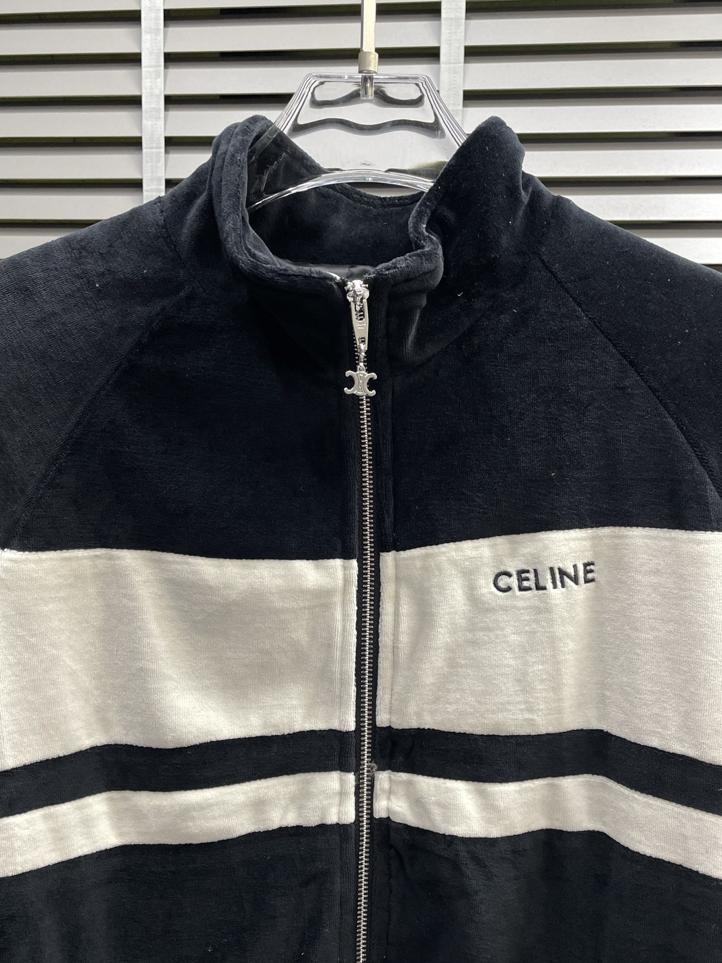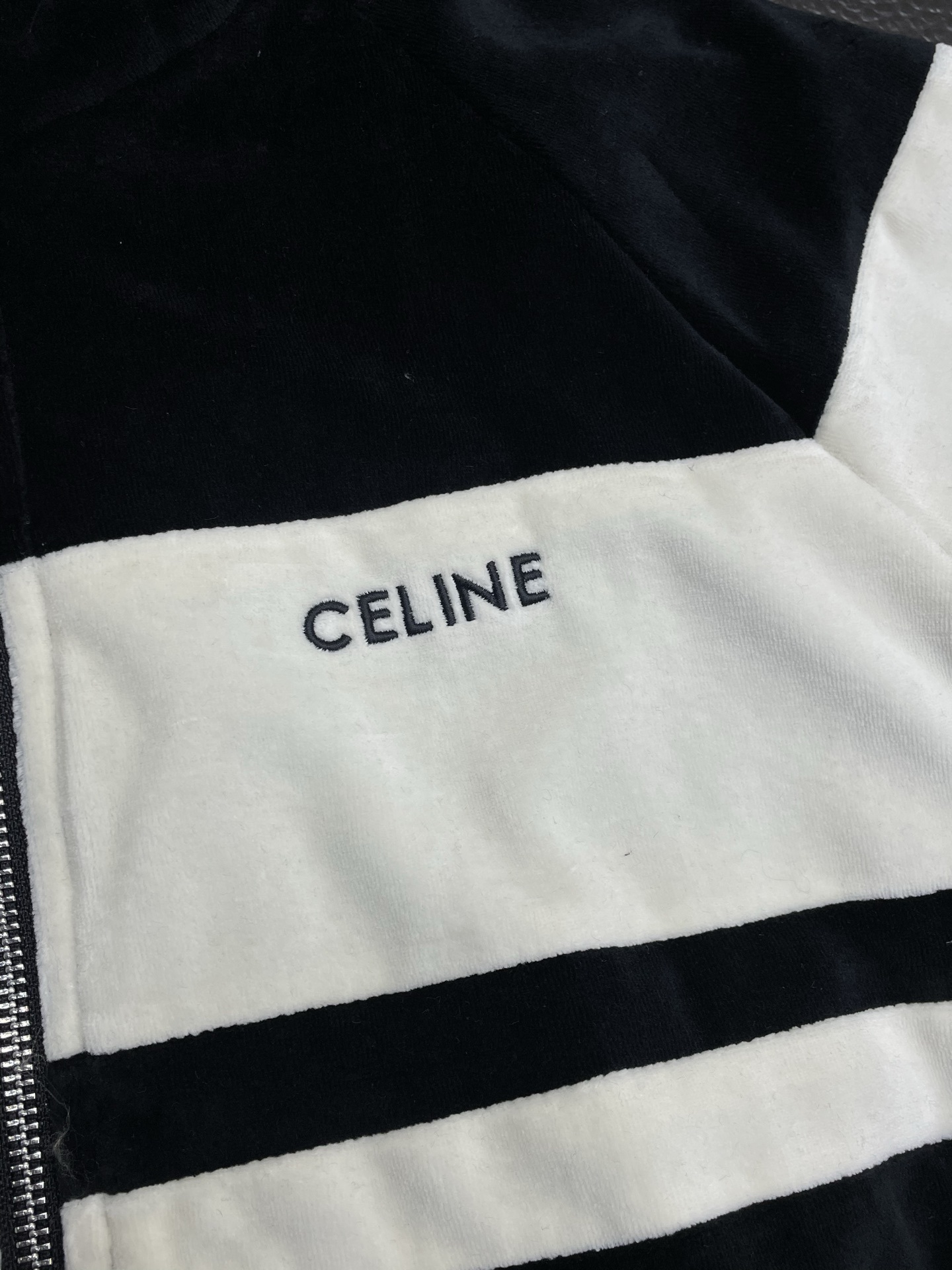 这款衣服是AAAAA 1:1 质量 (非常棒). 使用了和原版一模一样的材料. 商标部分也保持了和思琳/Celine一样. 图片拍摄是实物衣服拍摄, 您所收到的实物保证和我们图片一模一样.